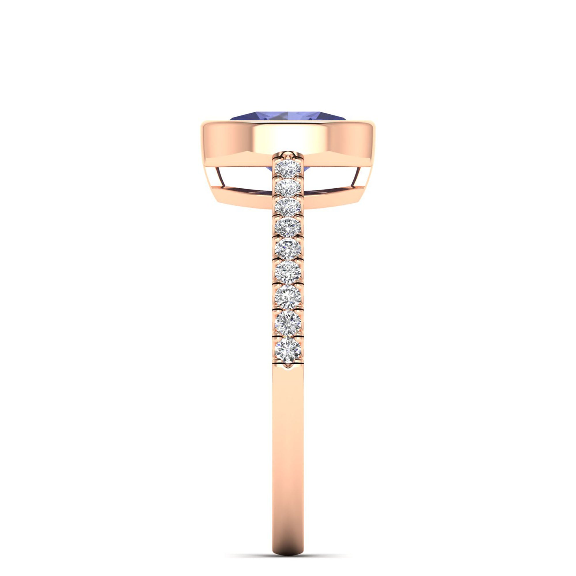 This Bezel-Set Art Deco Tanzanite and Diamond Ring is a stunning addition to any jewelry collection. The bold and elegant design showcases a vibrant ruby surrounded by sparkling diamonds in a bezel-setting.