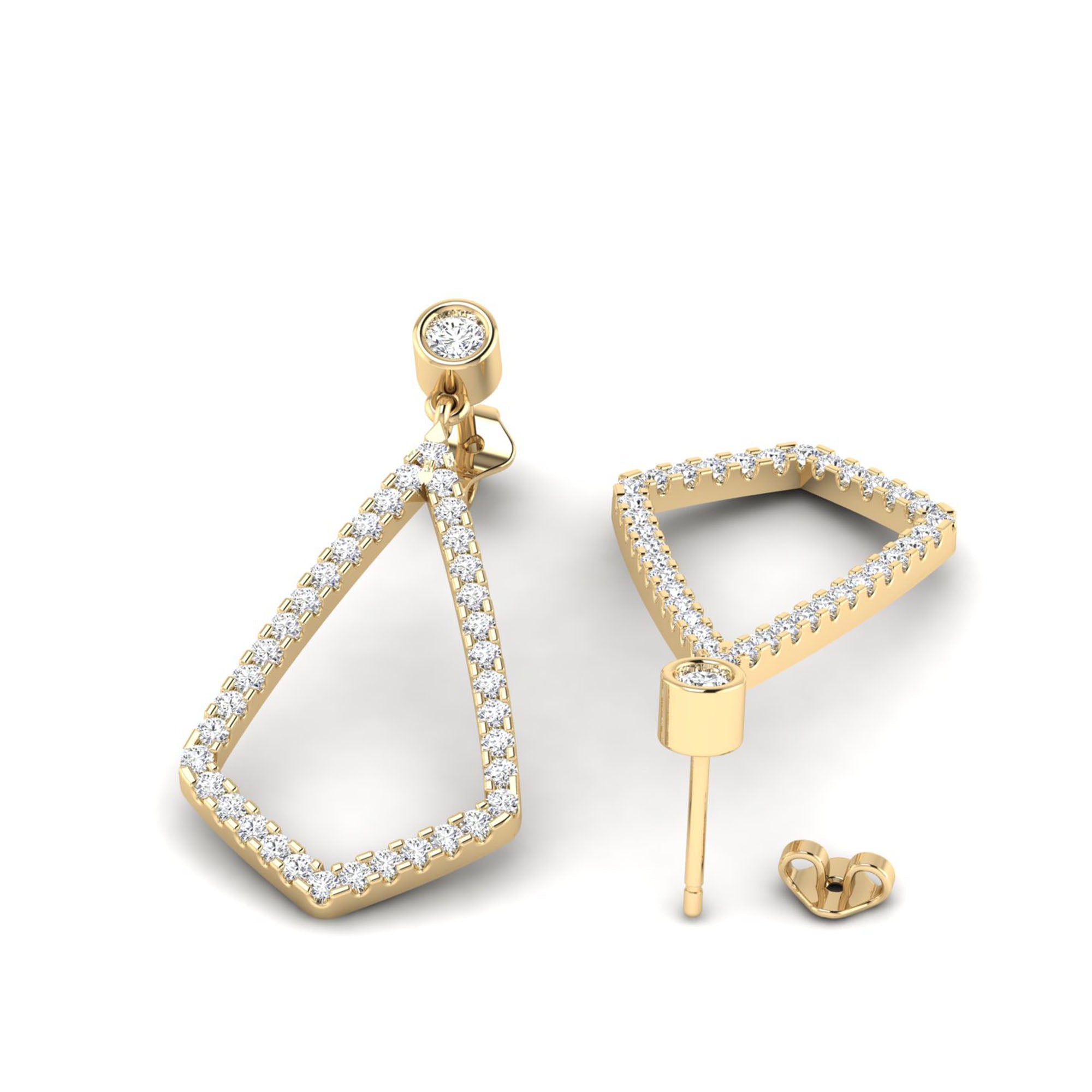Bezel-Set Kite Drop Diamond Earrings