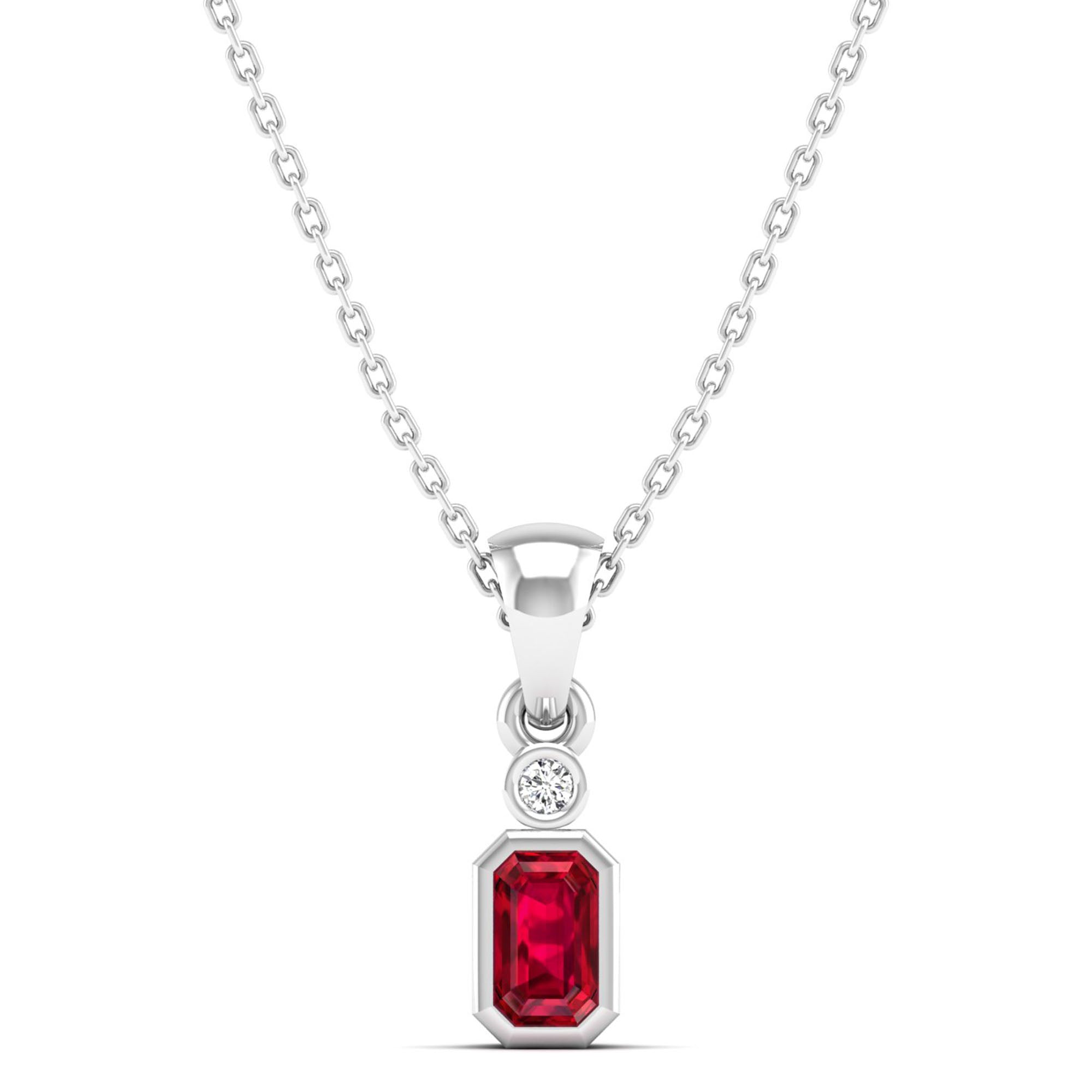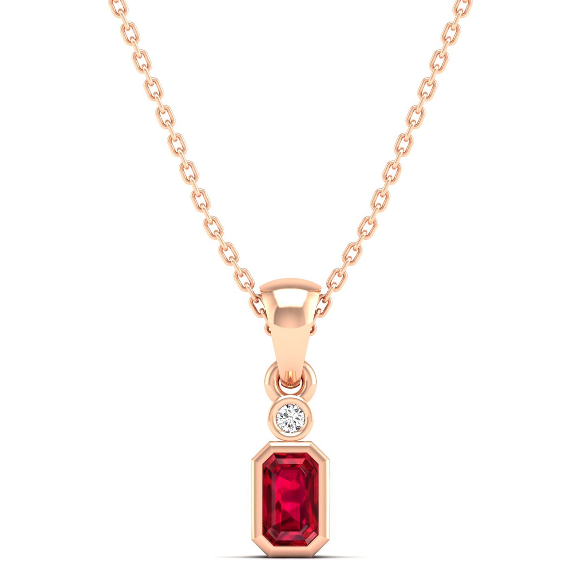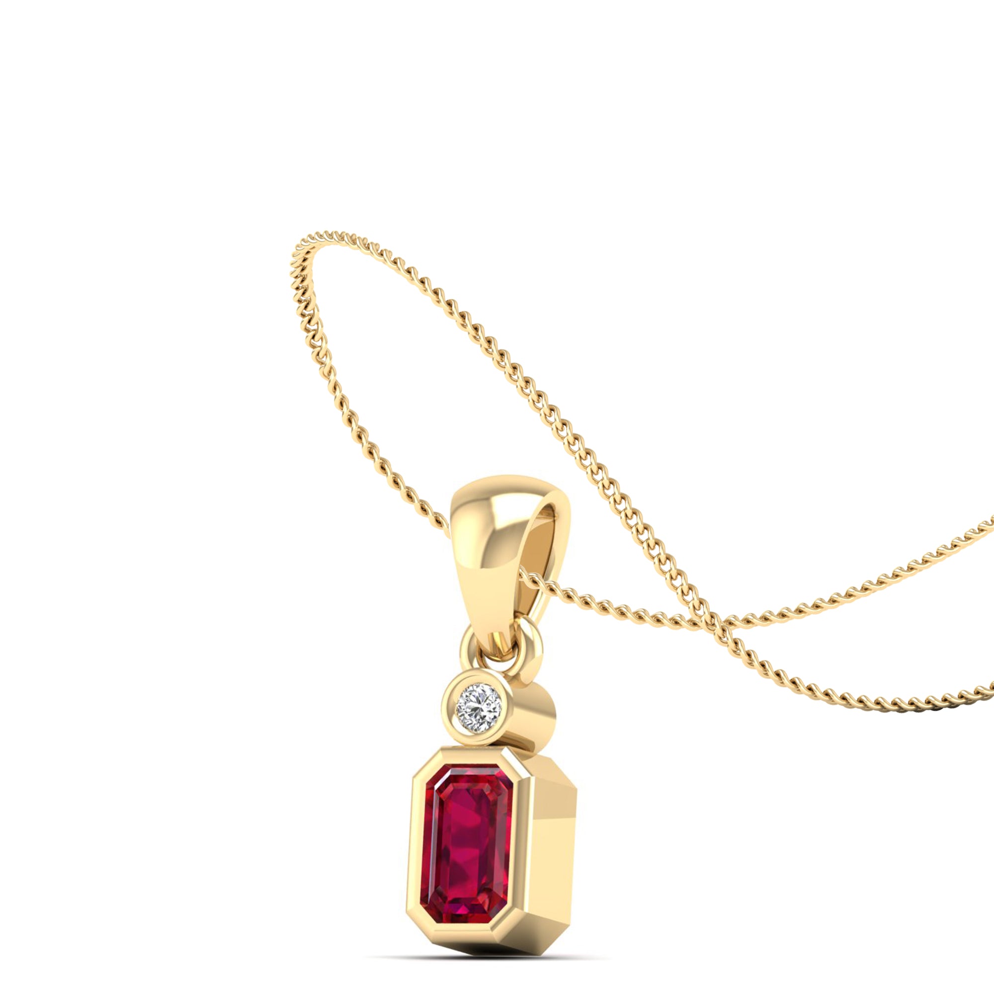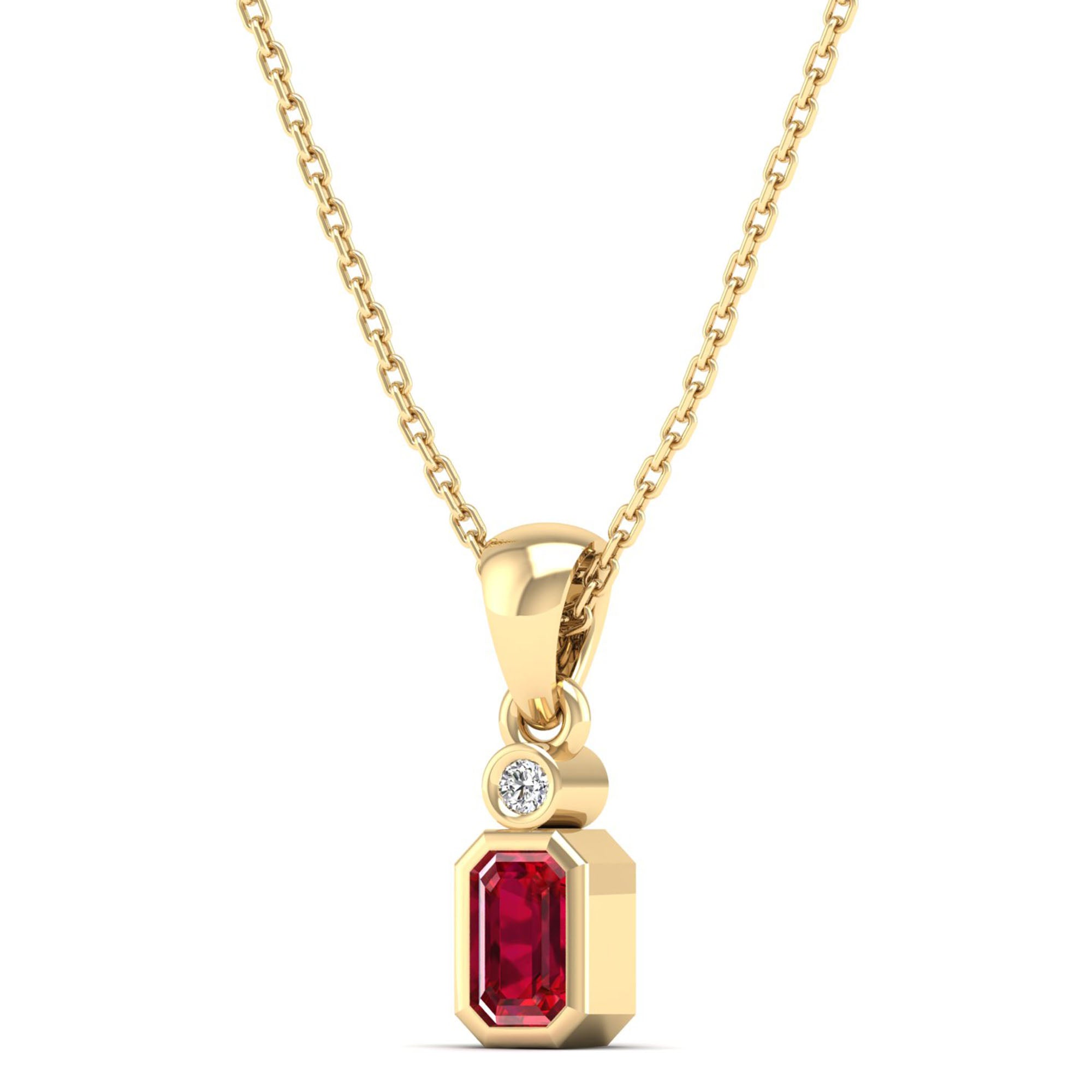 Expertly crafted with a delicate bezel-set design, this petite pendant features a stunning ruby and sparkling diamonds. Enhance your outfit with a touch of elegance and luxury.