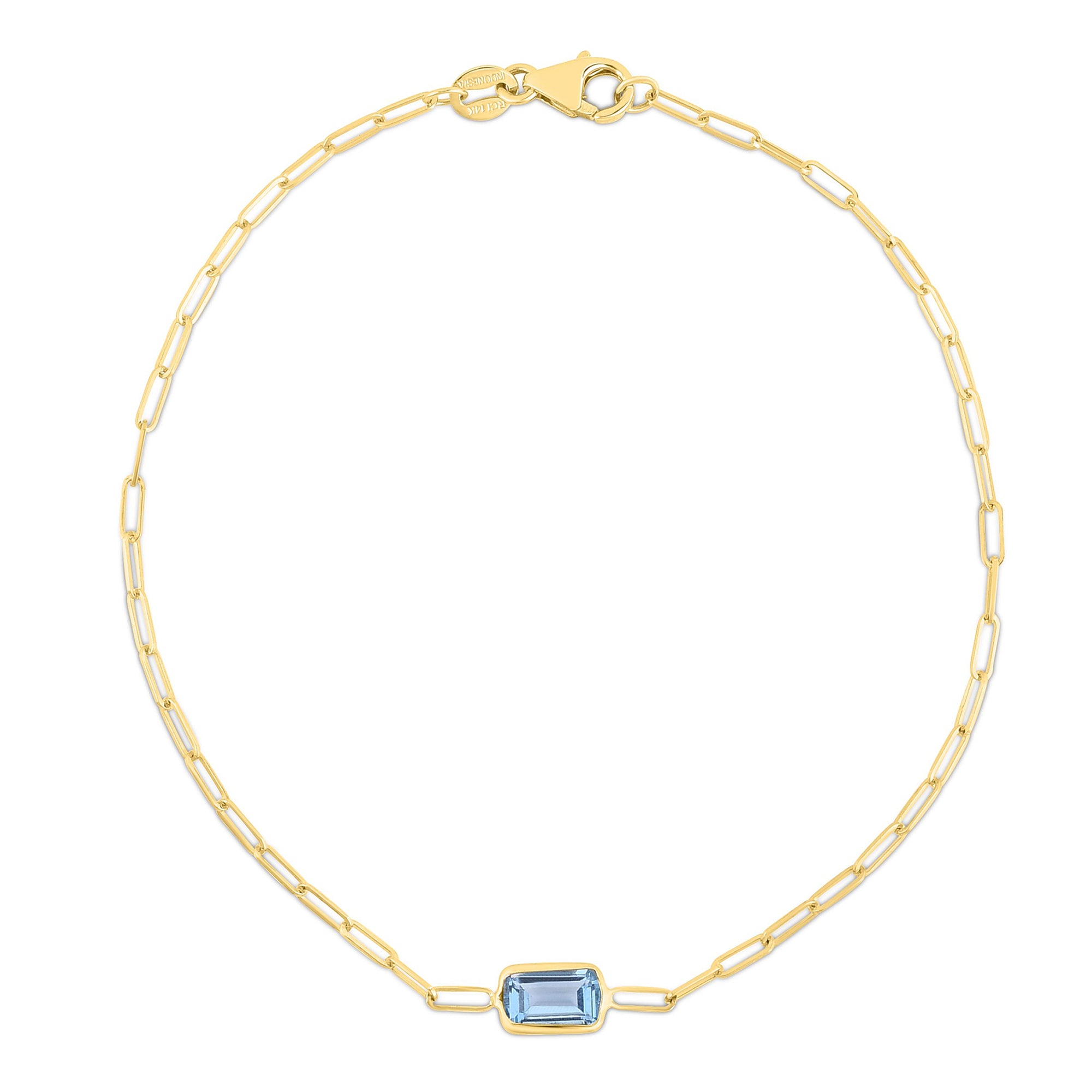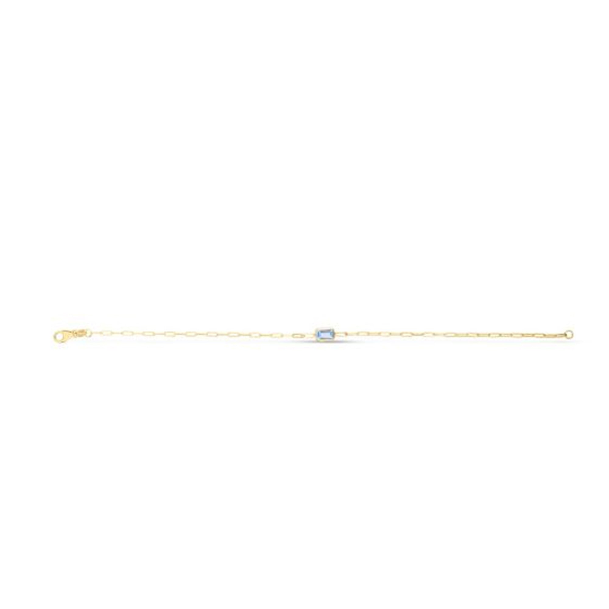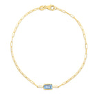 Gemstone Paperclip Bracelet with Lobster Clasp, featuring 6x4 baguette Blue Topaz center element.