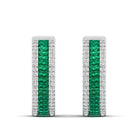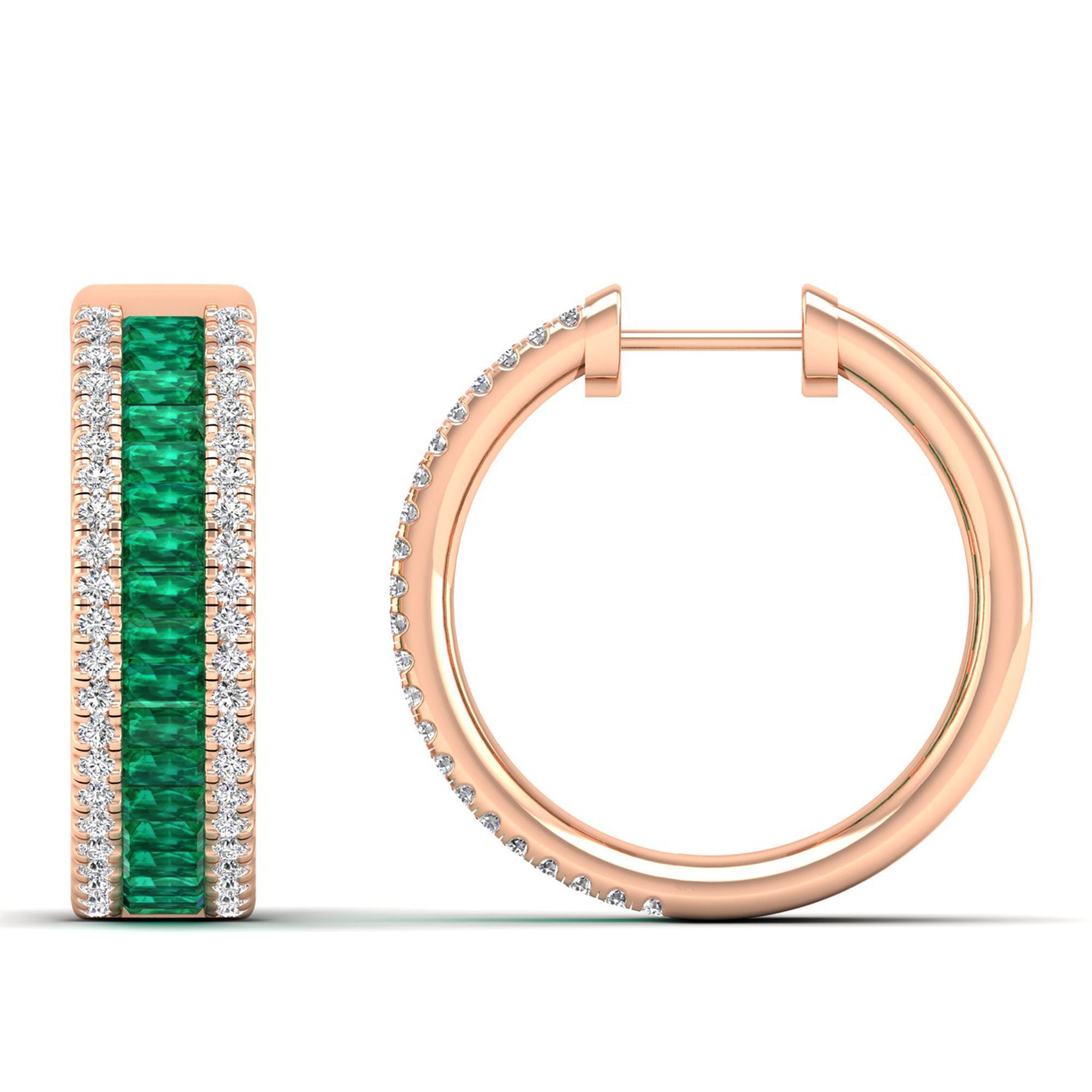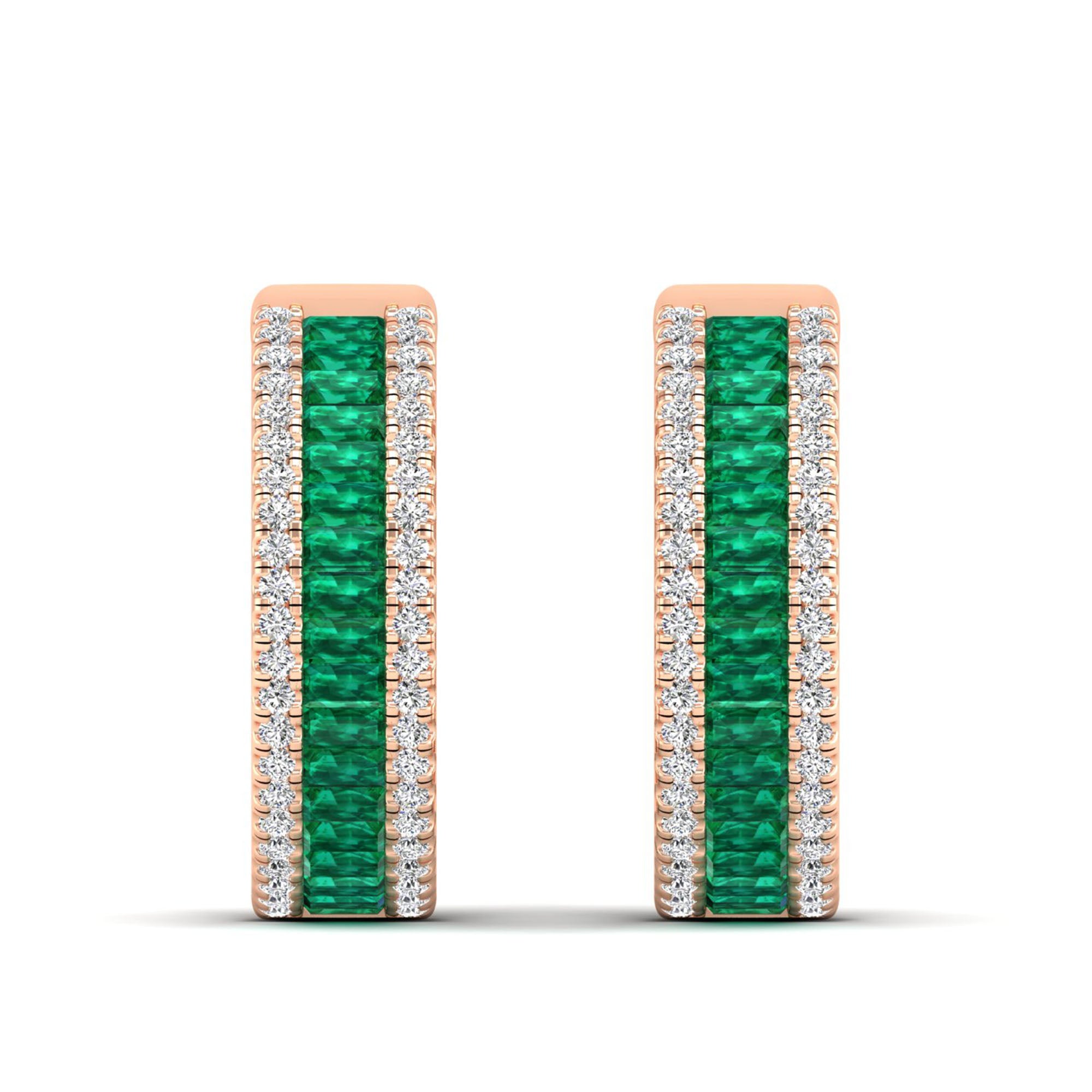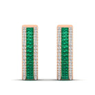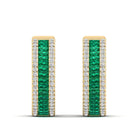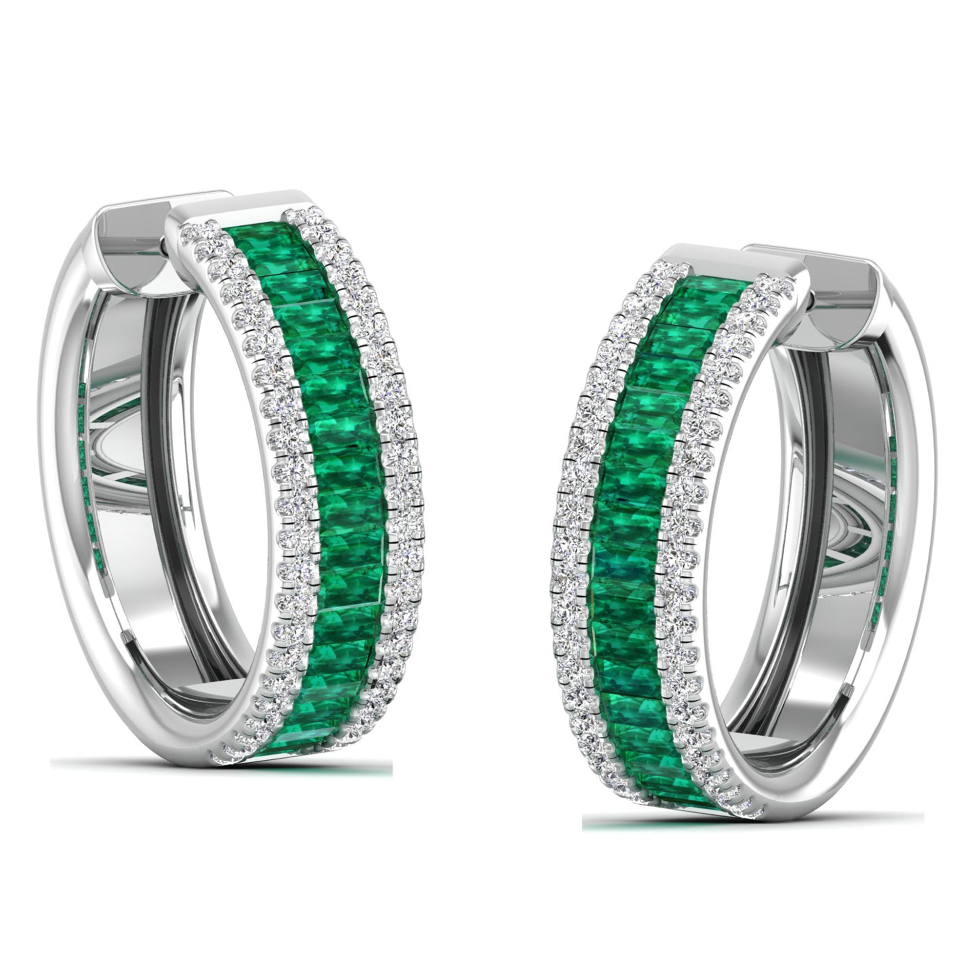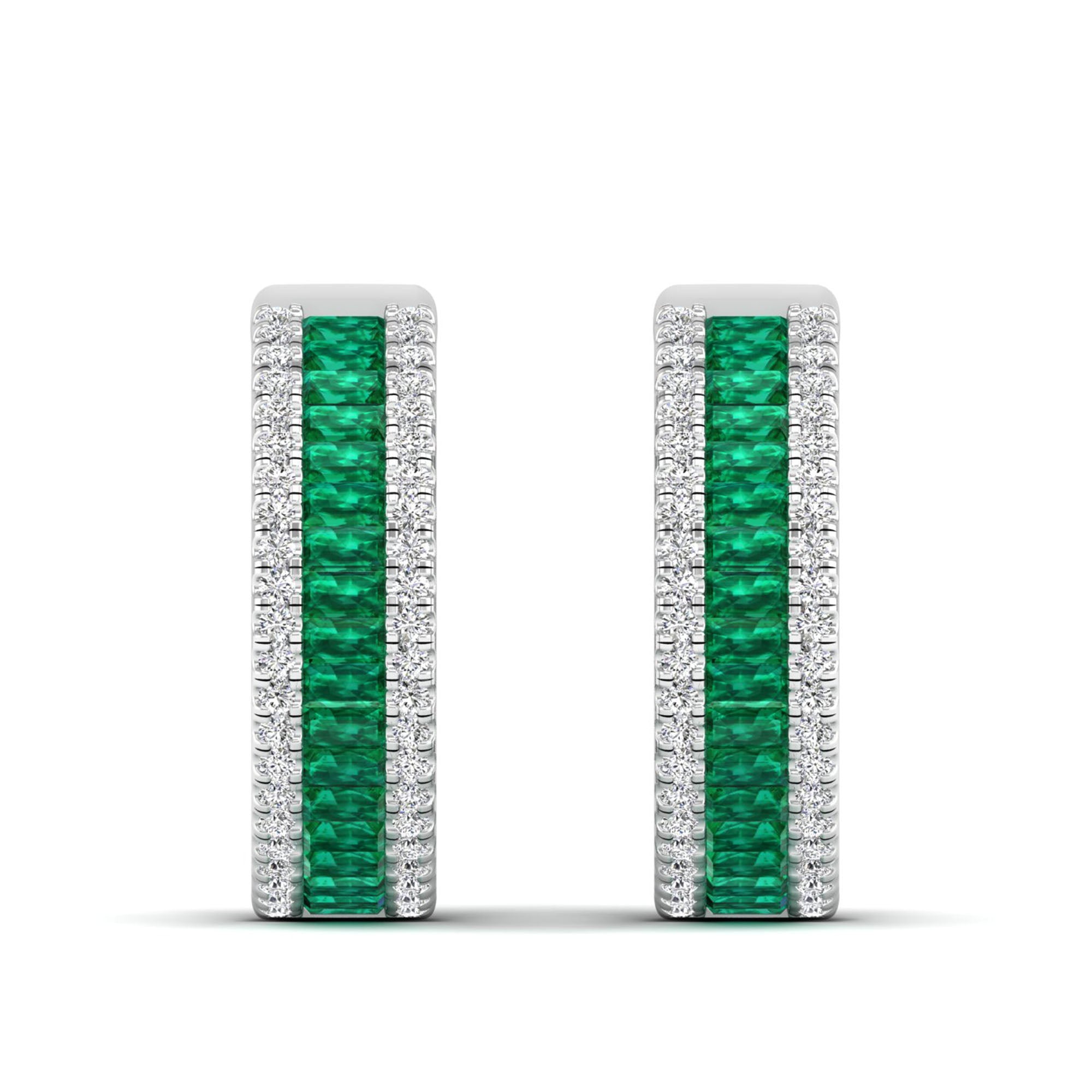 Channel Set Baguette Emerald and Diamond Hoop Earrings