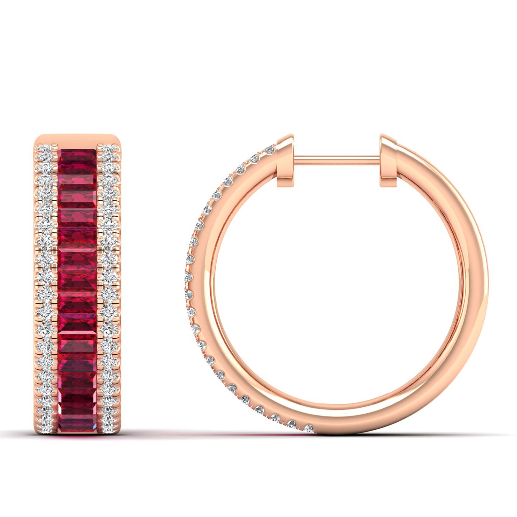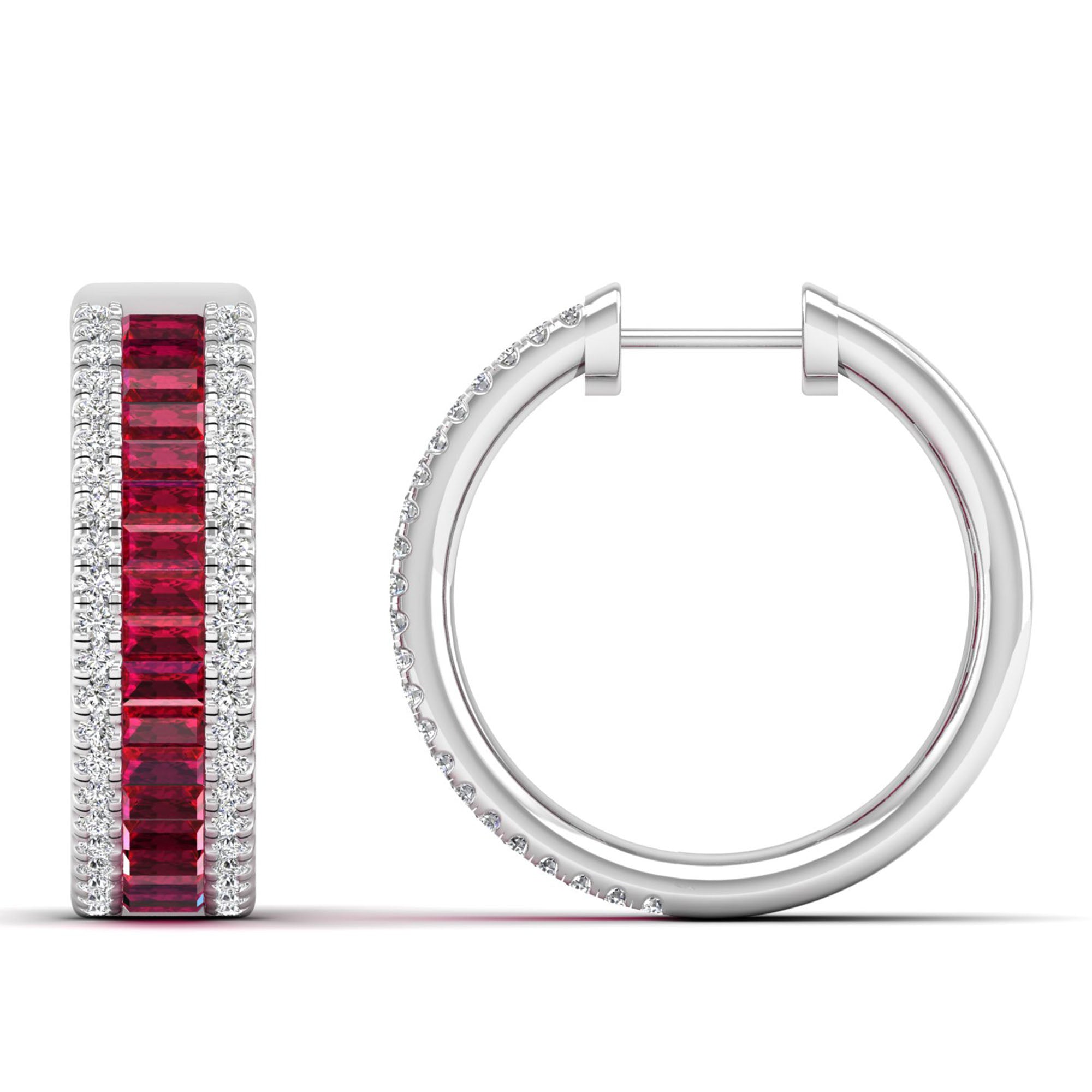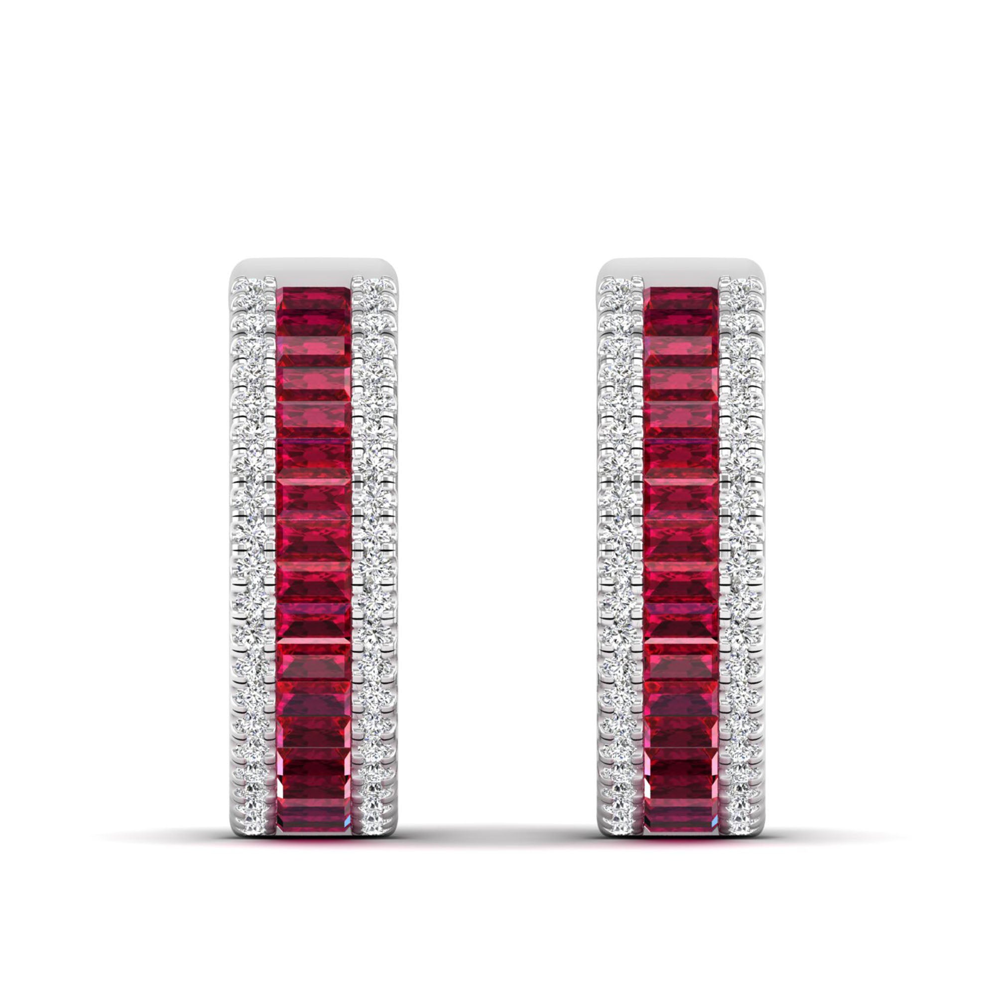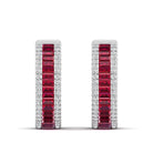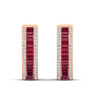 Channel Set Baguette Ruby and Diamond Hoop Earrings