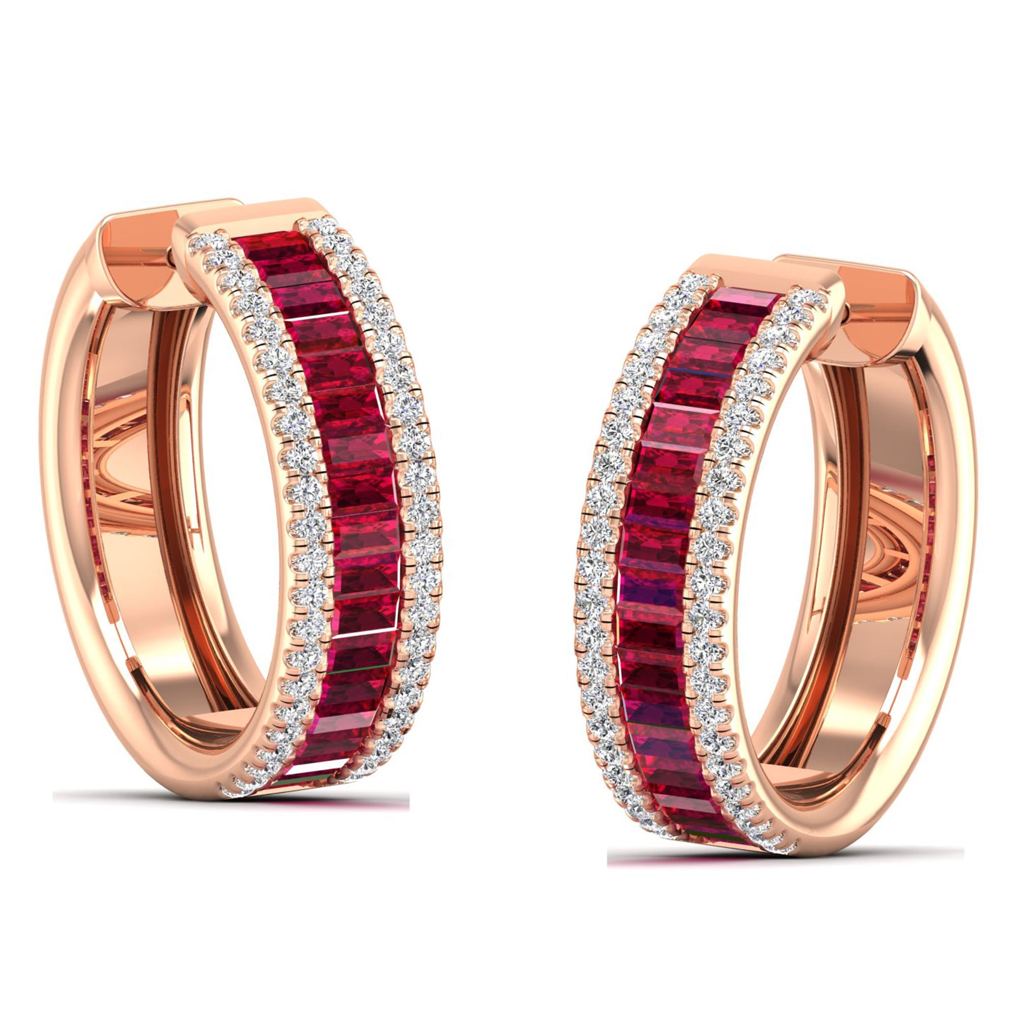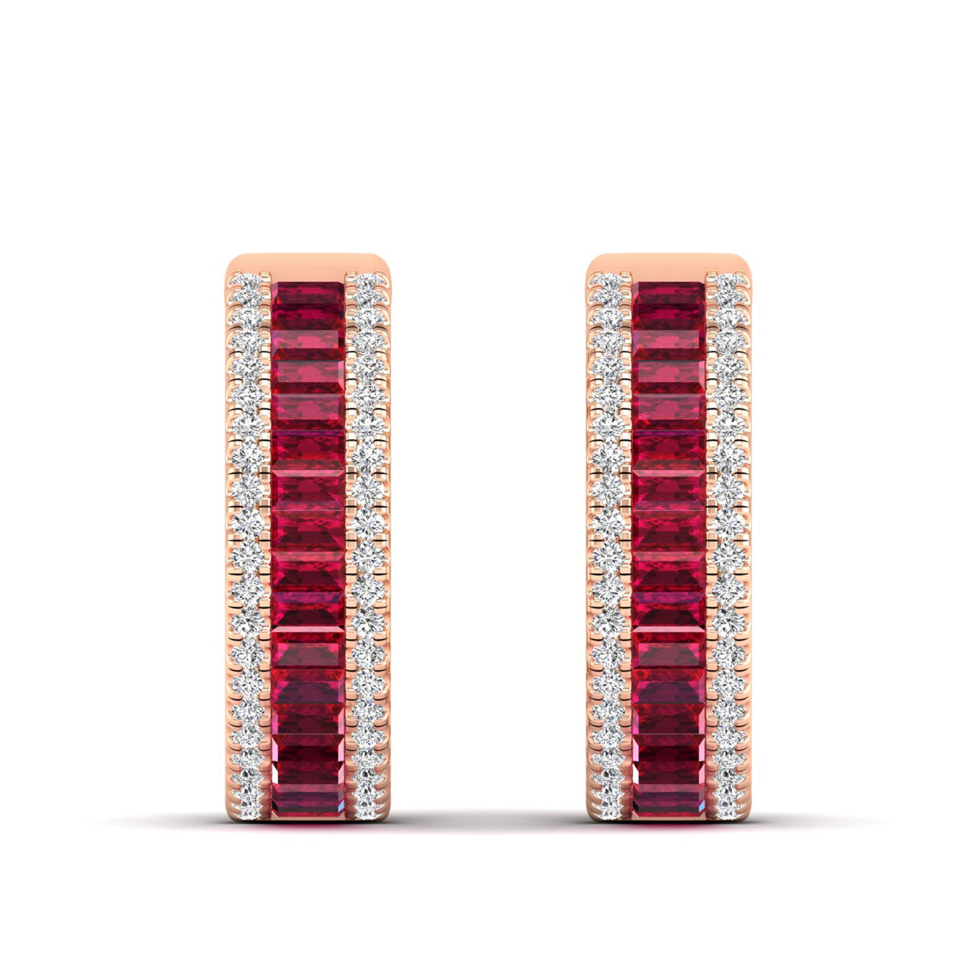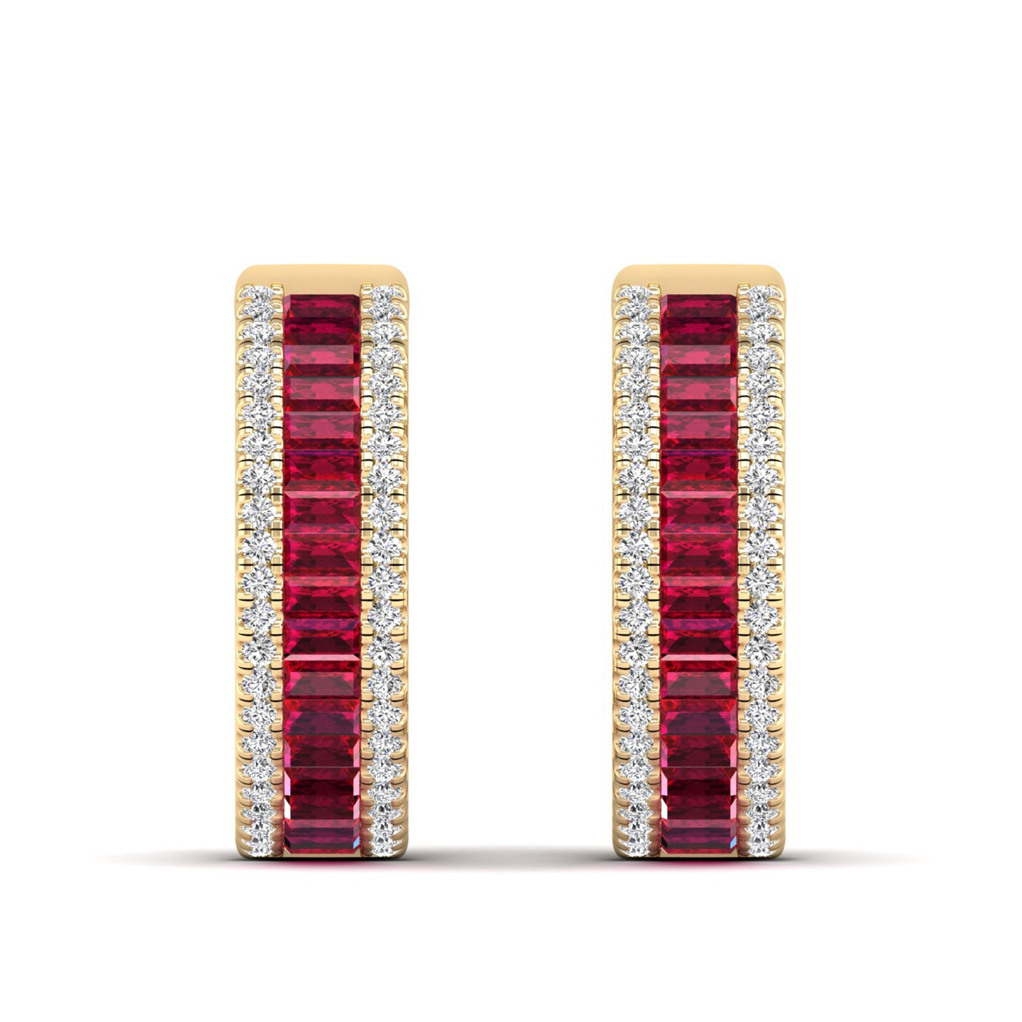 Channel Set Baguette Ruby and Diamond Hoop Earrings