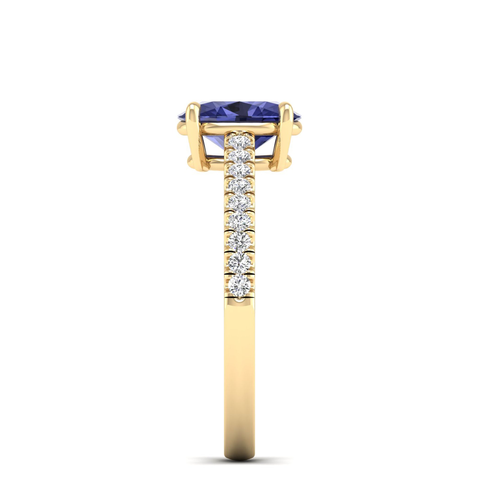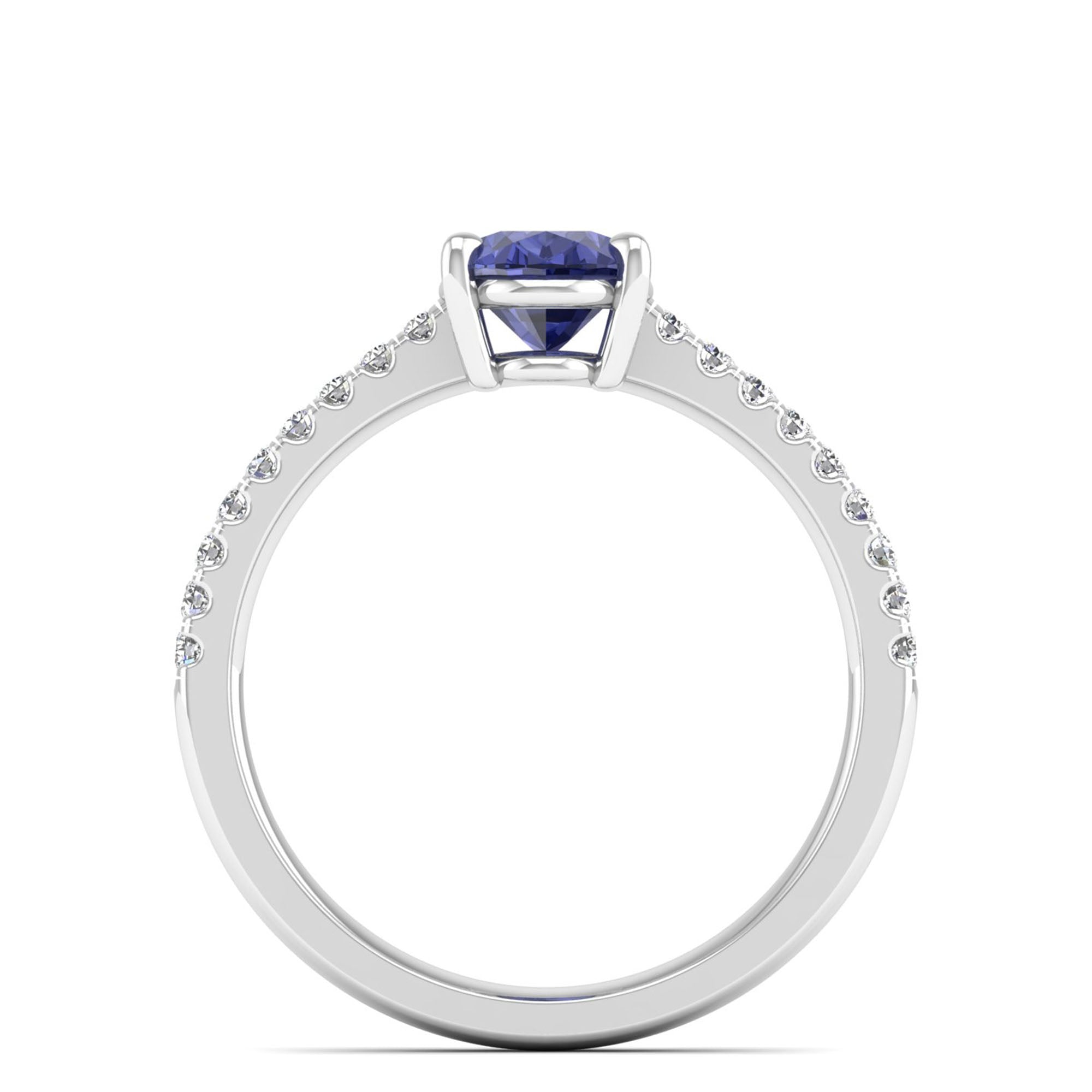 This classic oval tanzanite and diamond ring is expertly crafted with precision and attention to detail. With its elegant design and high-quality gems, it offers a timeless and luxurious addition to any jewelry collection.