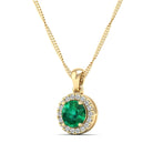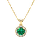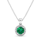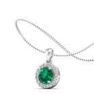 This classic round emerald and diamond pendant showcases a timeless design that exudes elegance. Crafted with high-quality emeralds and sparkling diamonds, this pendant adds a touch of sophistication to any outfit.