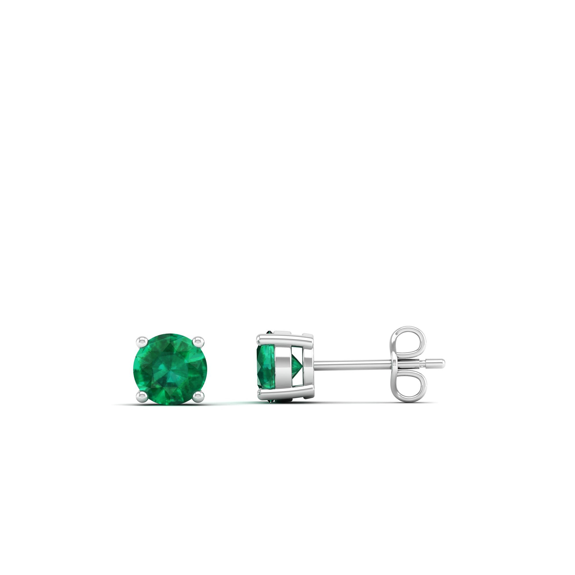 These timeless Classic Round Emerald Prong Stud Earrings feature a circular design and secure prong setting, showcasing the elegant emerald gemstone.