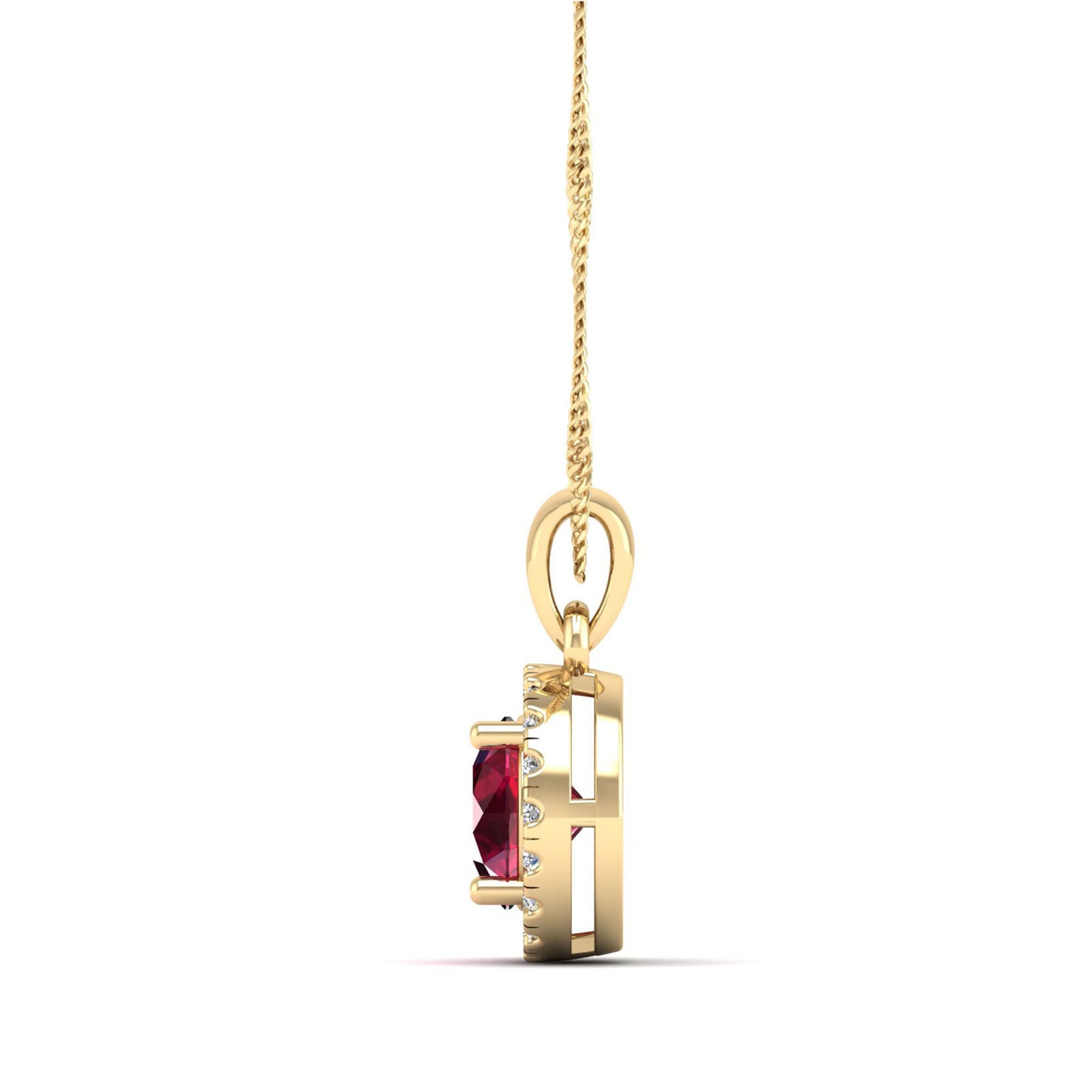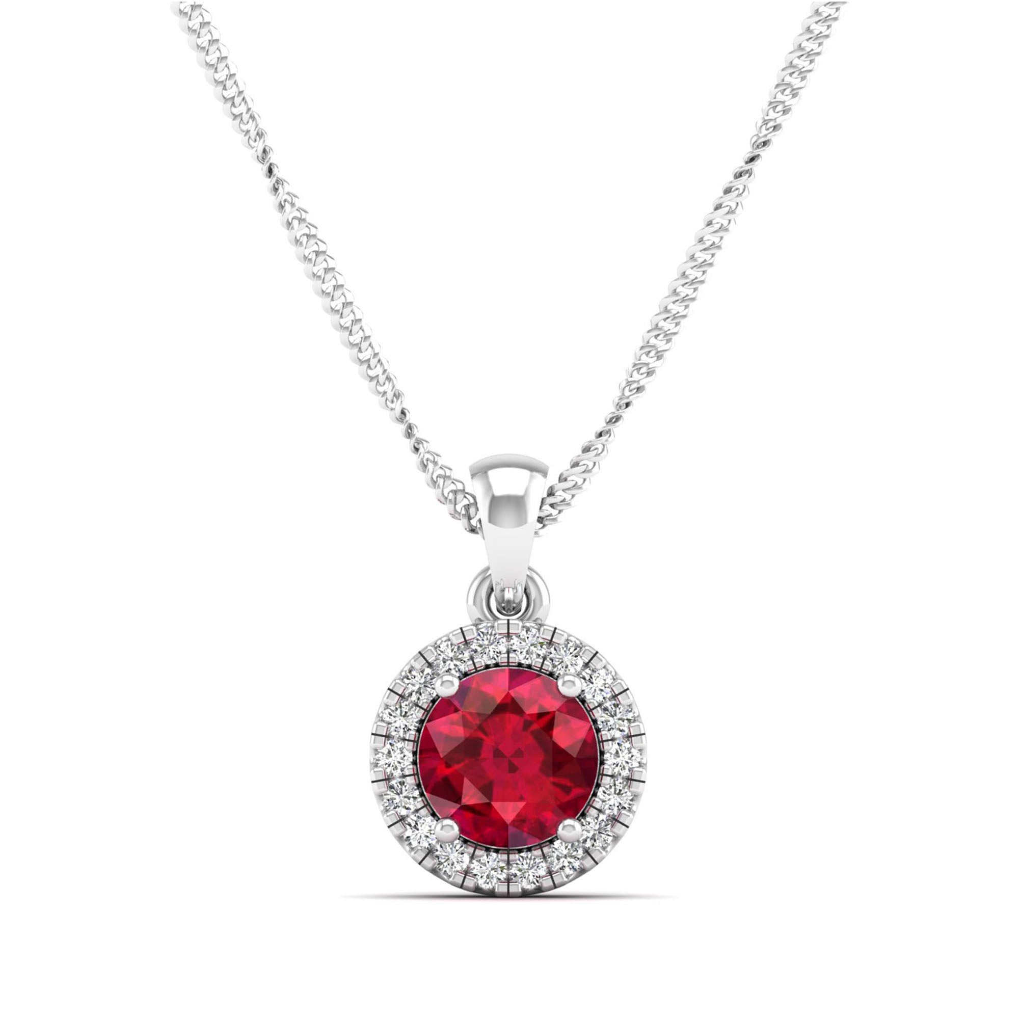 This classic round ruby and diamond pendant is a stunning addition to any jewelry collection. The vibrant ruby adds a touch of color, while the brilliant diamonds add sparkle and elegance.