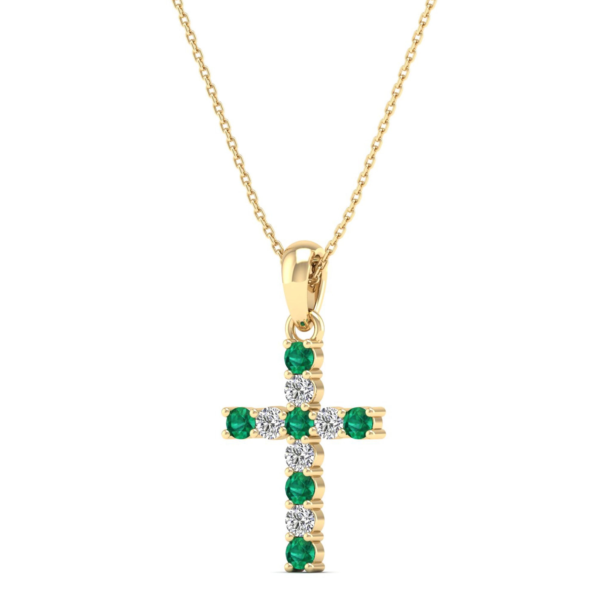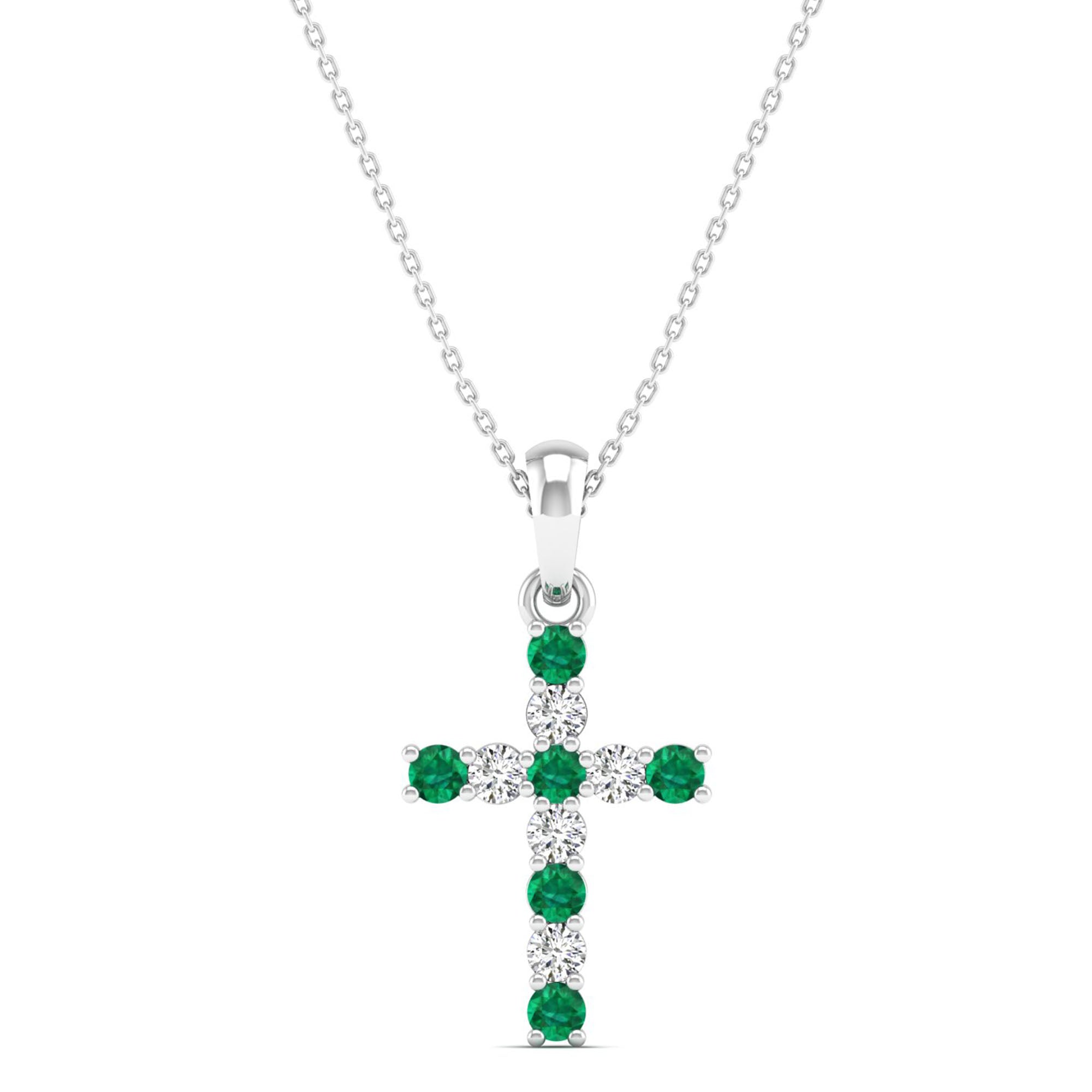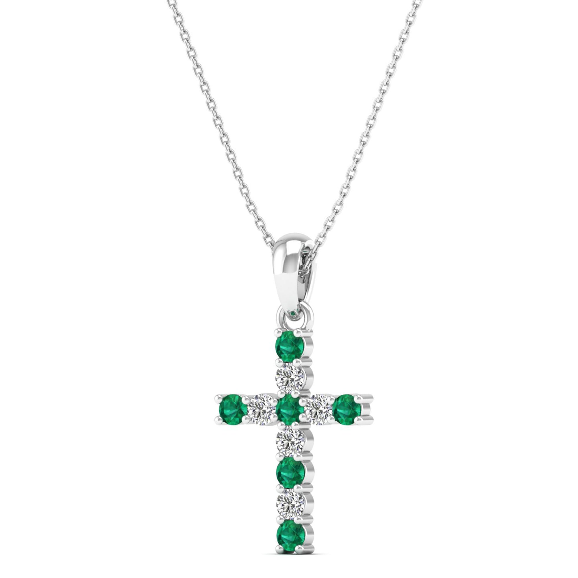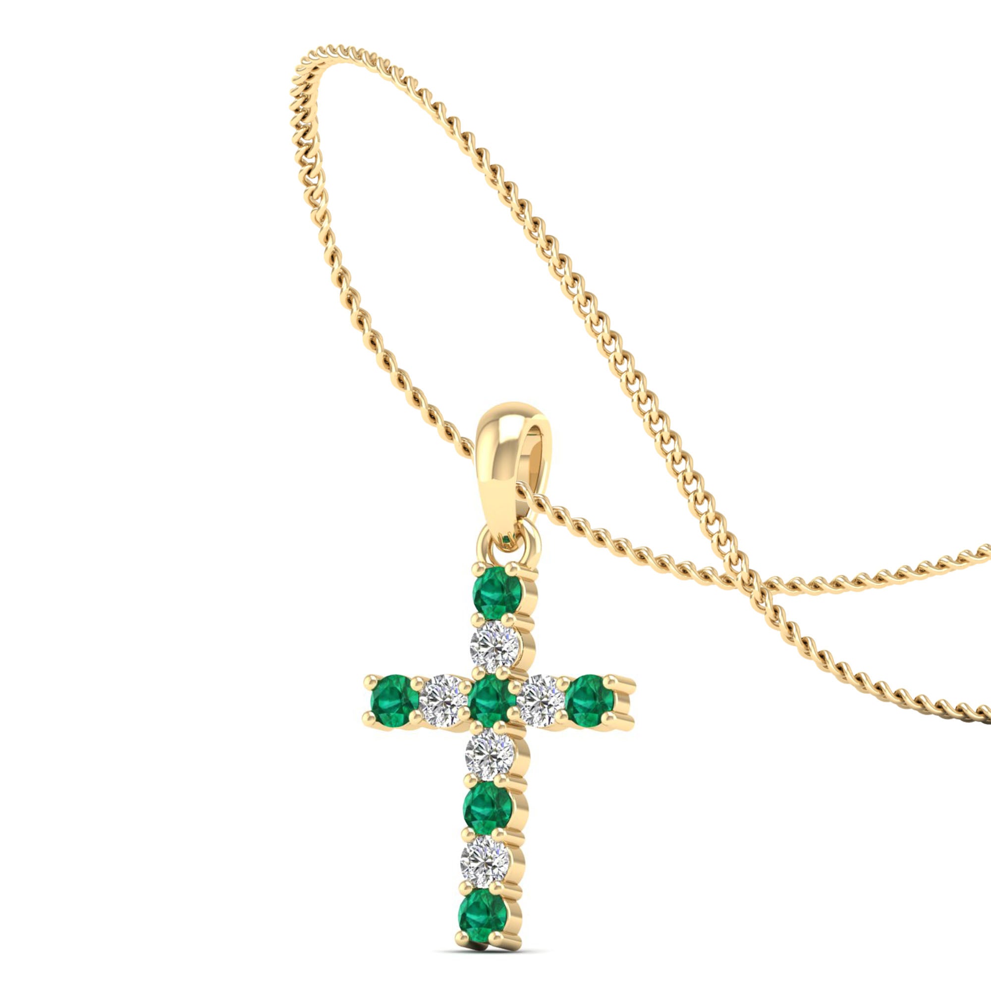 Experience the timeless beauty of our Cross Alternating Emerald and Diamond Pendant. This exquisite piece features alternating emeralds and diamonds, creating a stunning contrast.