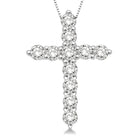 Express your love and faith in God with this charming diamond cross pendant. Gleaming 14 karat white gold pendant is adorned with 11 radiant prong set round cut diamonds arranged around the cross. It dangles from an elegant Box Chain 0.45 MM in 18 Inches with Spring Lock. The total diamond weight is 1/2 Ctw.