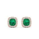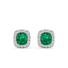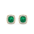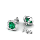 Upgrade your jewelry collection with our Cushion Emerald Halo Diamond Stud Earrings. Featuring a stunning emerald-cut diamond center stone surrounded by a halo of sparkling diamonds, these earrings are the perfect combination of elegance and modern style.