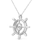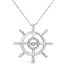 This delightful pendant features a ship wheel design with a diamond in the center that dances as you move. It also brings an 16 inch chain with a spring ring closure.