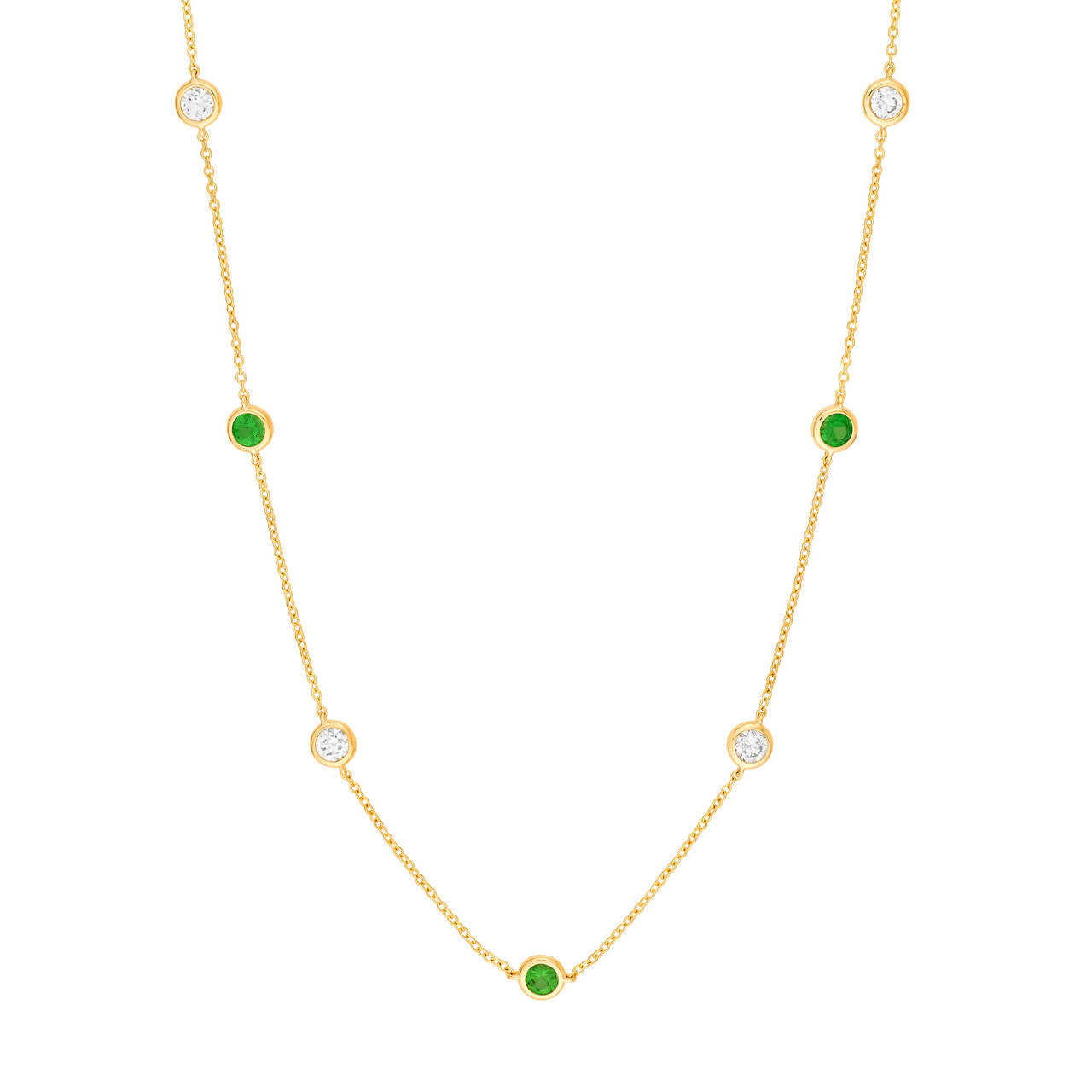 Add a little sparkle and a pop of color to your day with this 18-inch (2-inch adjustable jump ring extender) Diamond & Tsavorite Station Necklace! Crafted in shiny 14K gold, it features a fun mix of dazzling diamonds and vibrant tsavorite that dance along the chain. Perfect for brightening up any outfit, this necklace is your new go-to for effortless charm and playful elegance.