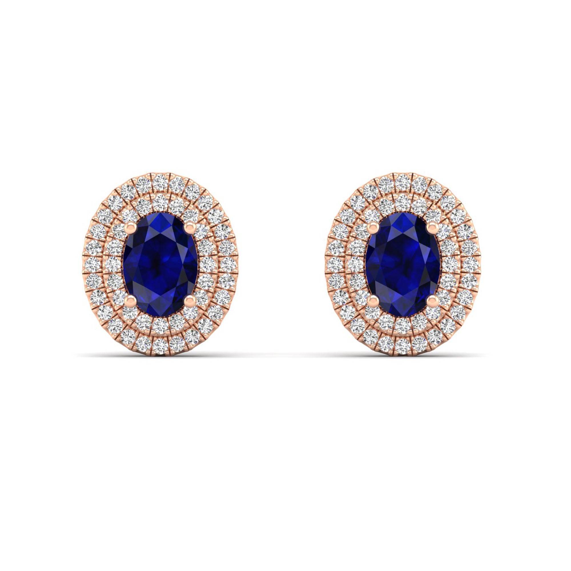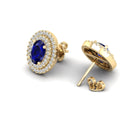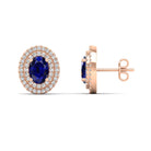 Double Halo Oval Sapphire and Diamond Studs Earrings