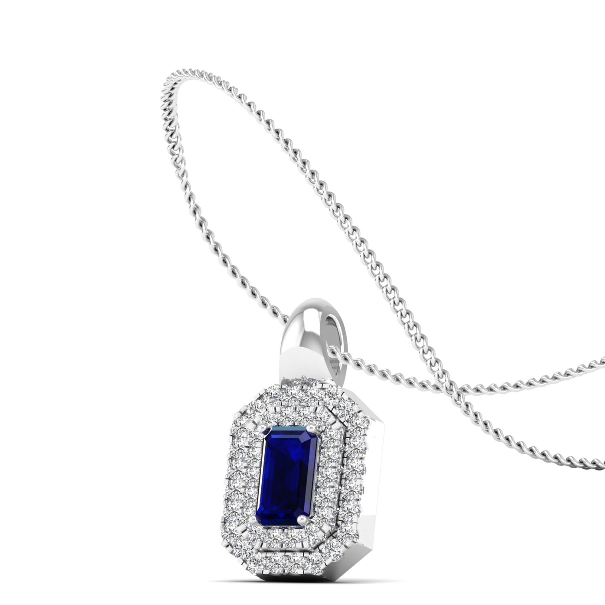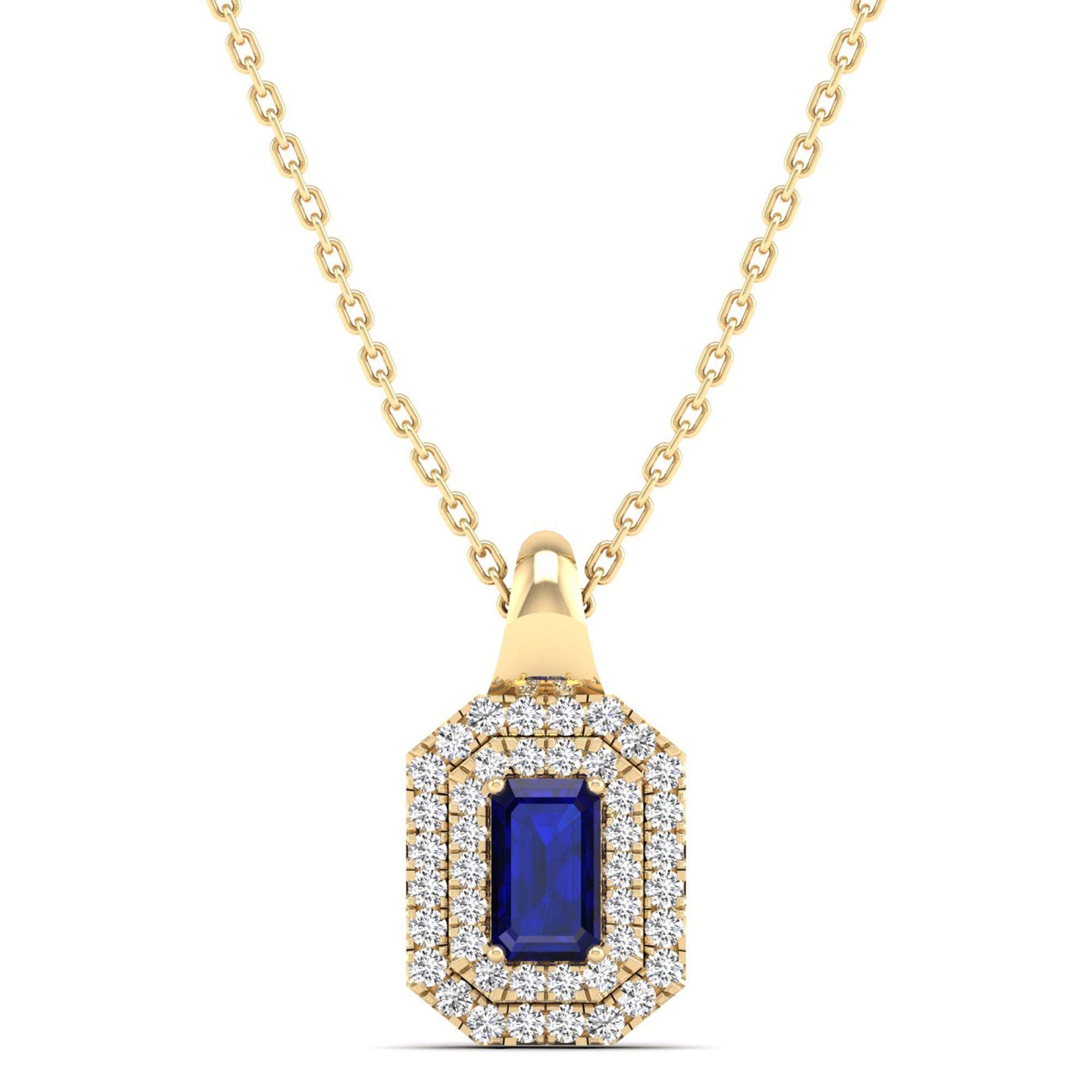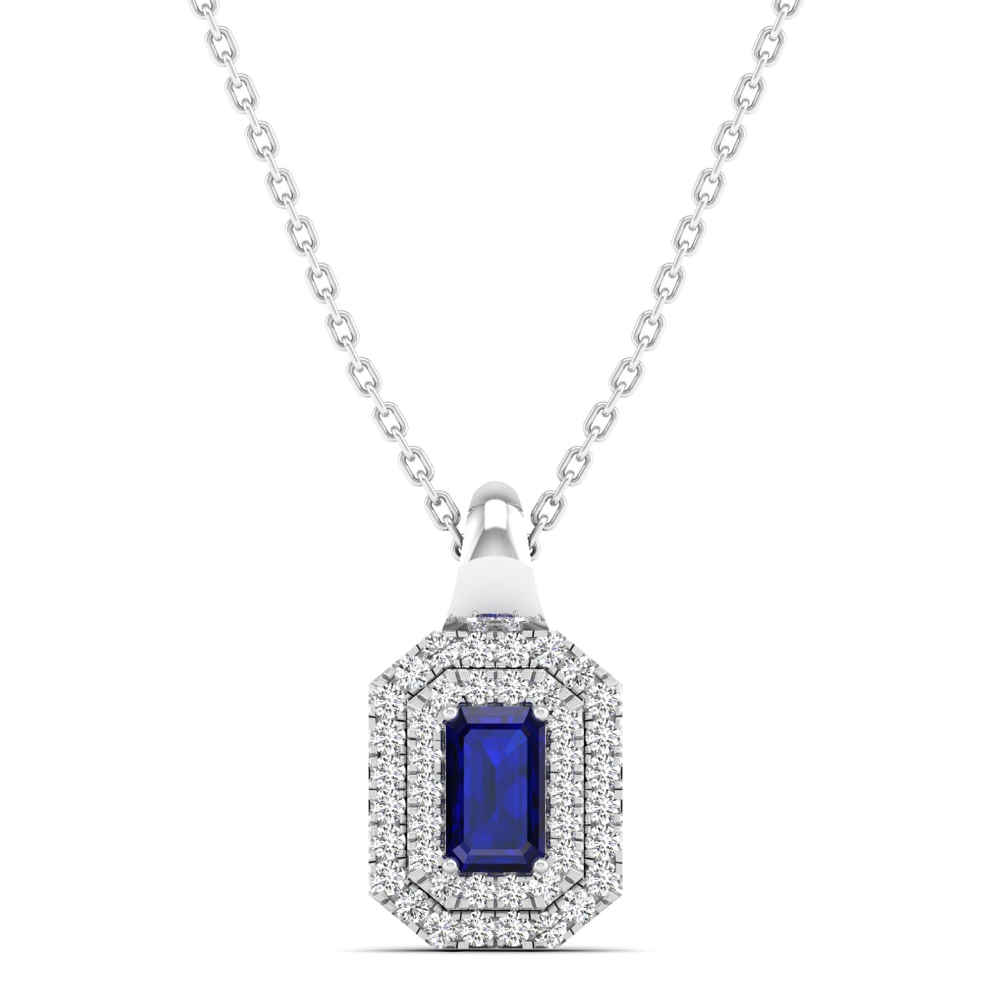 This Double Halo Sapphire and Diamond Beveled Pendant offers a unique and sophisticated touch to any outfit. Featuring exquisite sapphire and diamonds crafted into a stunning double halo design, it is sure to make a statement.