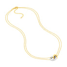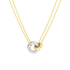 Add a touch of charm to your look with this playful Double Interlocking Necklace. Featuring two tone 14k gold chains and two linked circles, this 18" necklace including a 2'' extender effortlessly blends elegance and fun. Perfect for brightening up any outfit with a little sparkle and style.