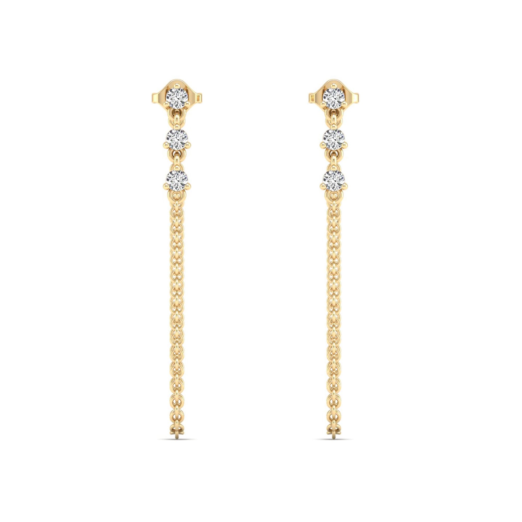 Experience the perfect blend of luxury and versatility with our Drop Chain Threader Diamond Earrings. These unique earrings feature a delicate chain that elegantly threads through your earlobe, creating a modern and stunning look.