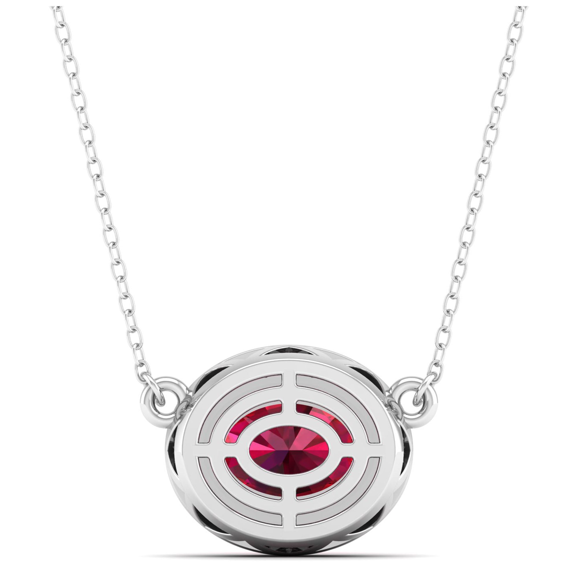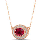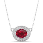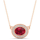 East-West Oval Ruby with Diamond Halo Necklace