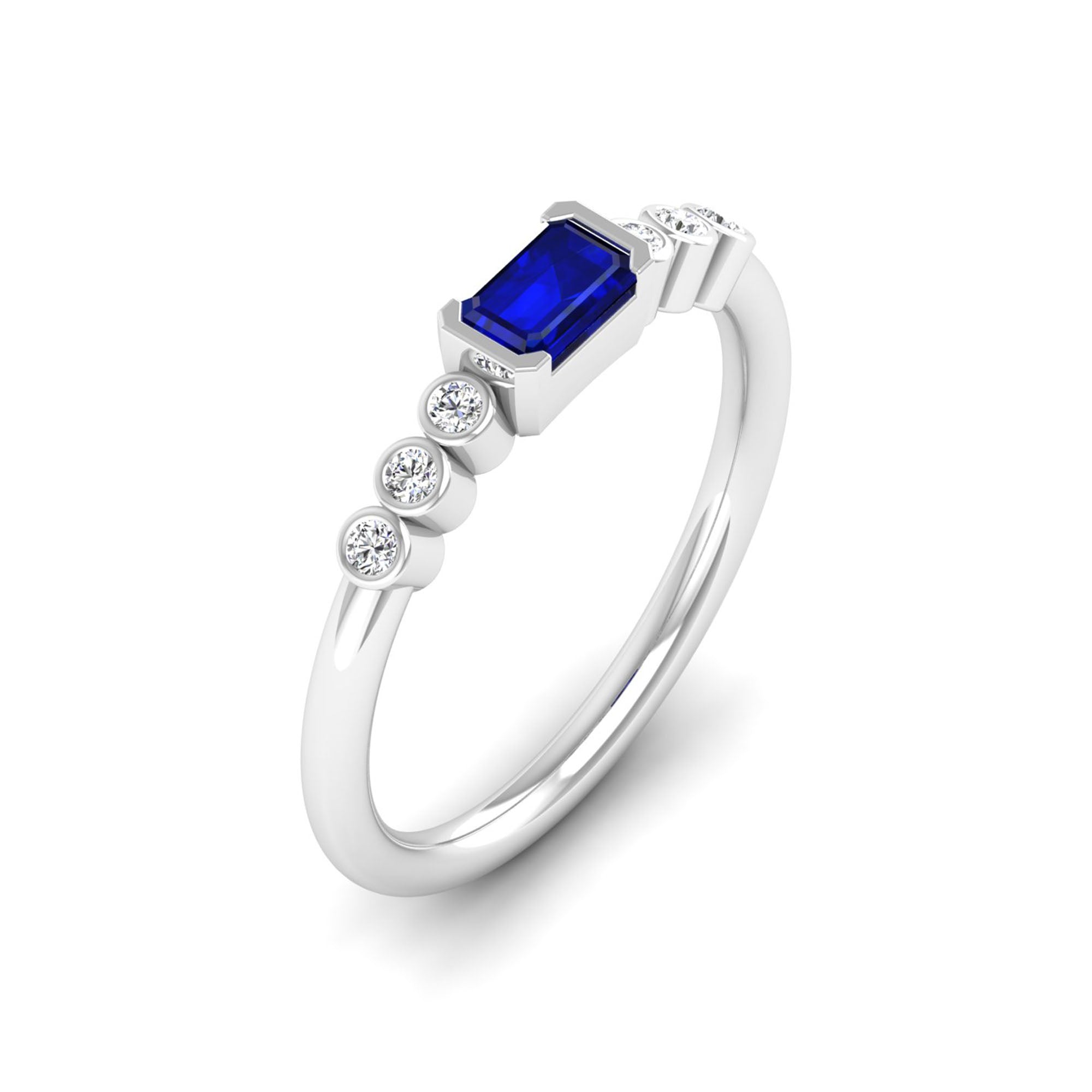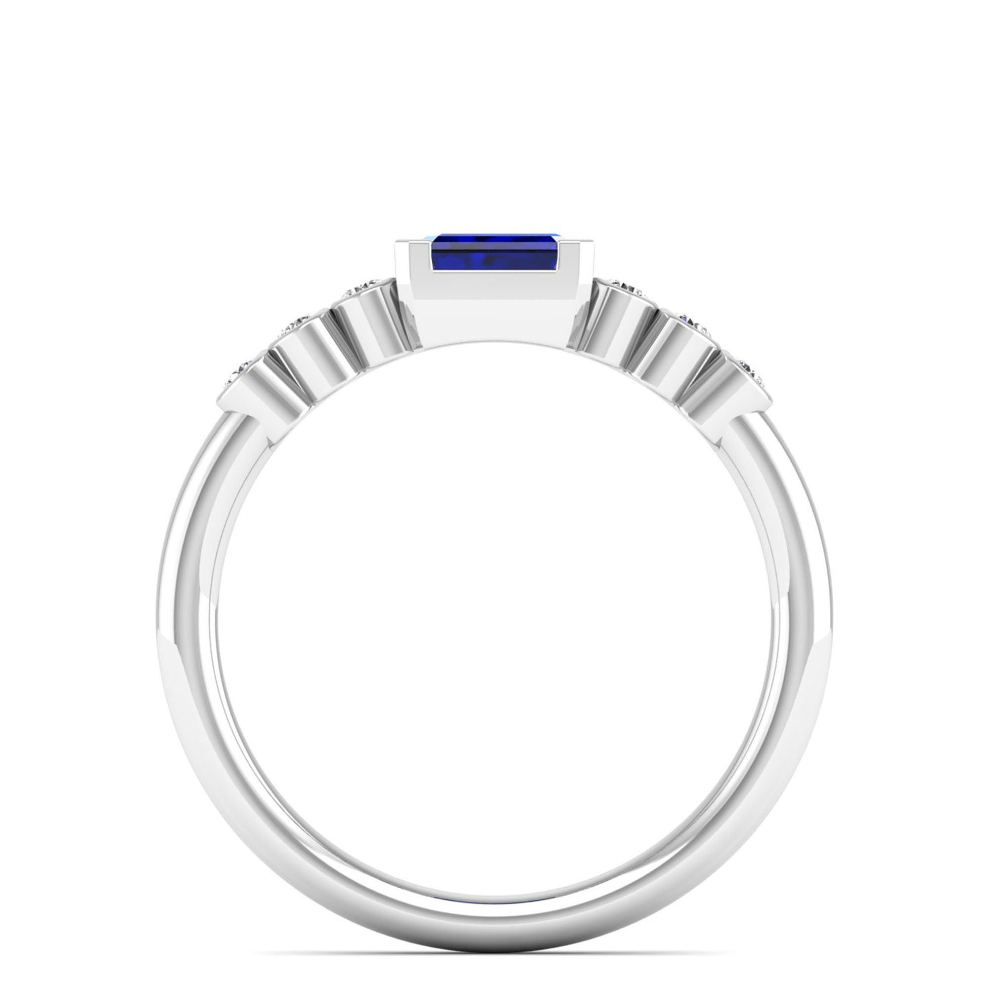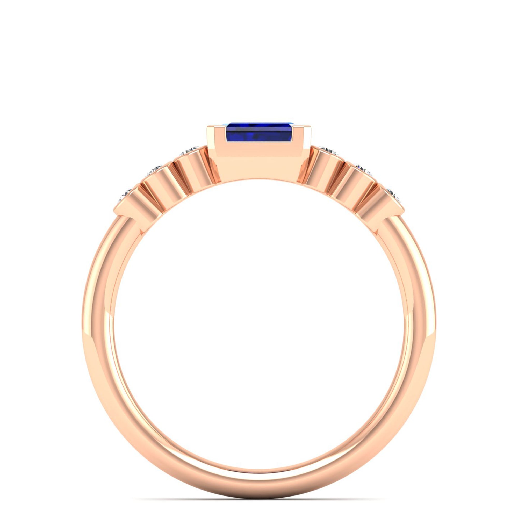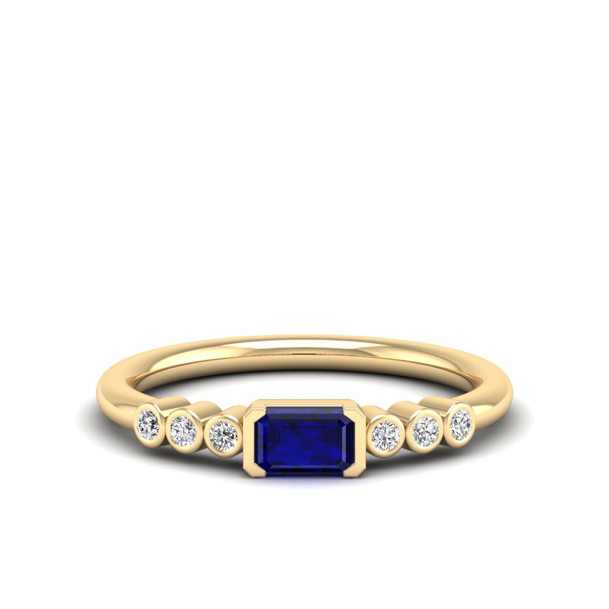 Expertly designed with a stunning east-west sapphire and bezel diamond, this ring exudes elegance and sophistication. Its unique design is crafted to accentuate your hand and bring a touch of luxury to any outfit.