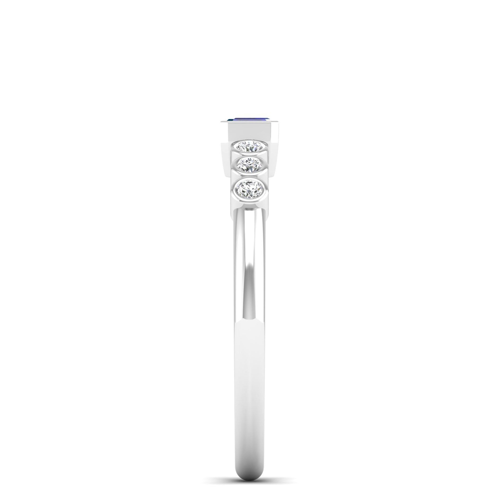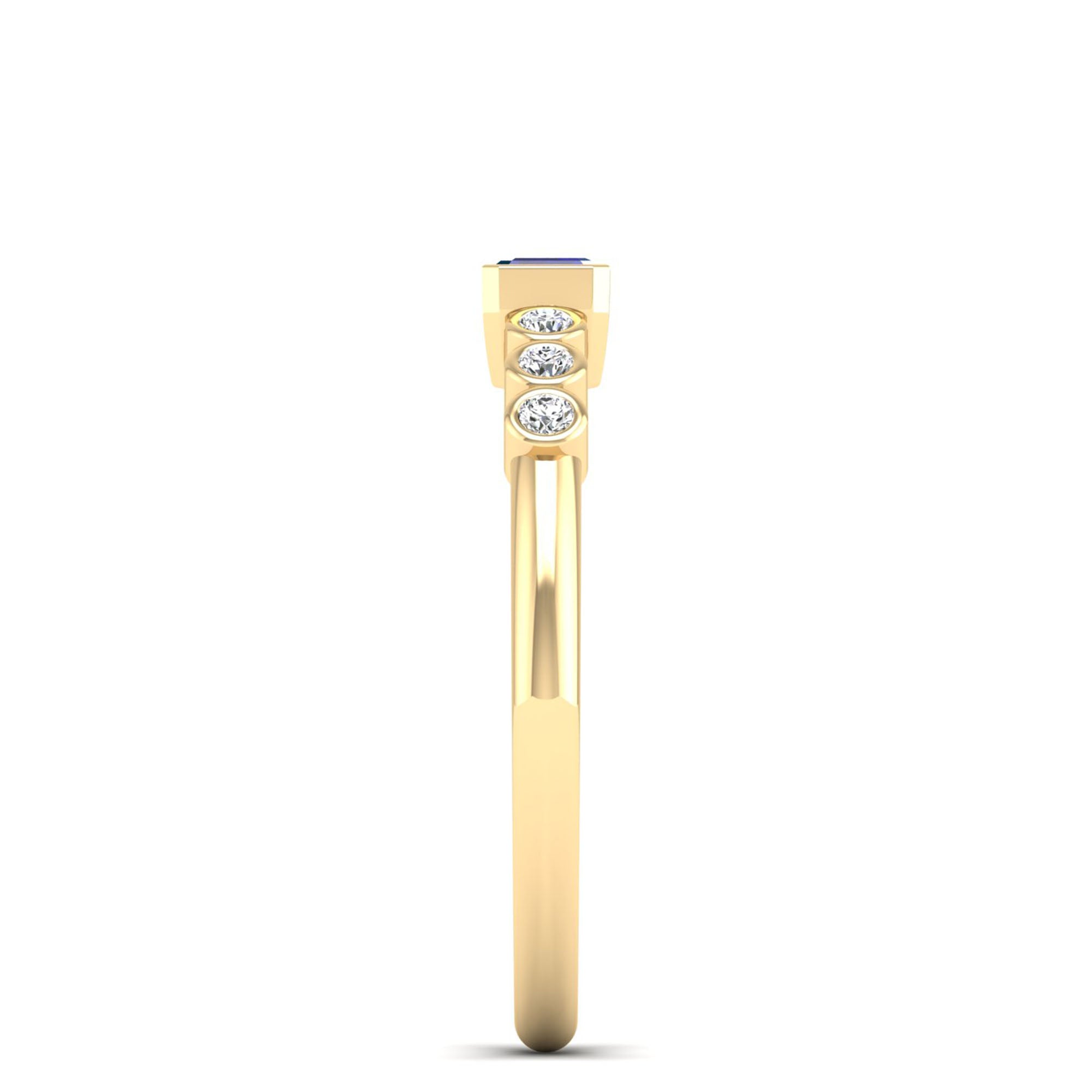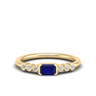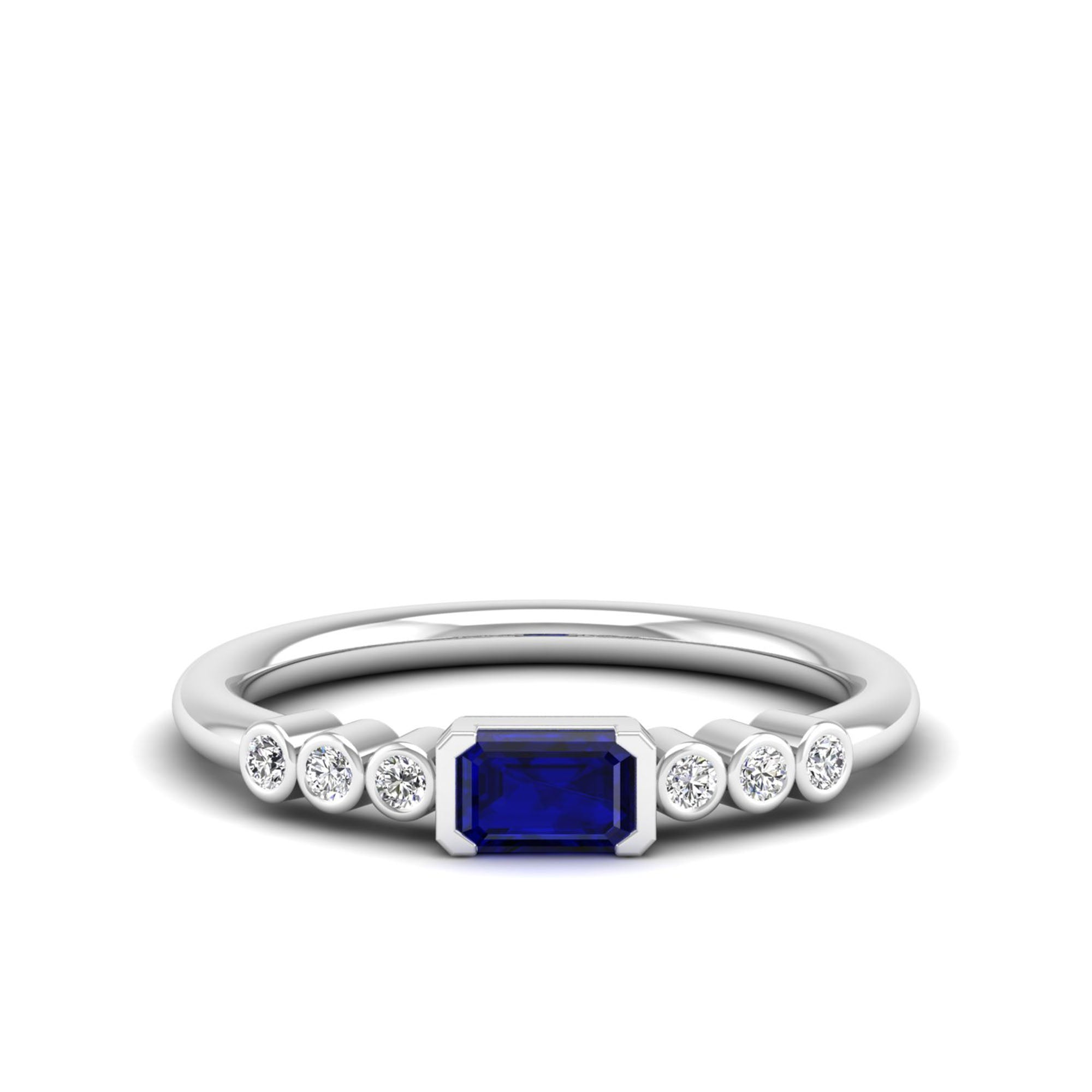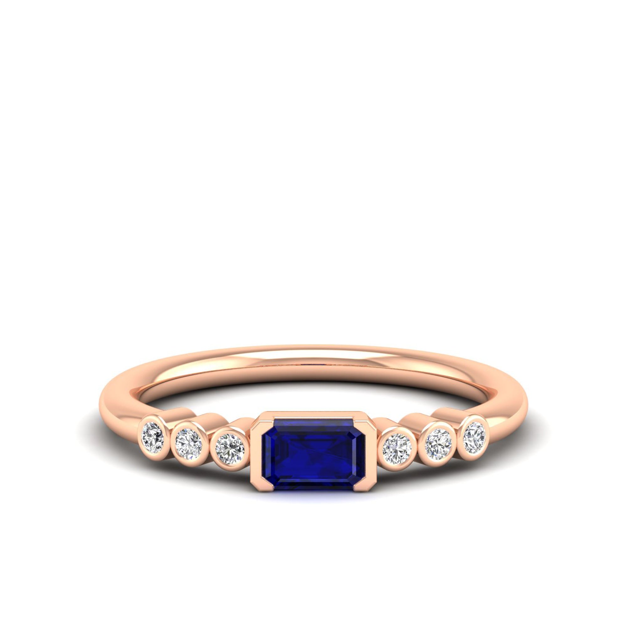 Expertly designed with a stunning east-west sapphire and bezel diamond, this ring exudes elegance and sophistication. Its unique design is crafted to accentuate your hand and bring a touch of luxury to any outfit.