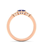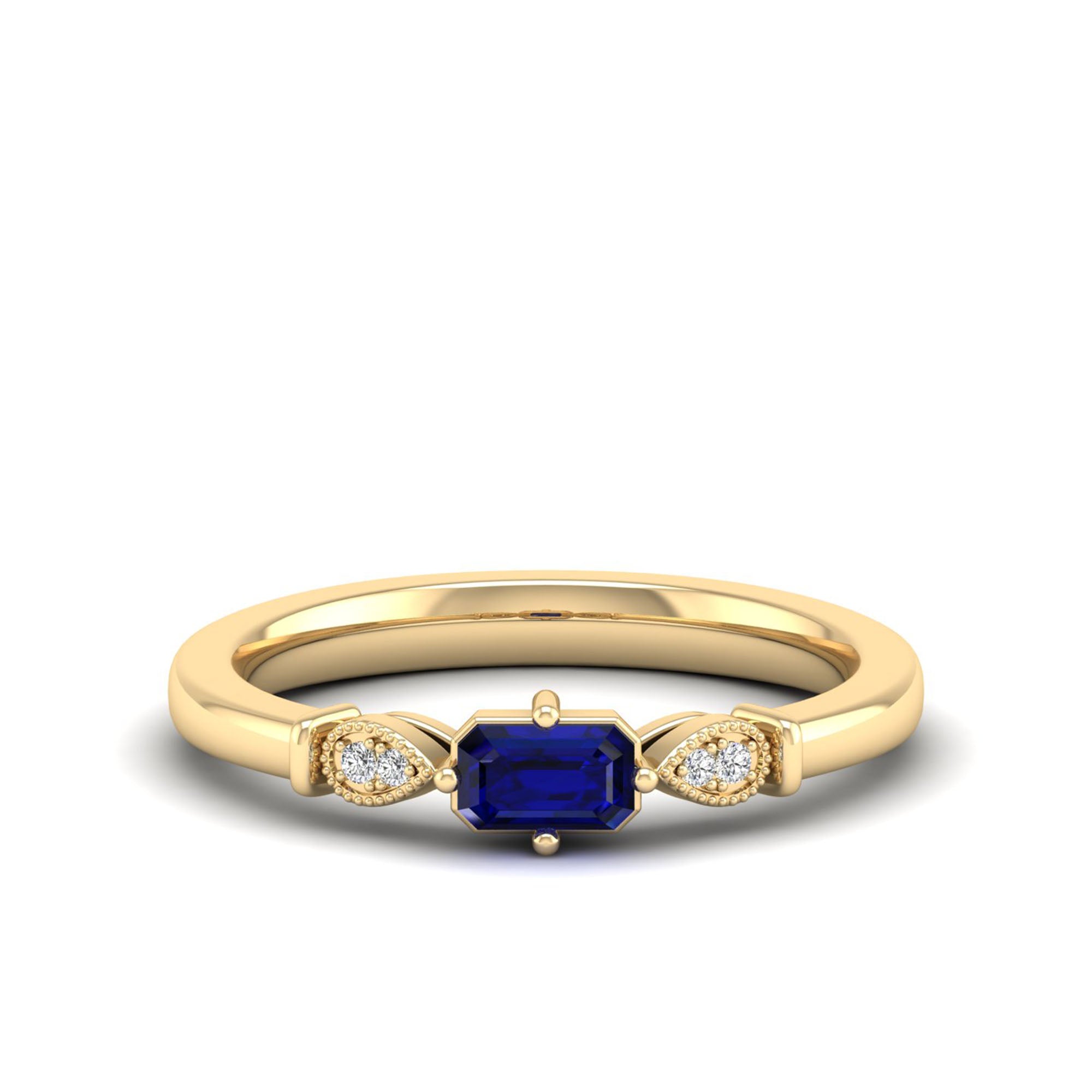 This East-West Sapphire and Filligree Diamond Ring is expertly crafted with a stunning sapphire center stone and intricate diamond filligree design.