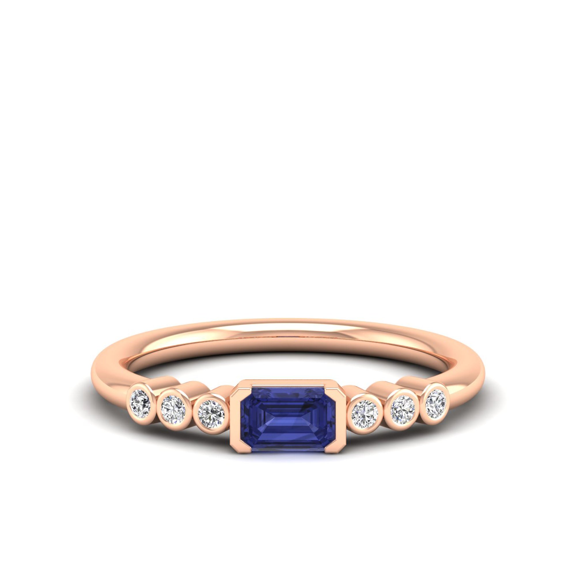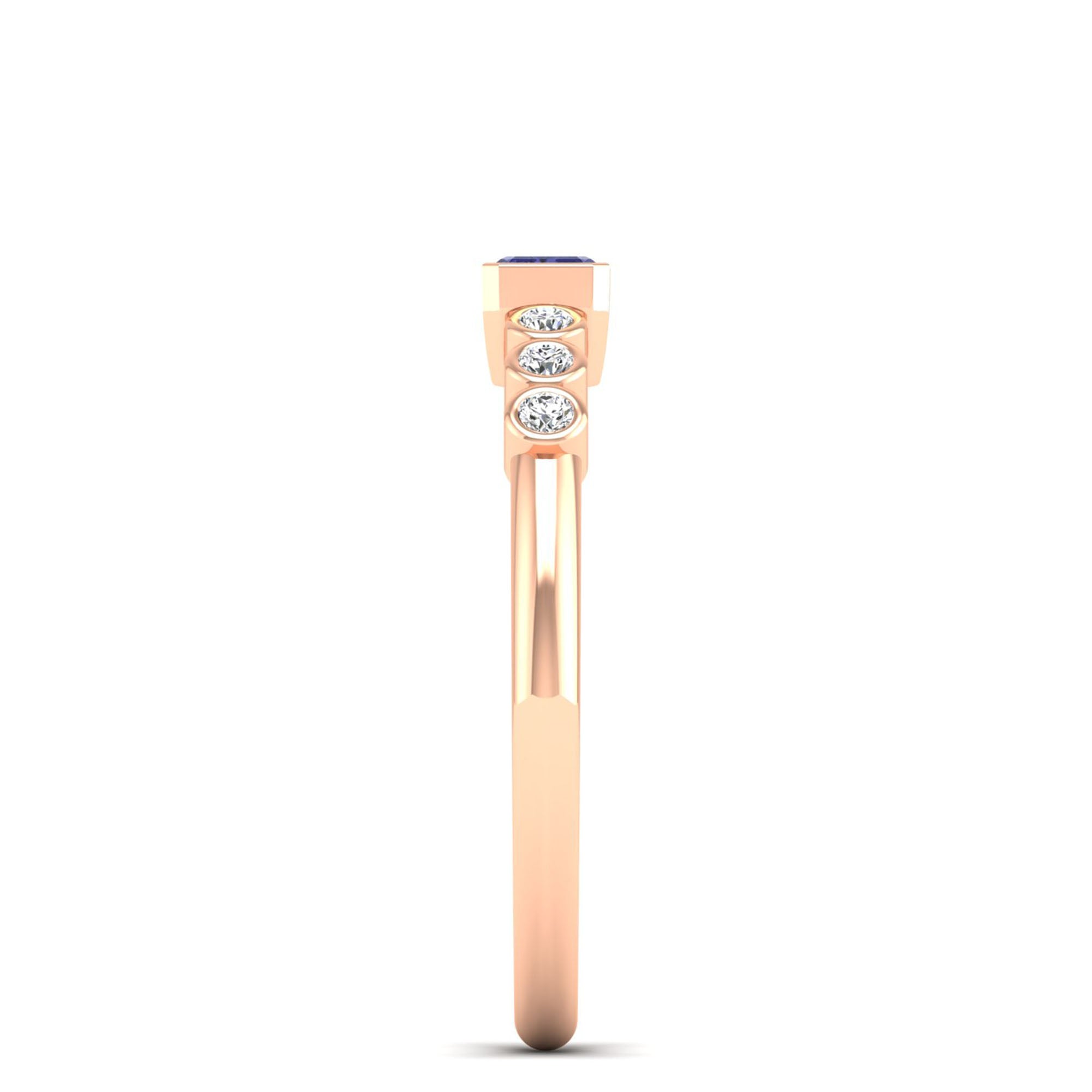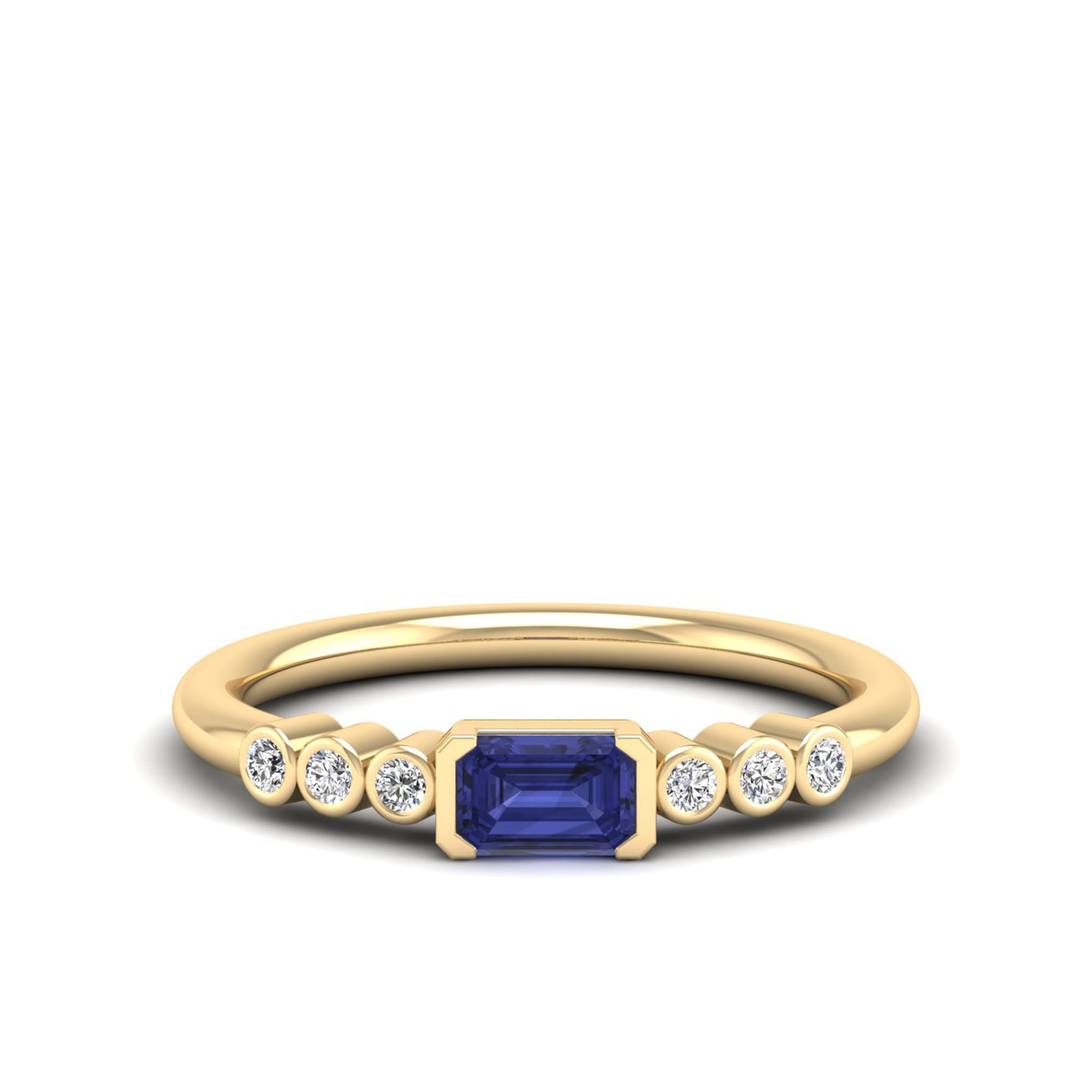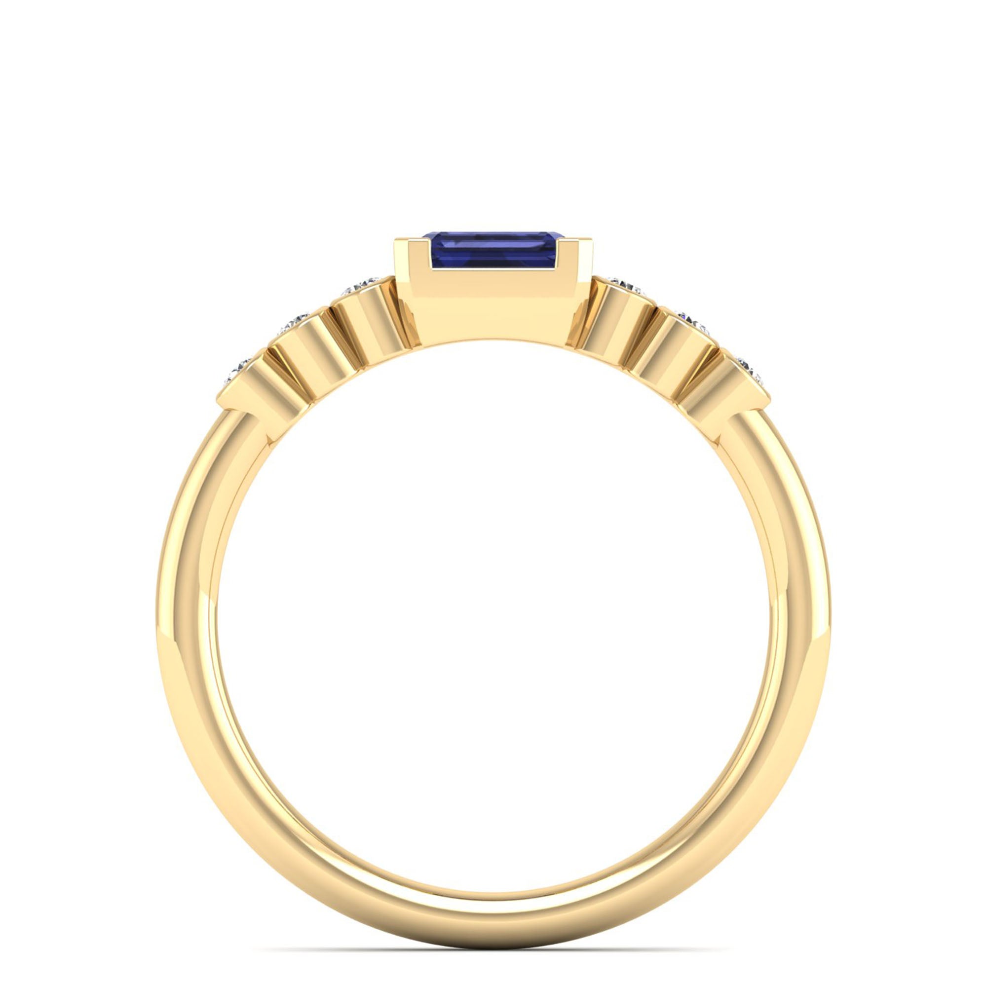 Expertly designed with a stunning east-west tanzanite and bezel diamond, this ring exudes elegance and sophistication. Its unique design is crafted to accentuate your hand and bring a touch of luxury to any outfit.