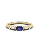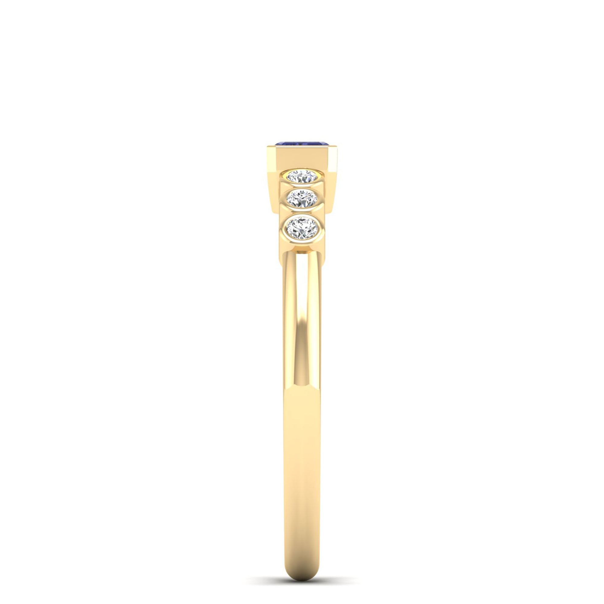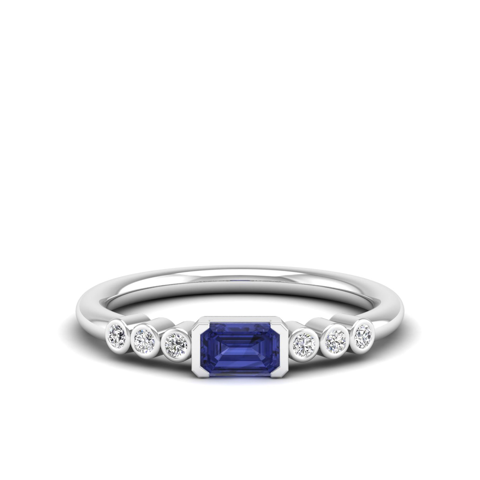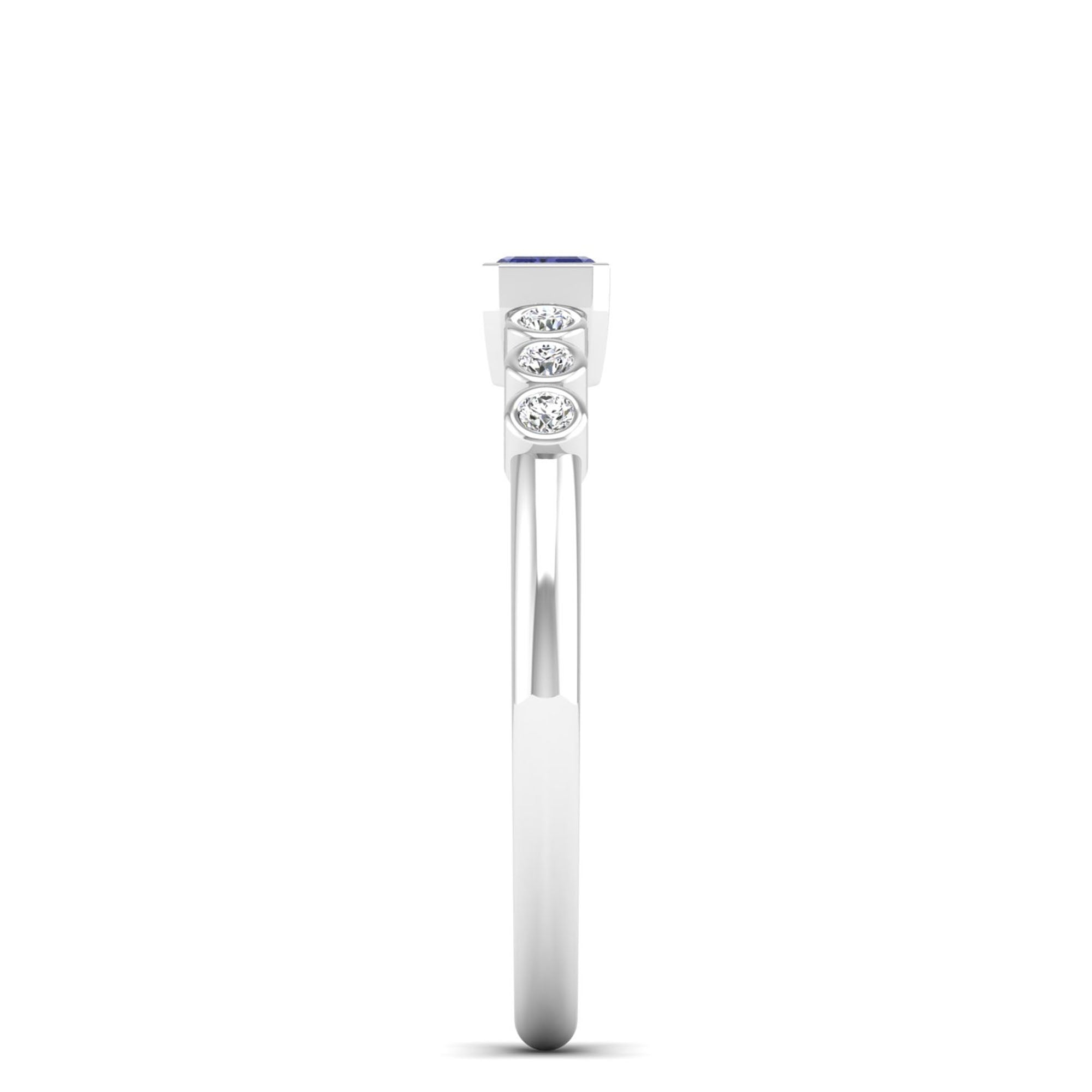 Expertly designed with a stunning east-west tanzanite and bezel diamond, this ring exudes elegance and sophistication. Its unique design is crafted to accentuate your hand and bring a touch of luxury to any outfit.