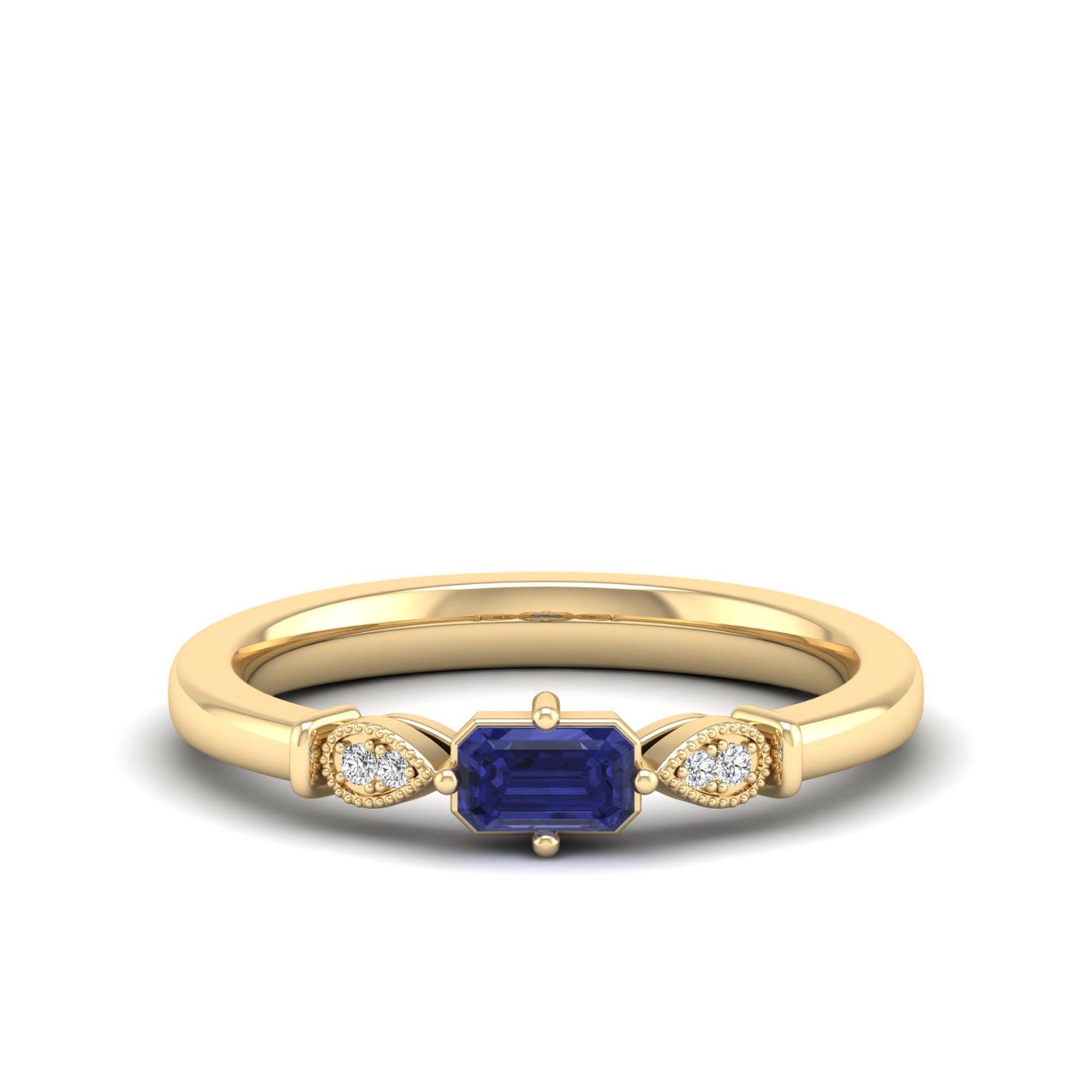 East-West Tanzanite and Filligree Diamond Ring