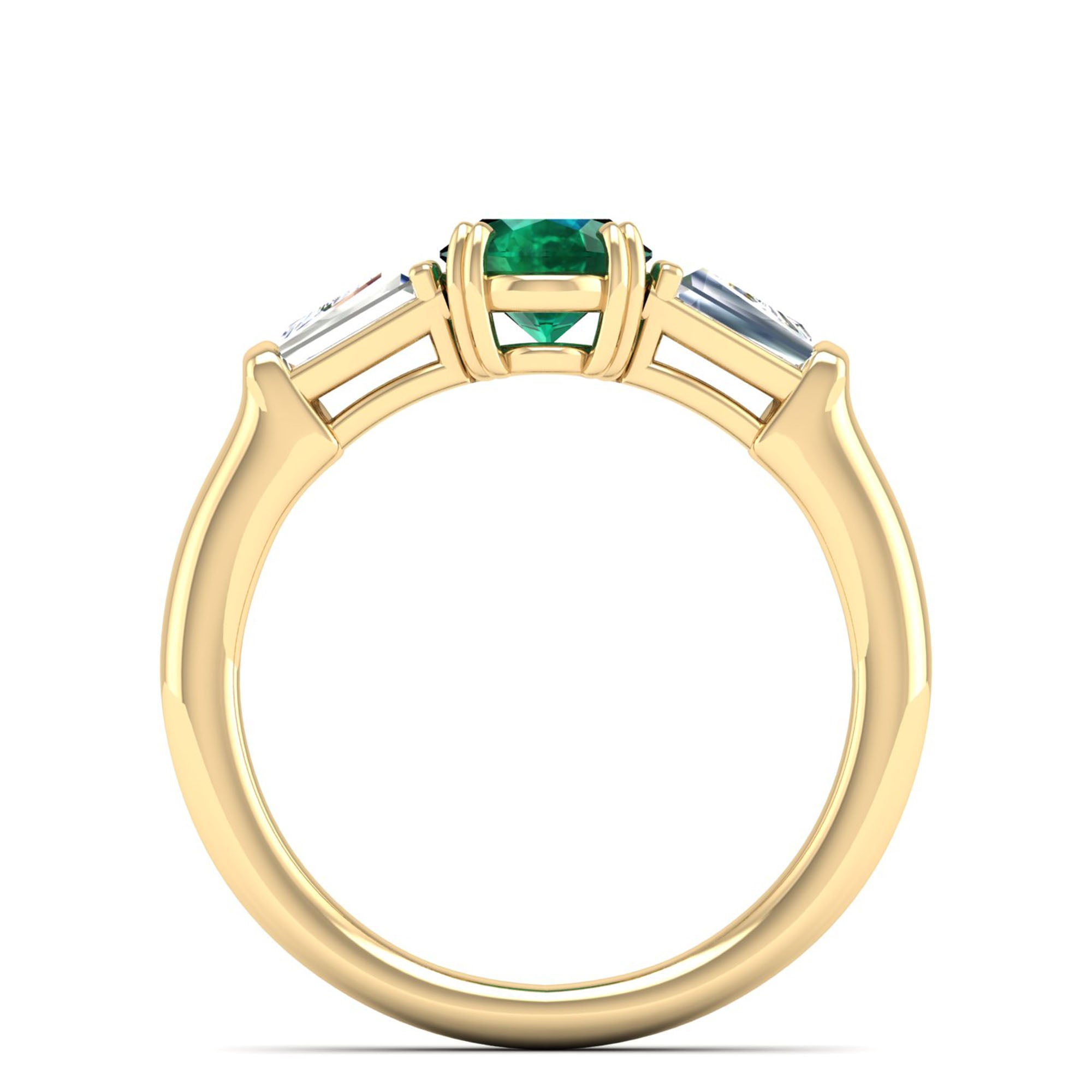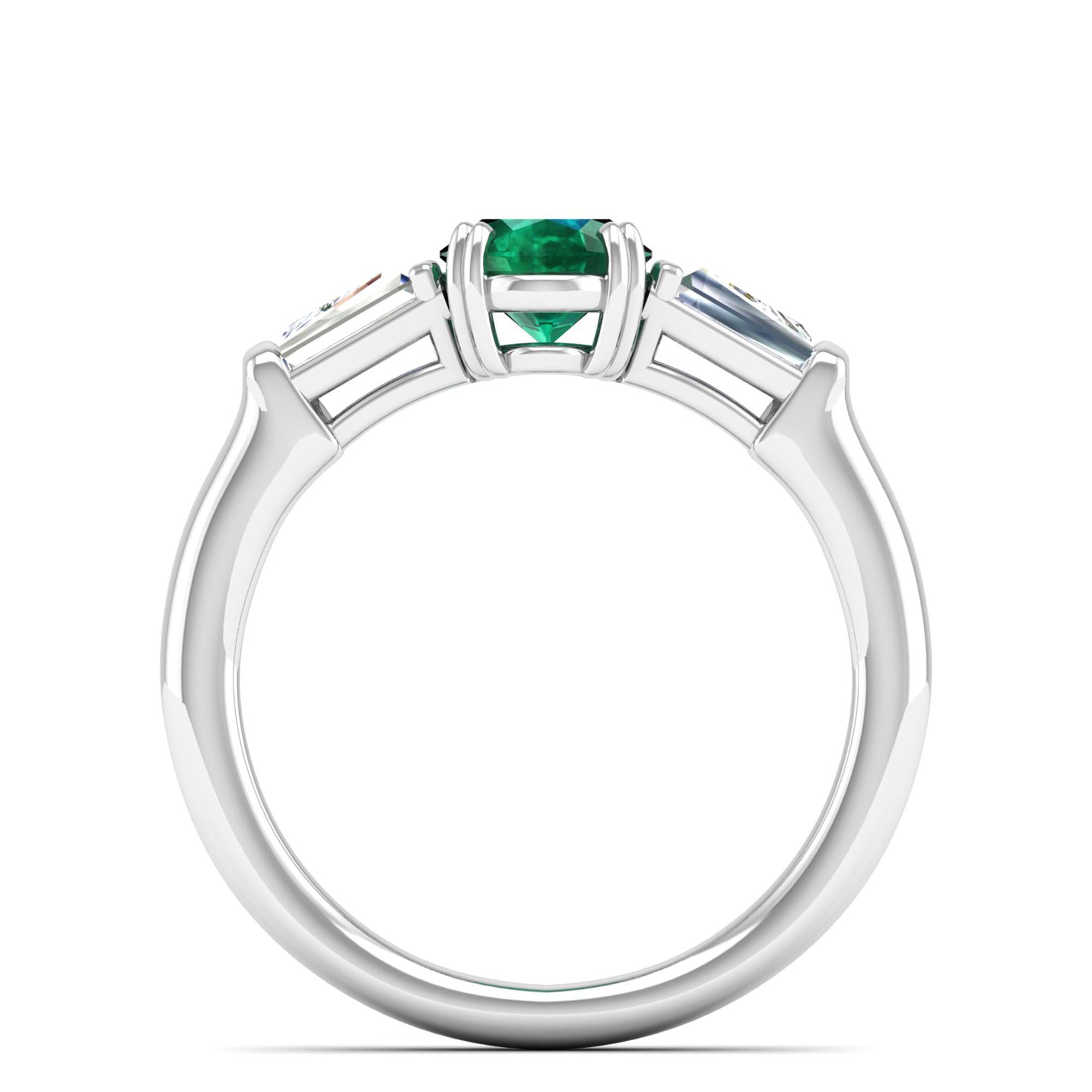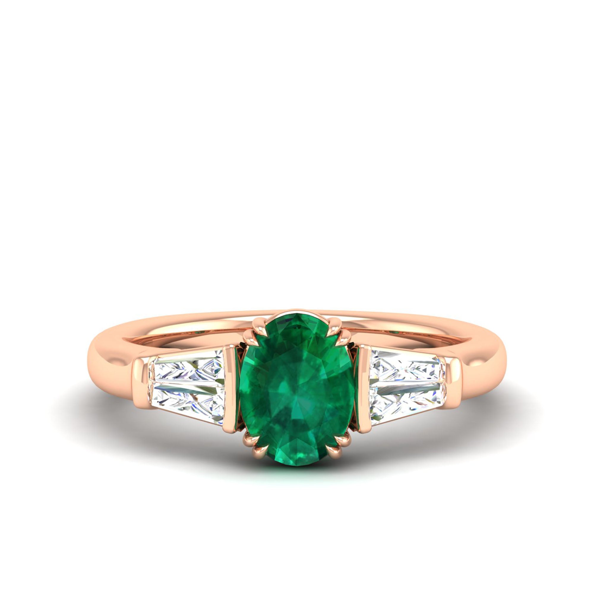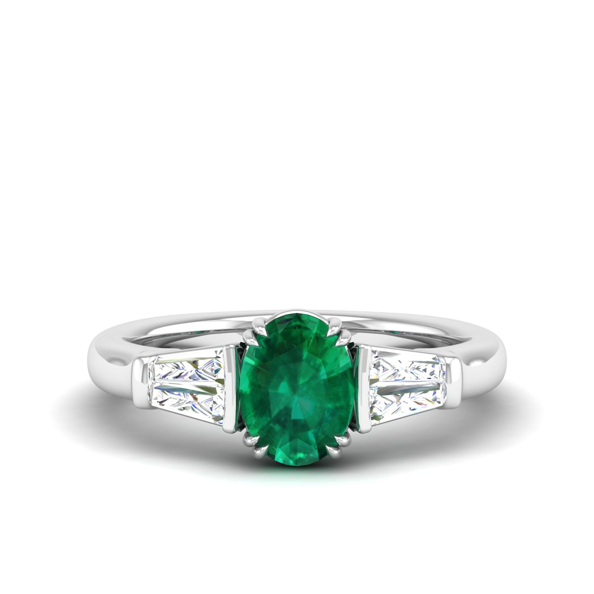 This elegant ring features a stunning emerald gemstone, accented by tapered baguette diamonds. With a timeless design and superior craftsmanship, this ring is a perfect addition to any jewelry collection.