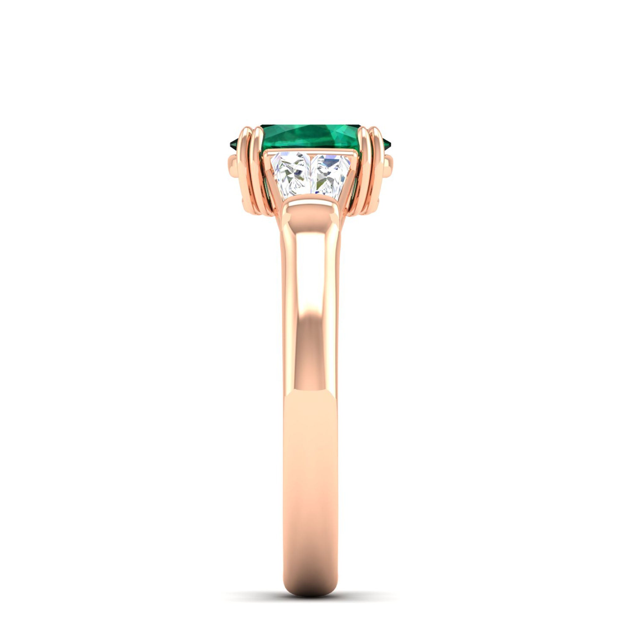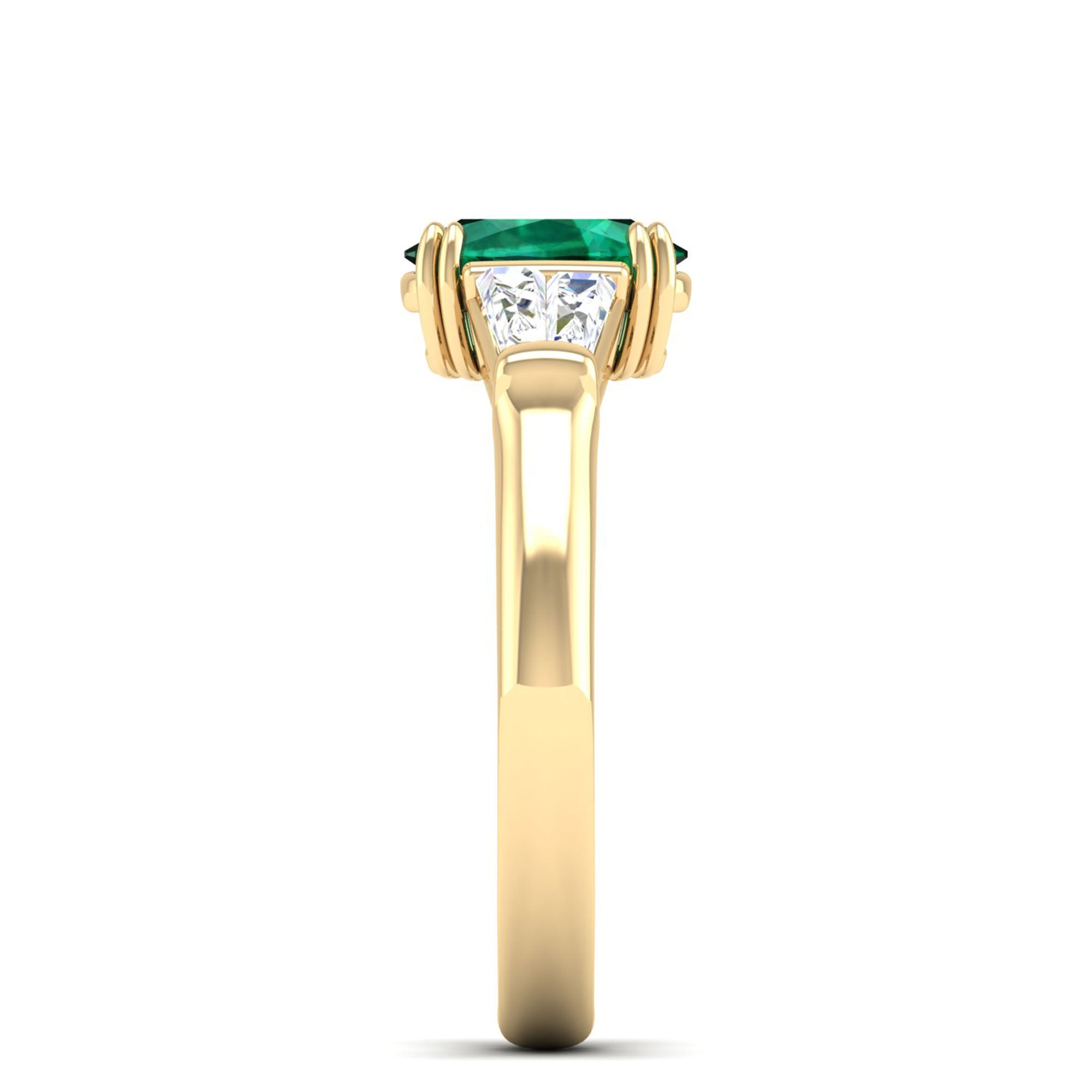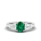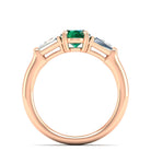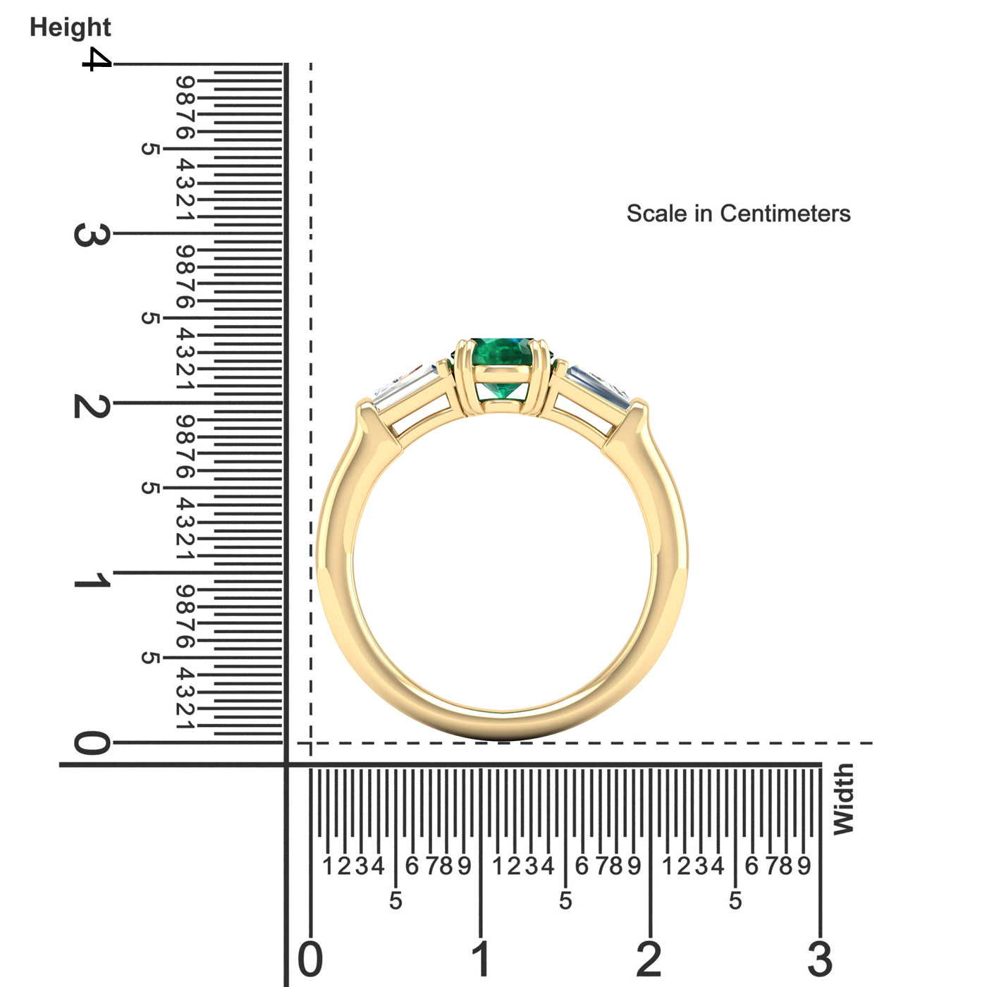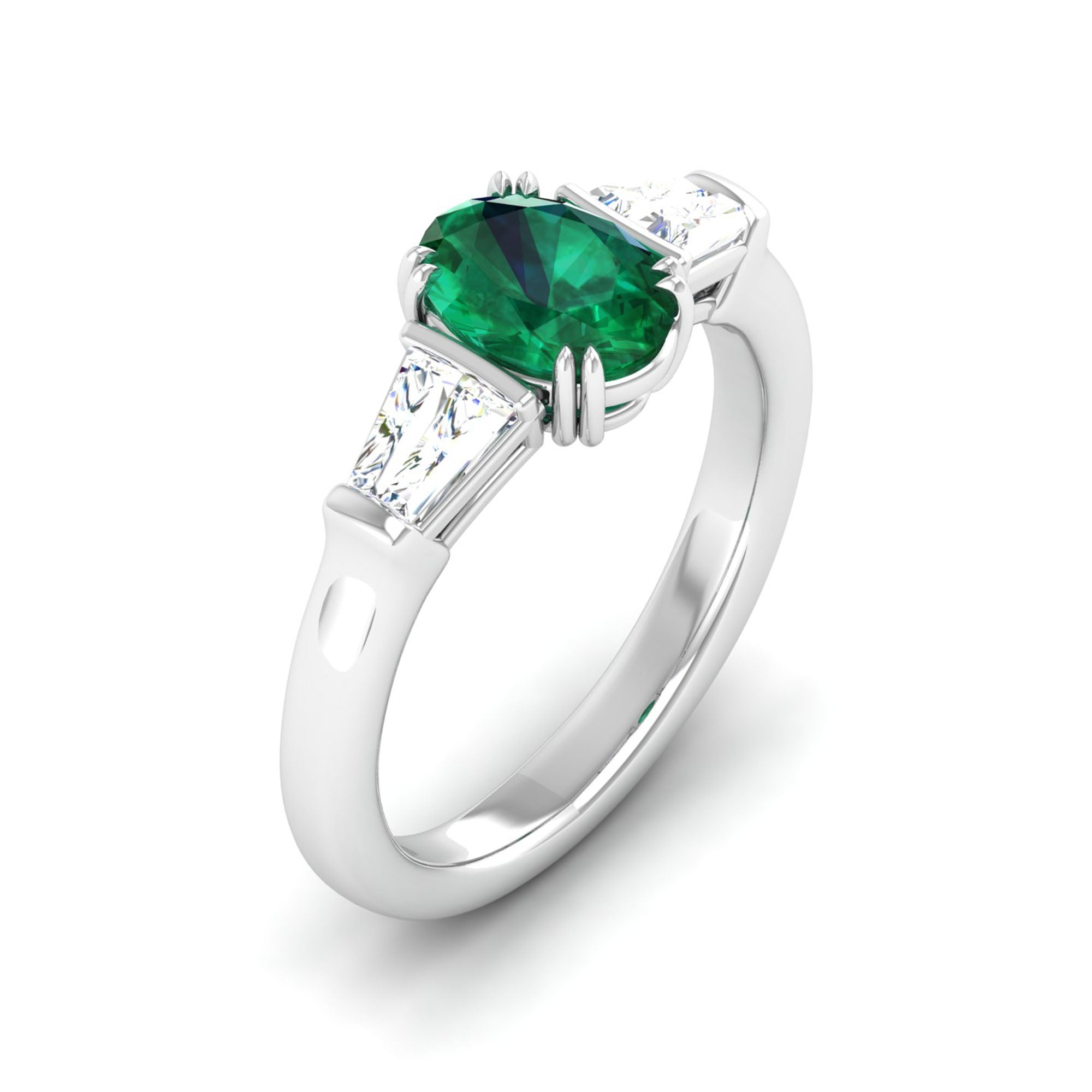This elegant ring features a stunning emerald gemstone, accented by tapered baguette diamonds. With a timeless design and superior craftsmanship, this ring is a perfect addition to any jewelry collection.