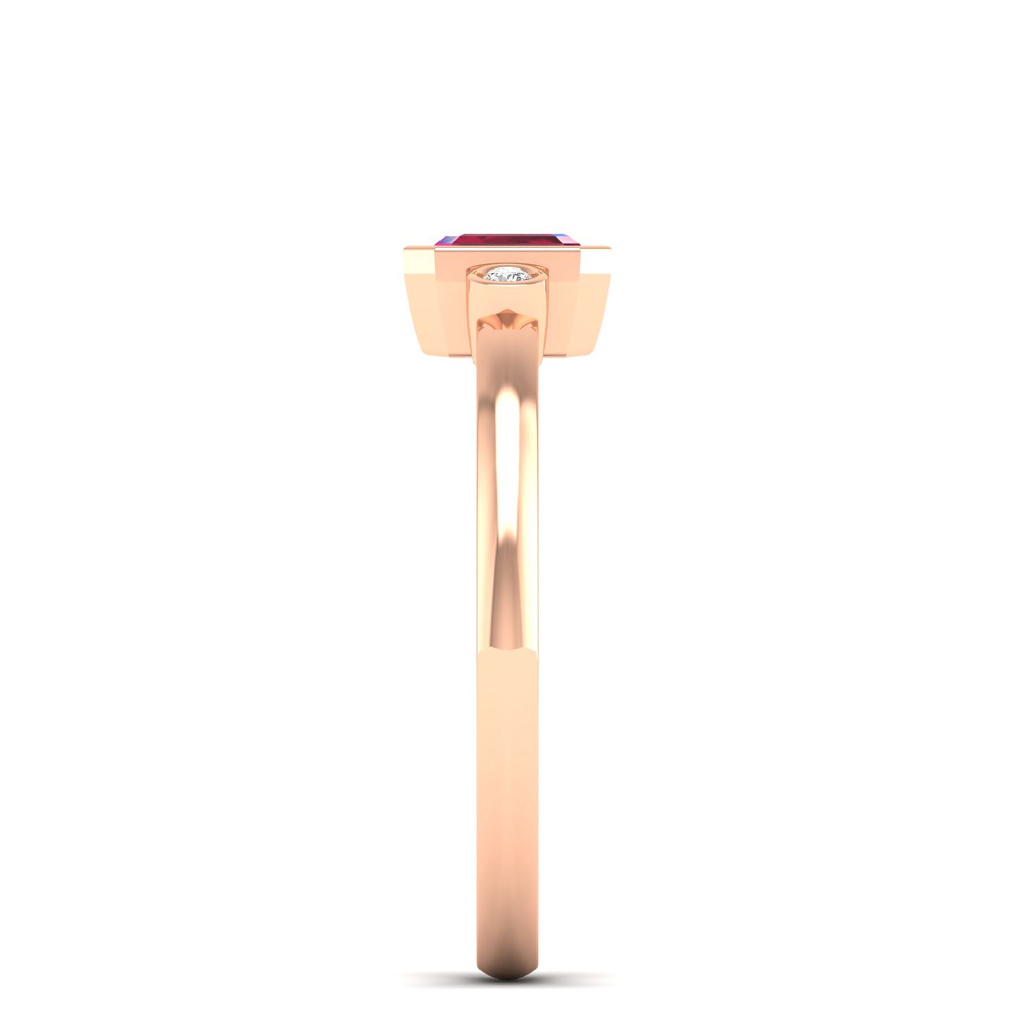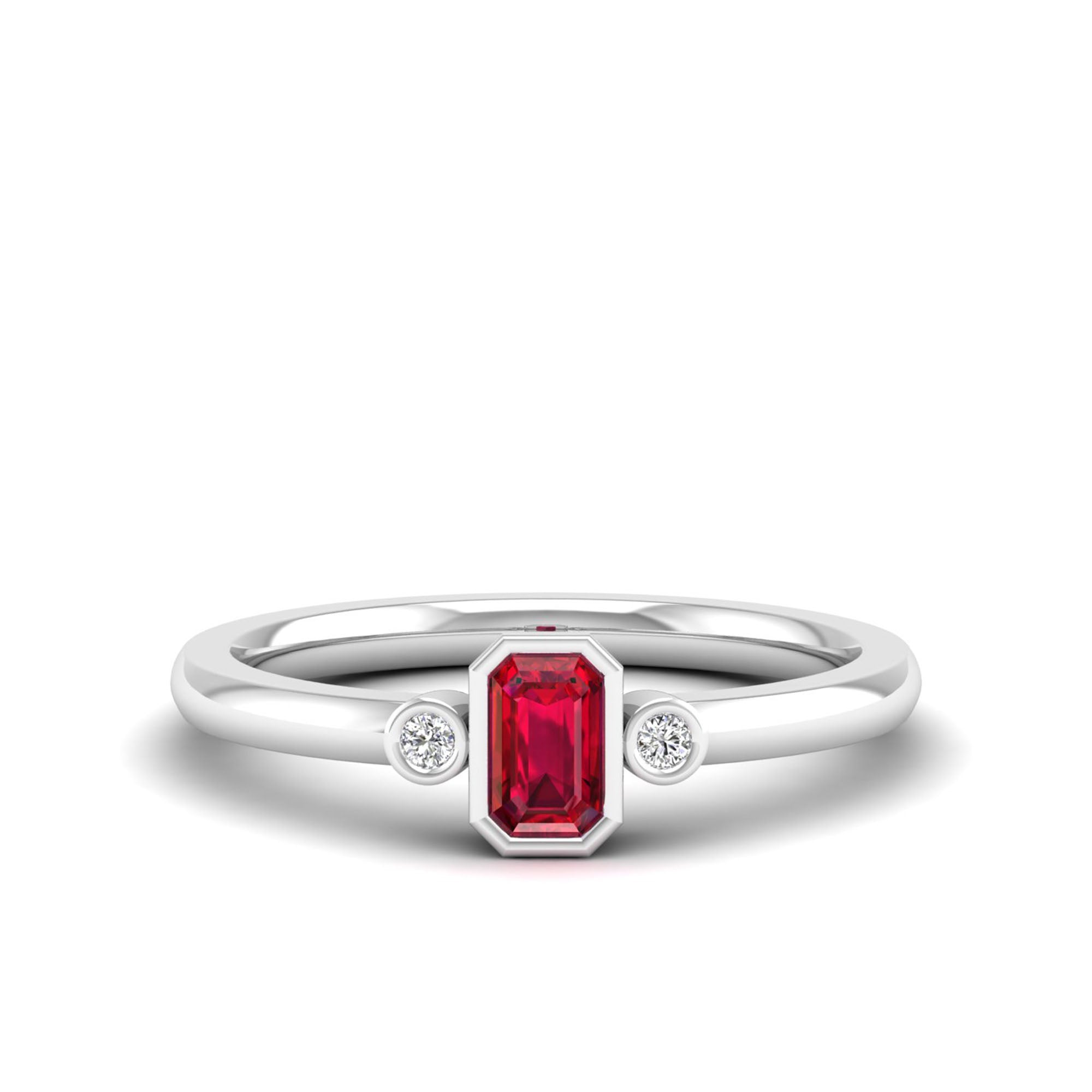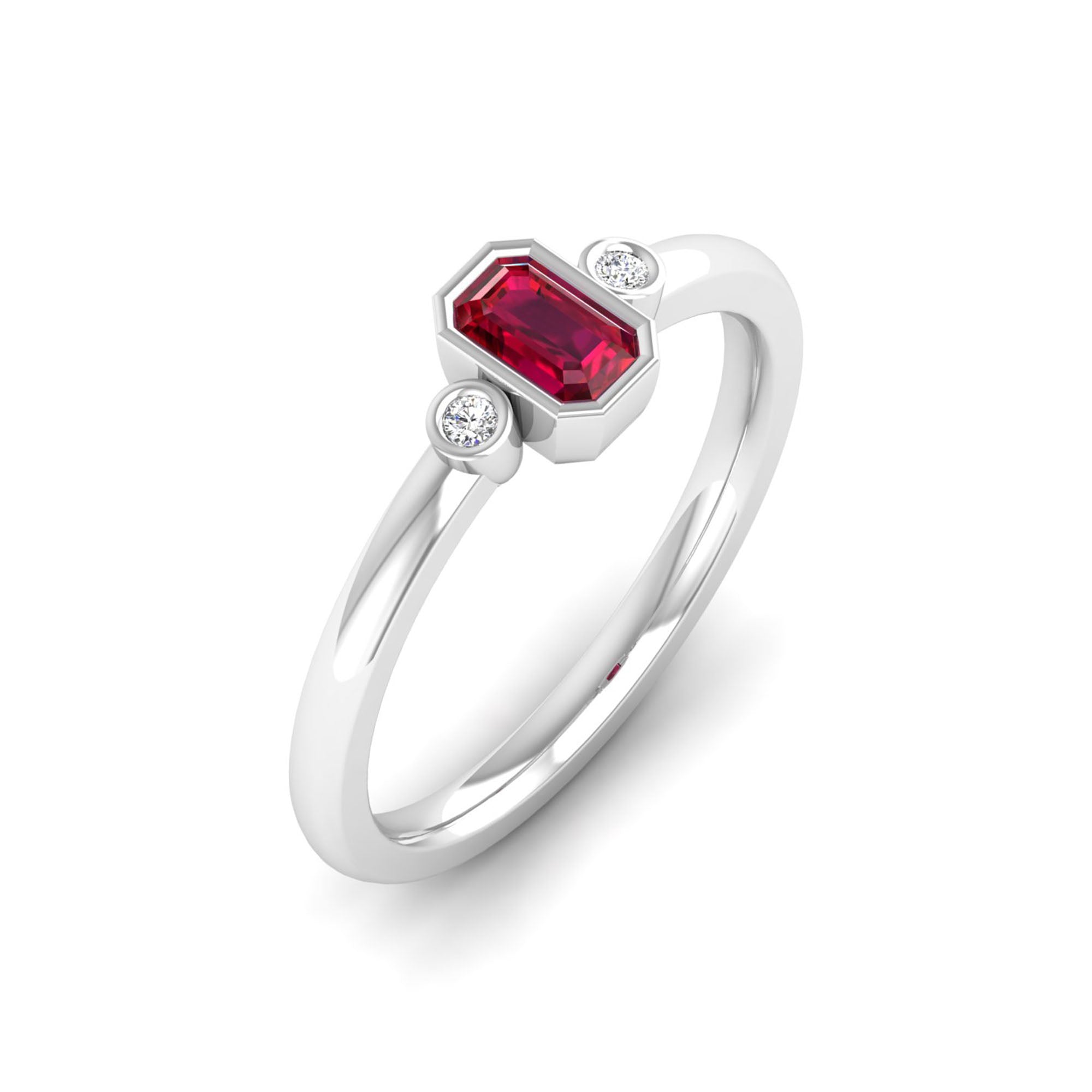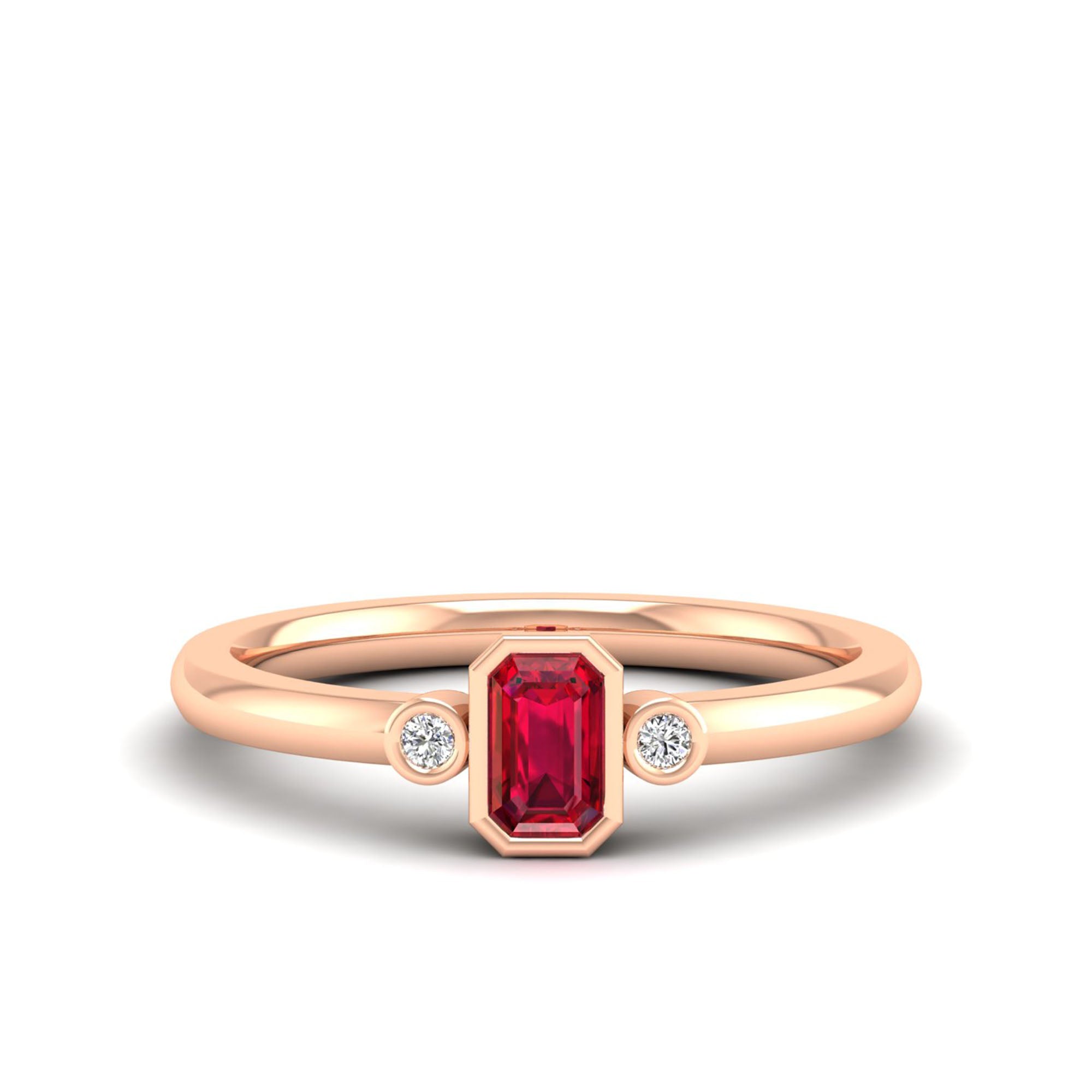 Emerald Cut Bezel-Set 3-Stone Art Deco Ruby and Diamond Band