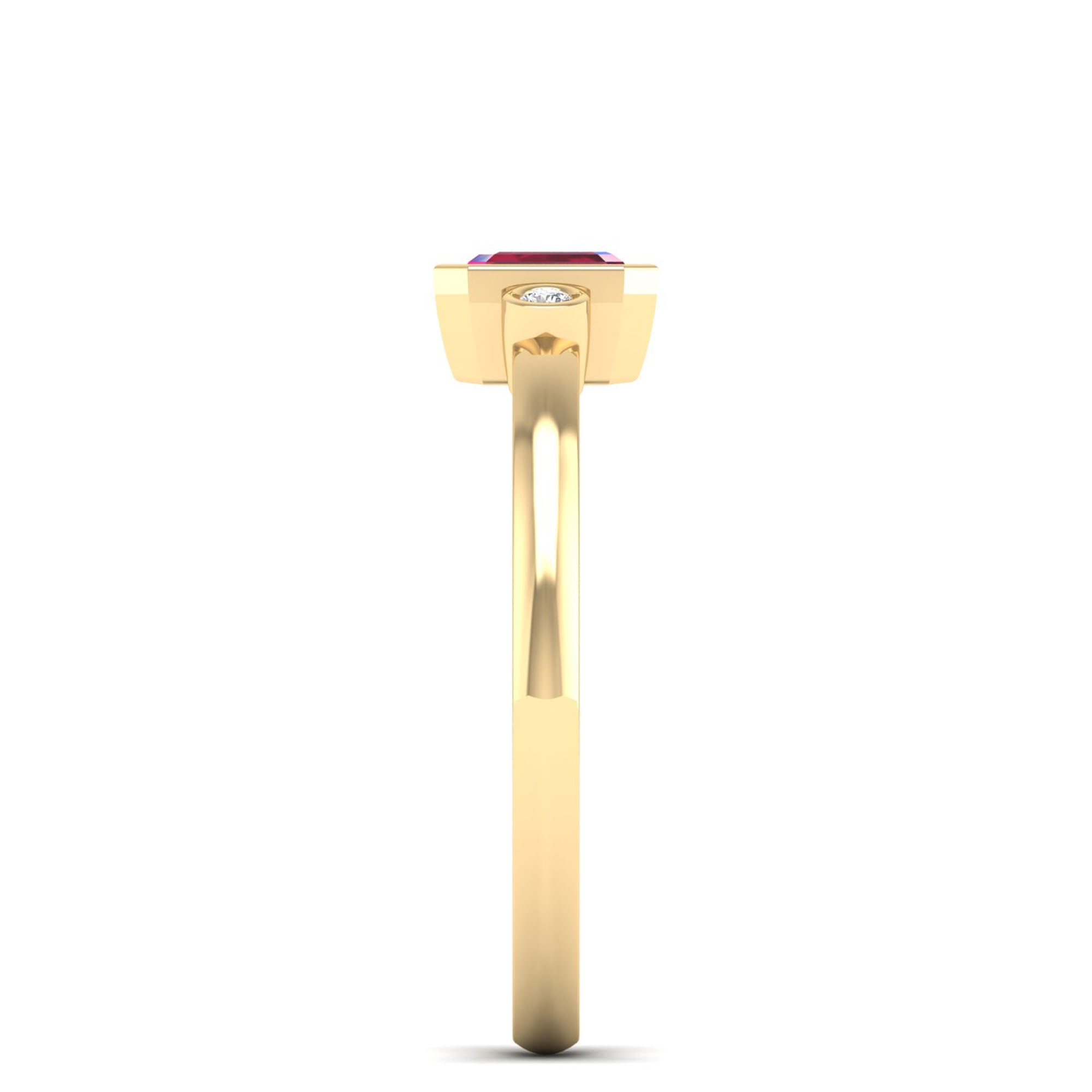 Expertly crafted with an emerald cut bezel-set design, this Art Deco ruby and diamond band adds a touch of vintage elegance to any look.