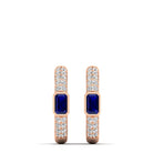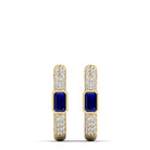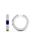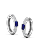 Emerald Cut Bezel-Set Sapphire and Double Row Diamond Hoops