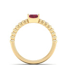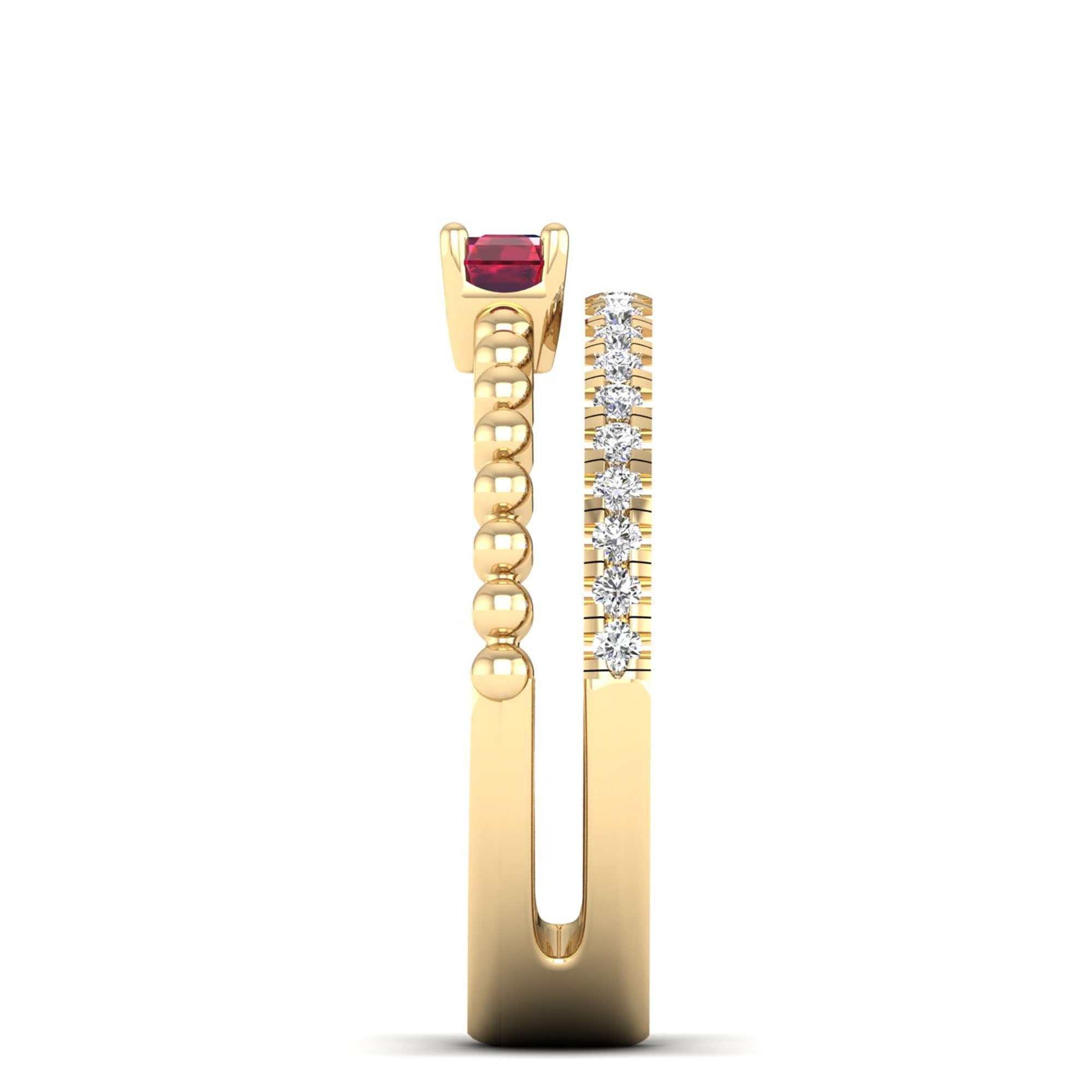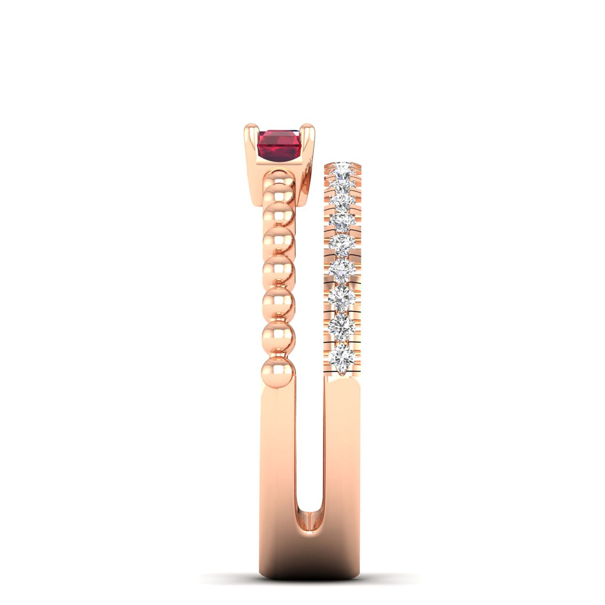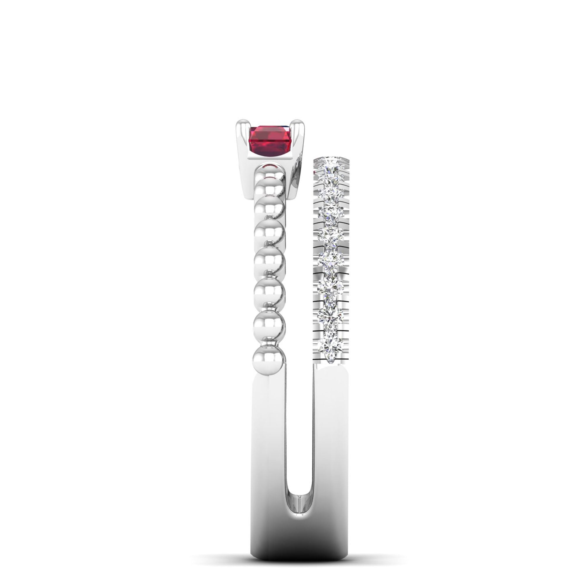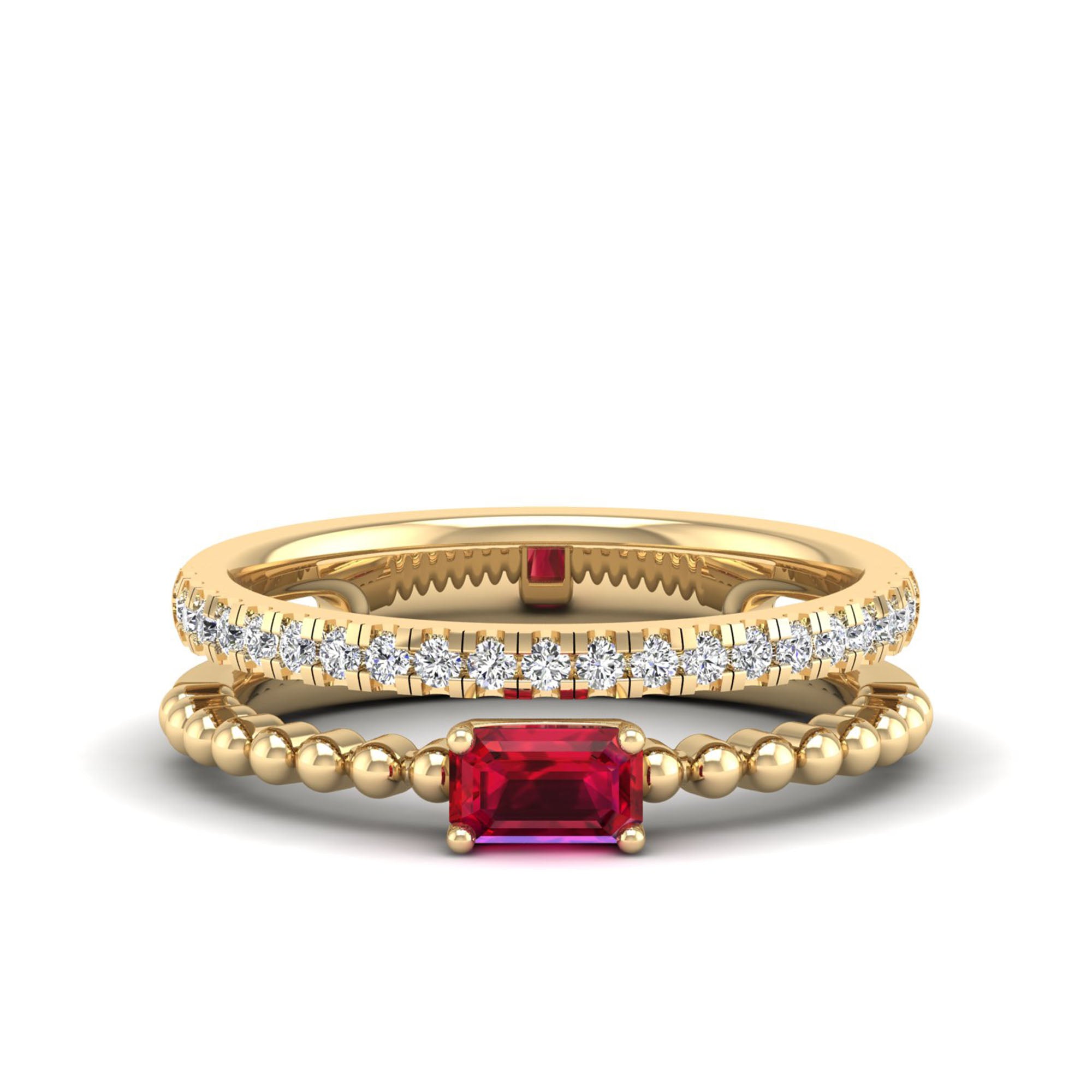 This stunning Emerald Cut East-West Ruby and Diamond Ring features a bold, unique design that is sure to make a statement. The brilliant emerald cut ruby is complemented by sparkling diamonds on either side, creating a timeless and elegant look.