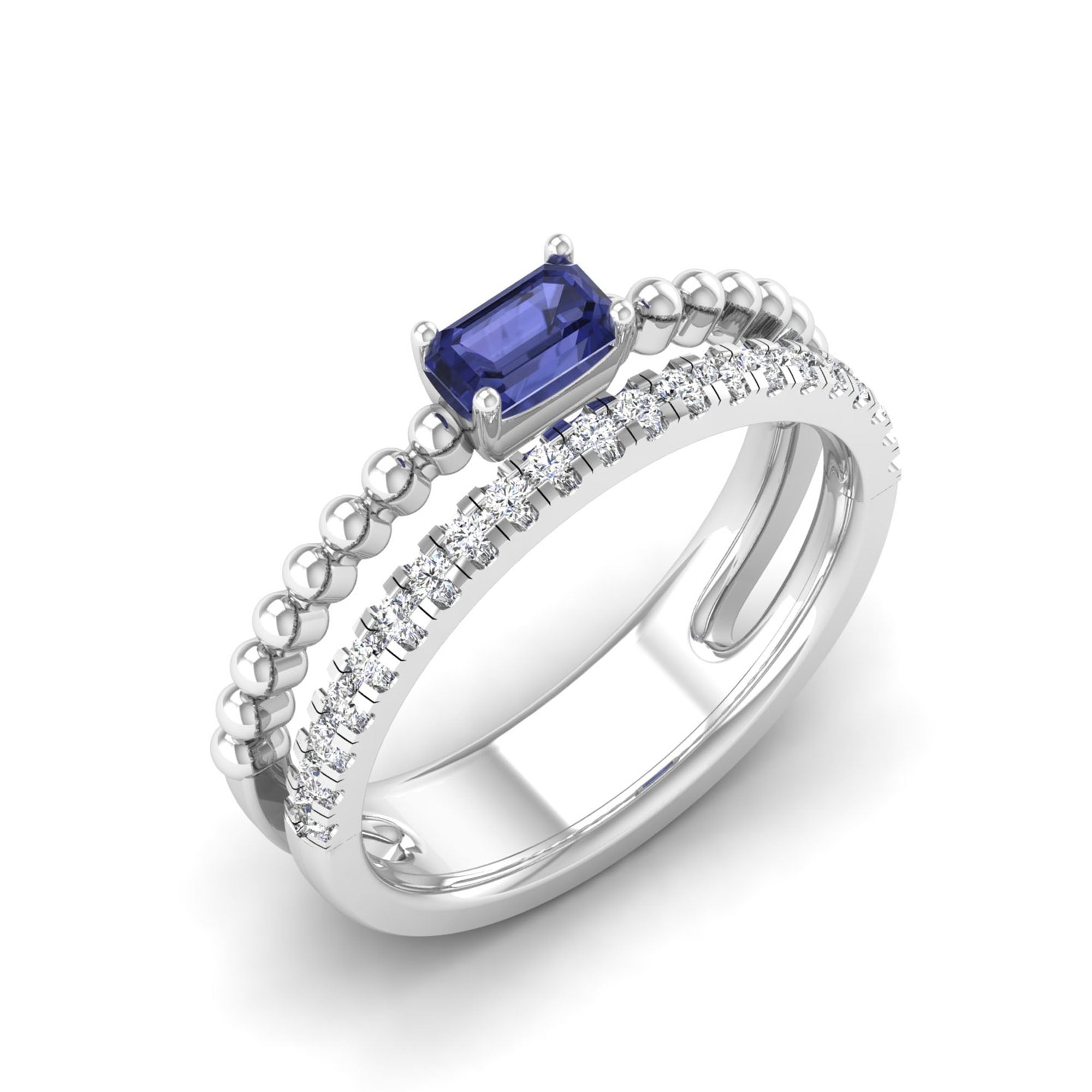 Emerald Cut East-West Tanzanite and Diamond Ring