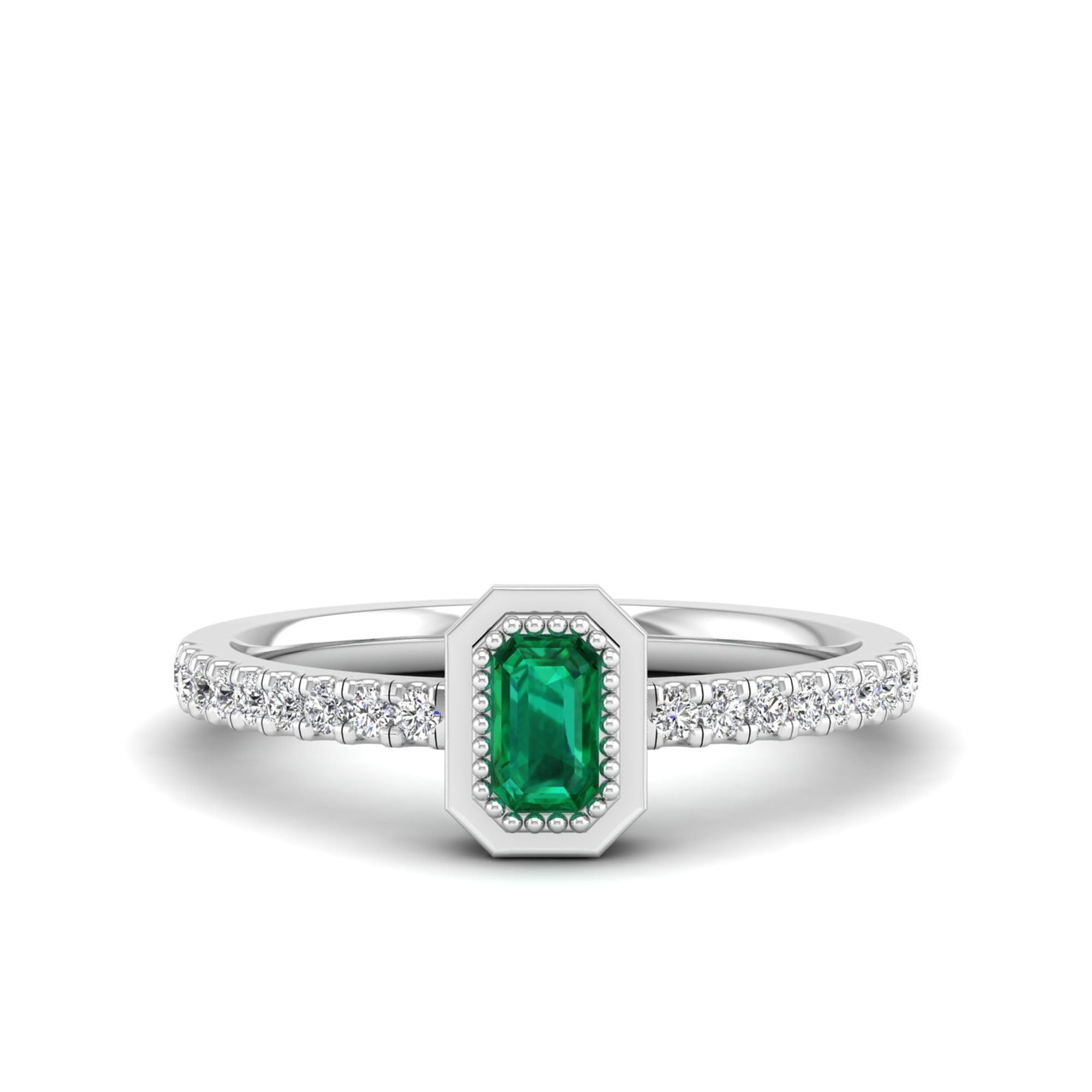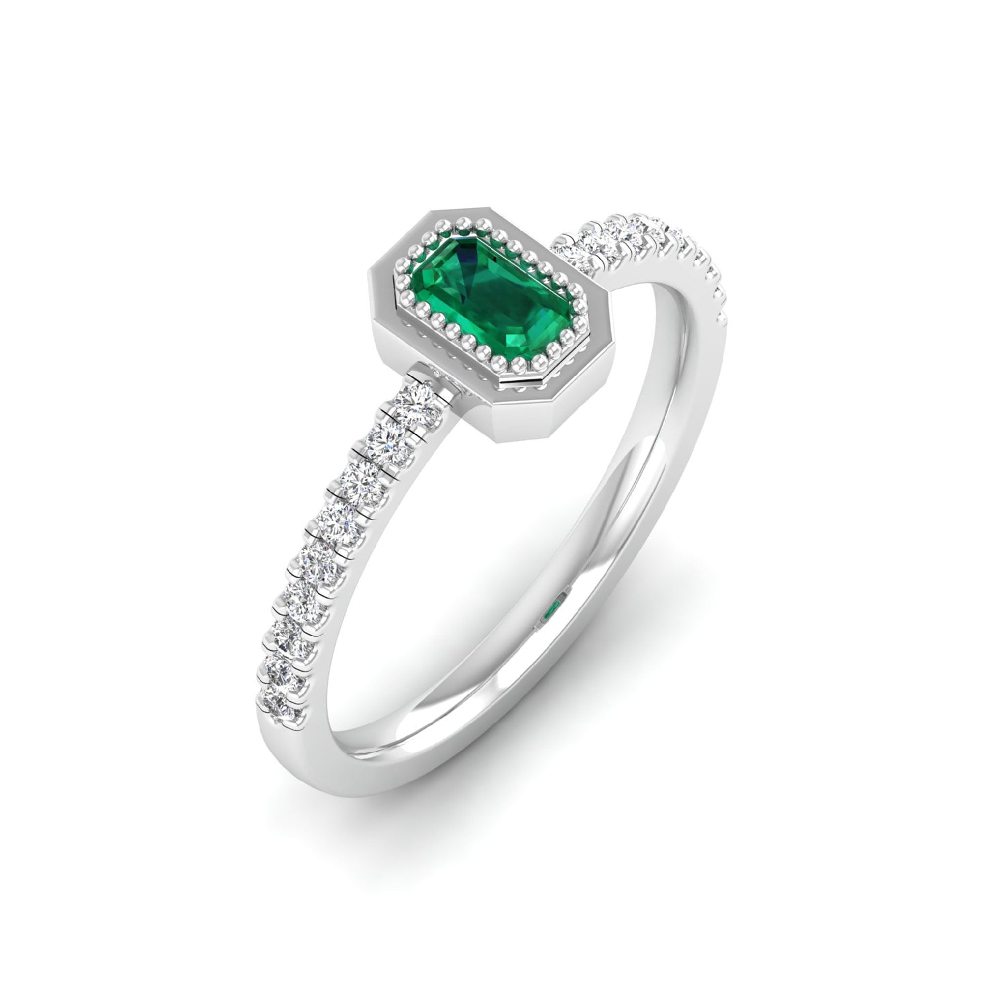 Expertly crafted, this Emerald Cut Emerald and Diamond Ring showcases the stunning beauty and elegance of the emerald stone.