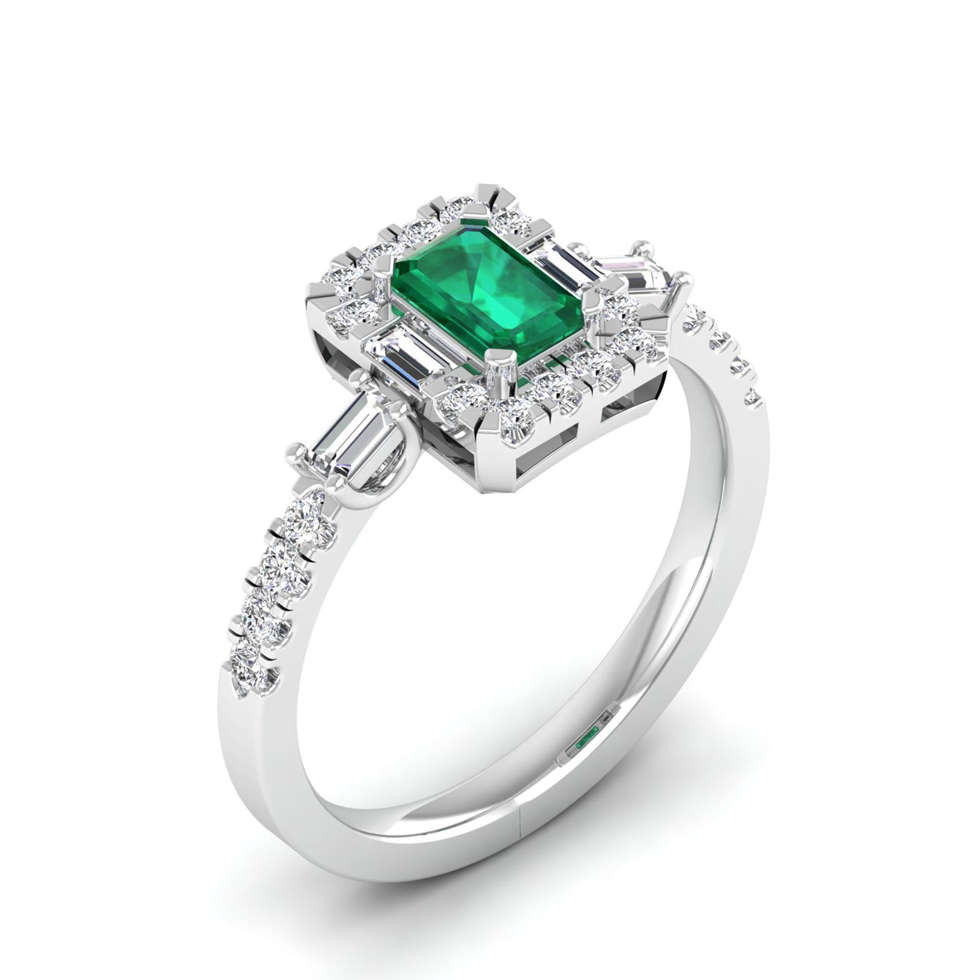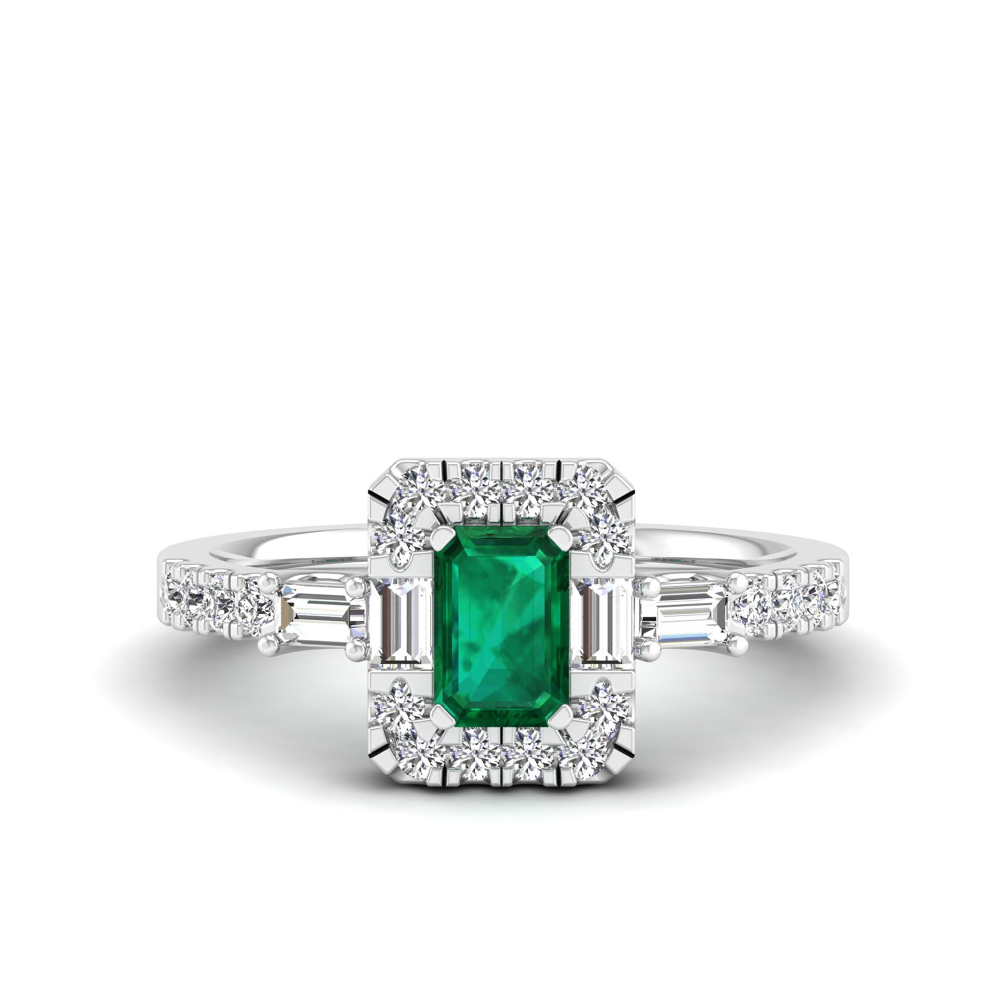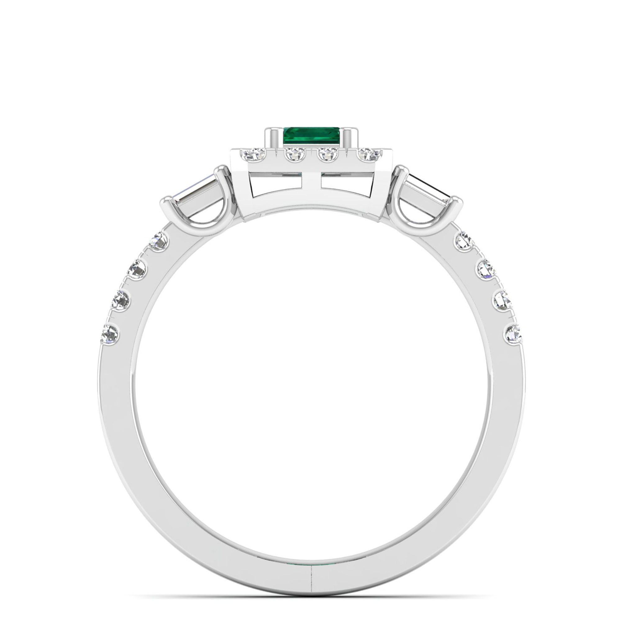 Emerald Cut Emerald with Round and Baguette Diamond Ring