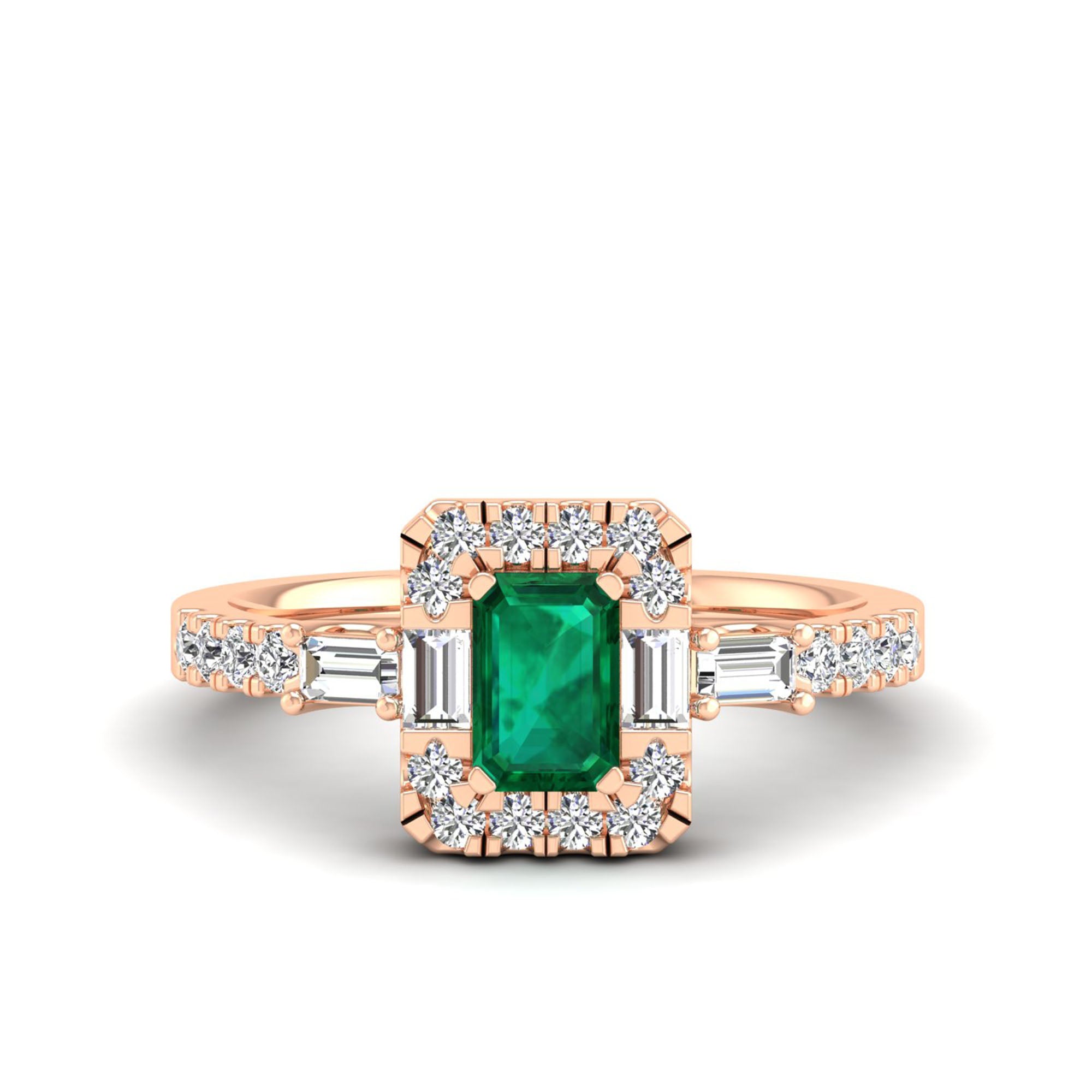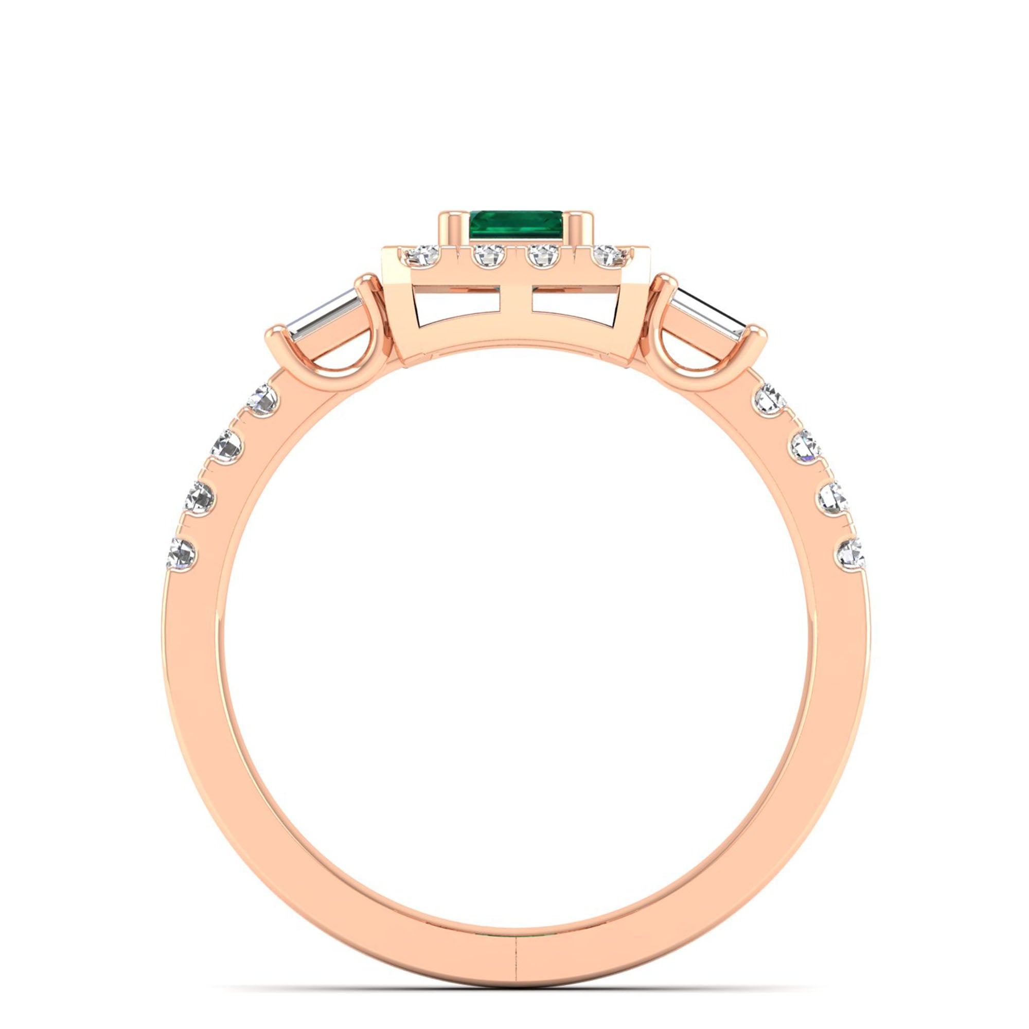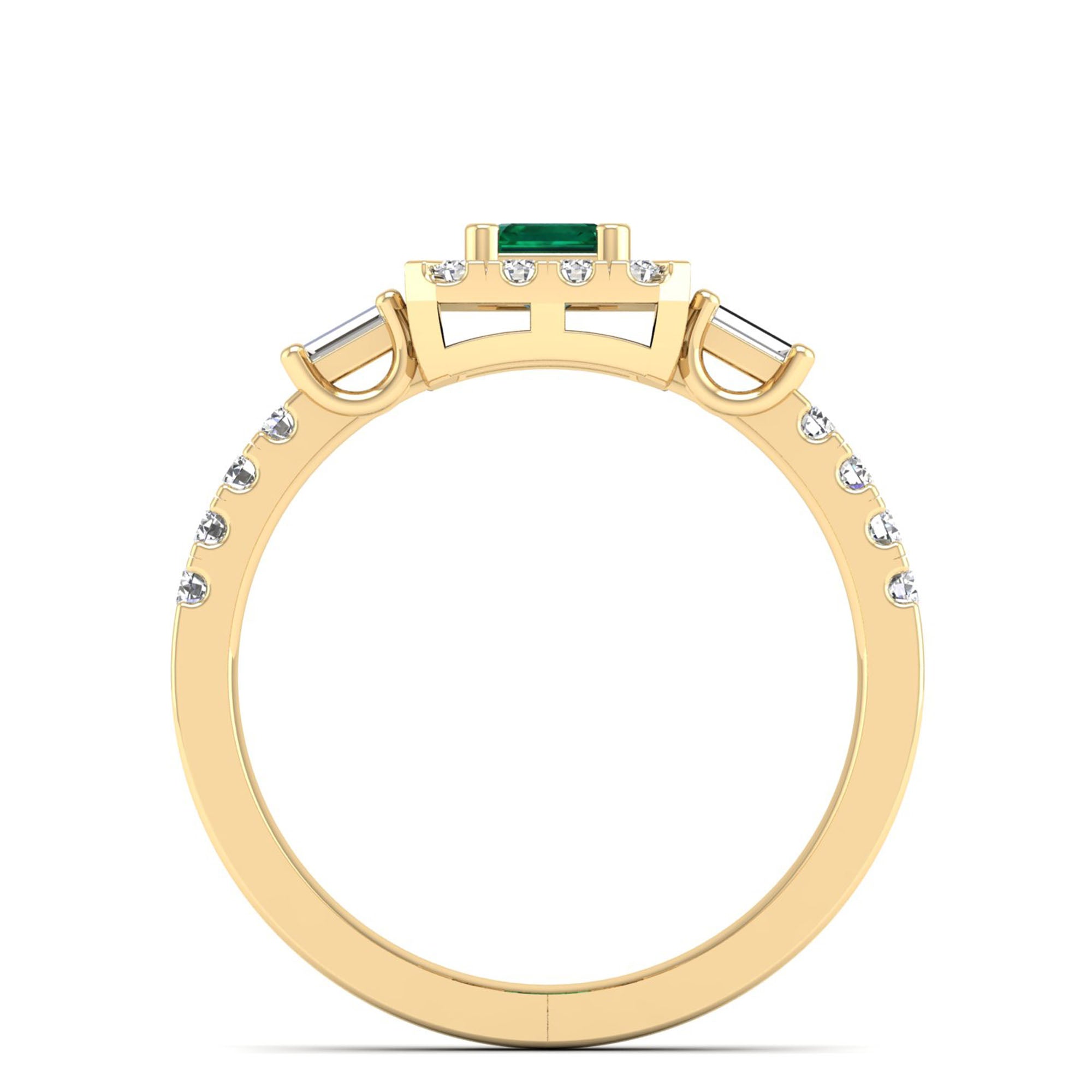 Emerald Cut Emerald with Round and Baguette Diamond Ring