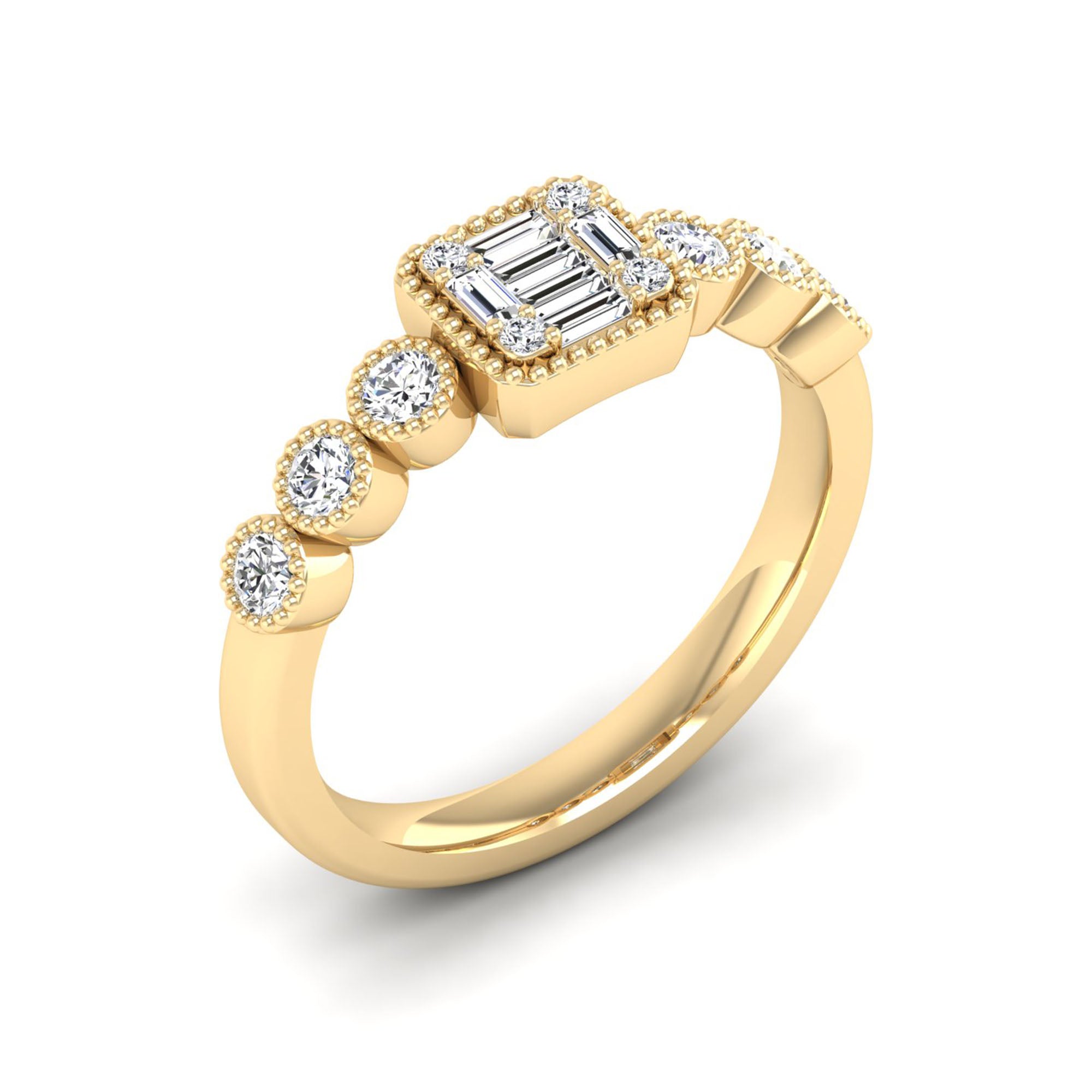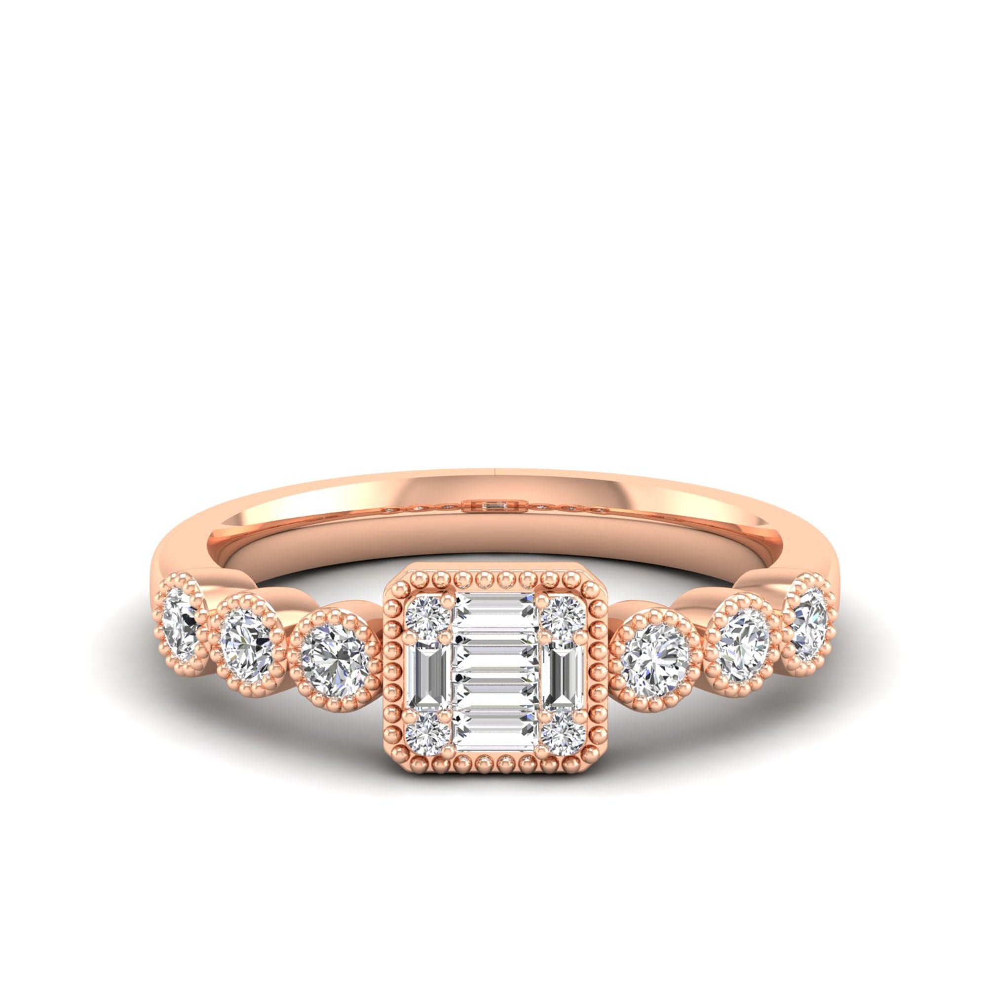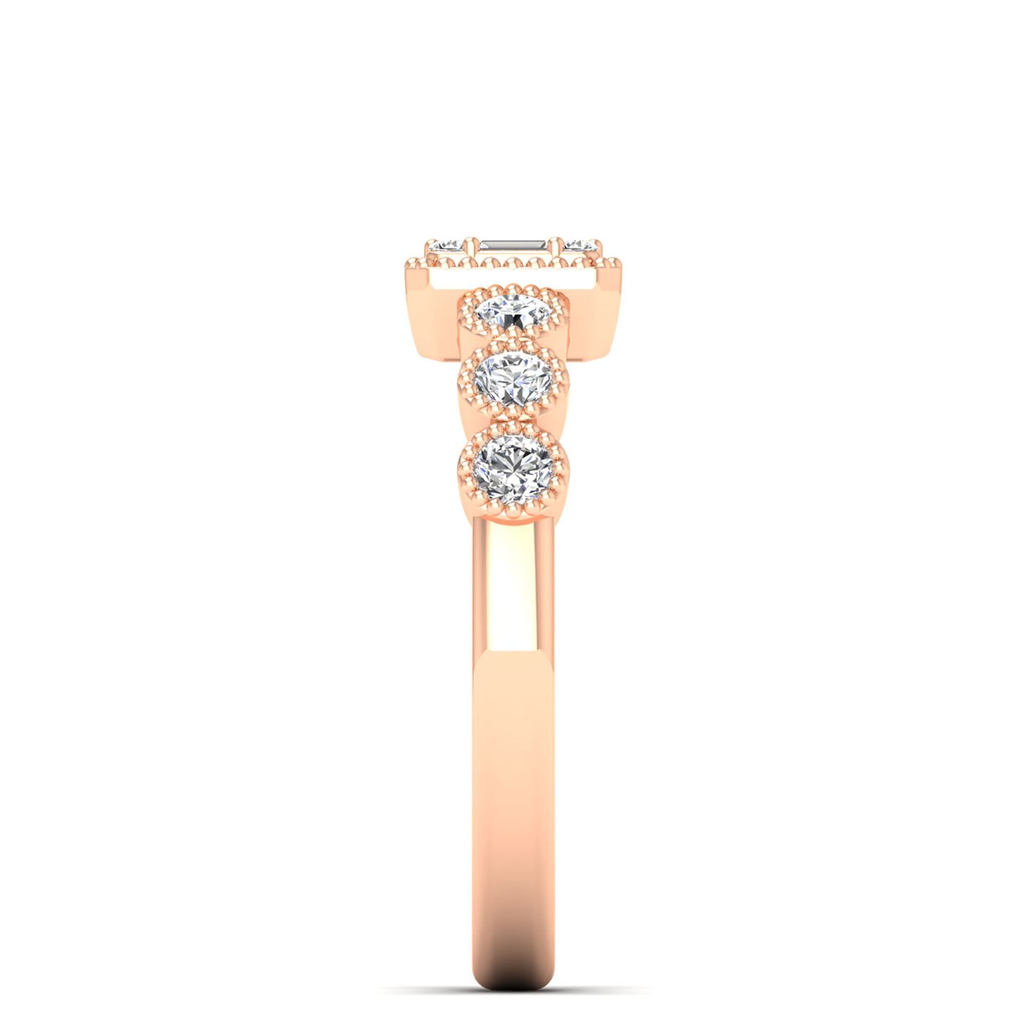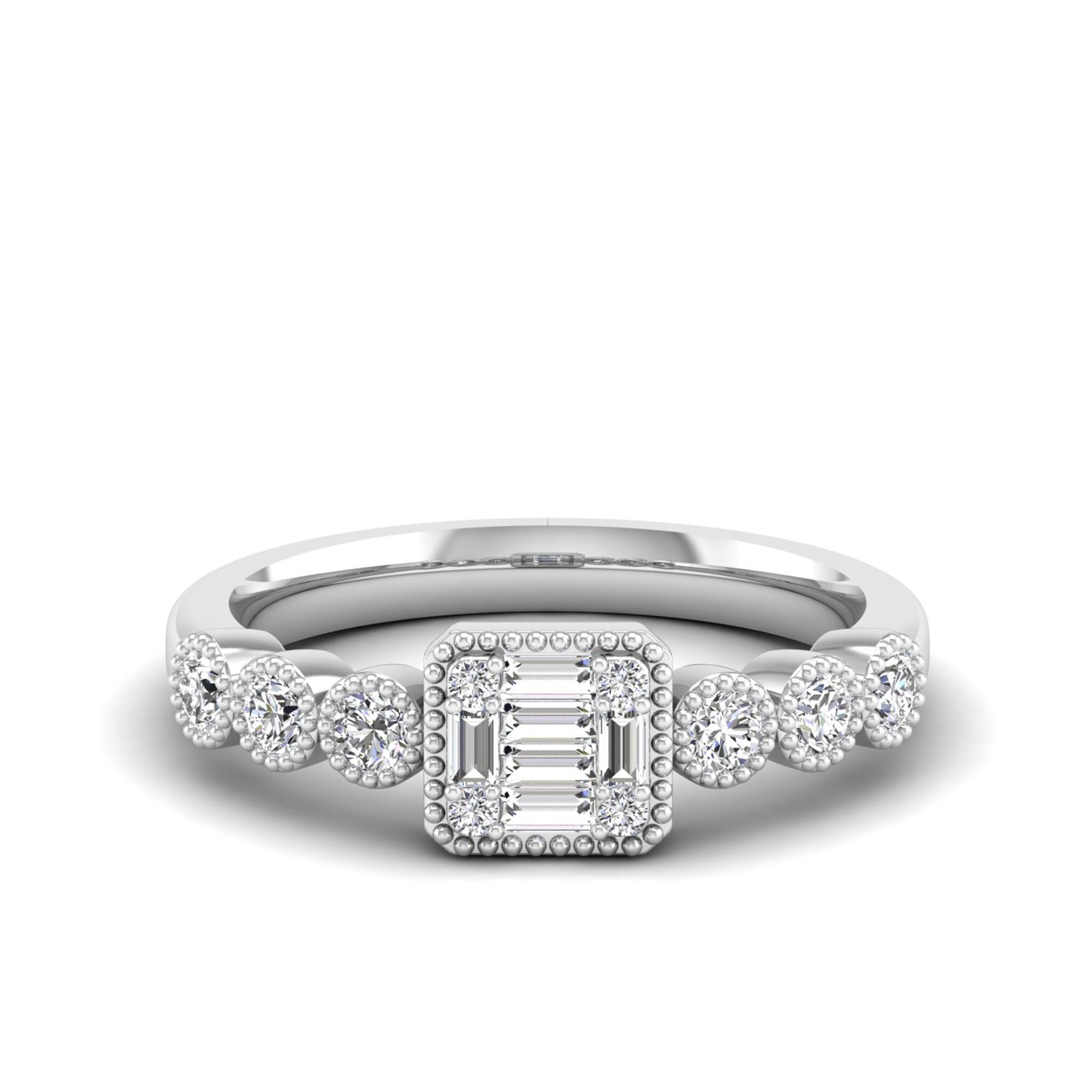 This exquisite Emerald Cut Halo Round and Baguette Diamond Ring is expertly crafted to showcase the sparkling brilliance of its diamonds. The center emerald cut diamond is surrounded by a halo of round diamonds, while baguette diamonds adorn the band.