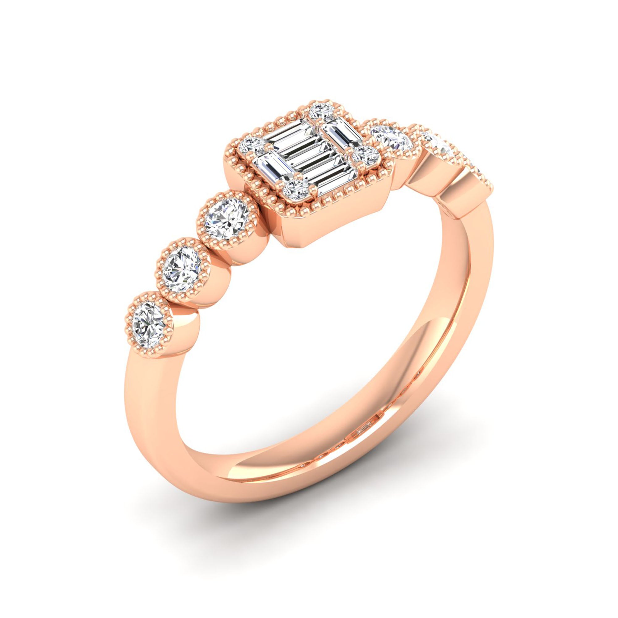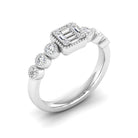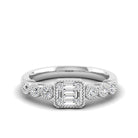 Emerald Cut Halo Round and Baguette Diamond Ring