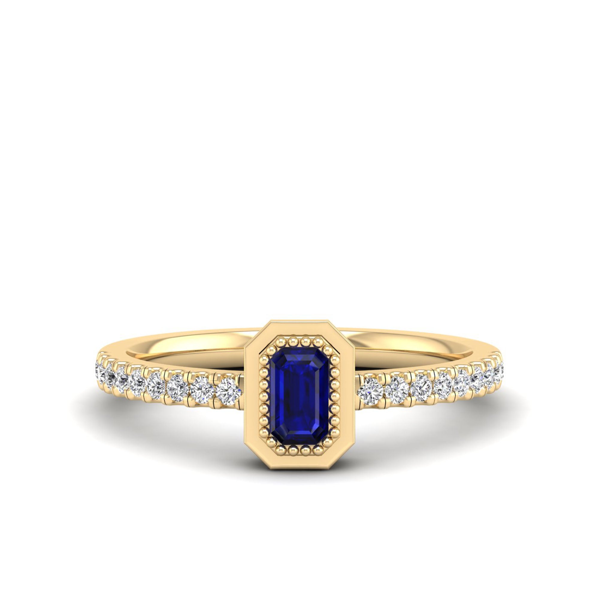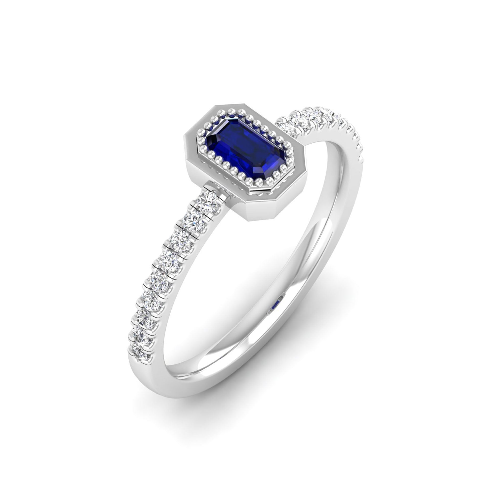 Expertly crafted, this Emerald Cut Sapphire and Diamond Ring showcases the stunning beauty and elegance of the sapphire stone.