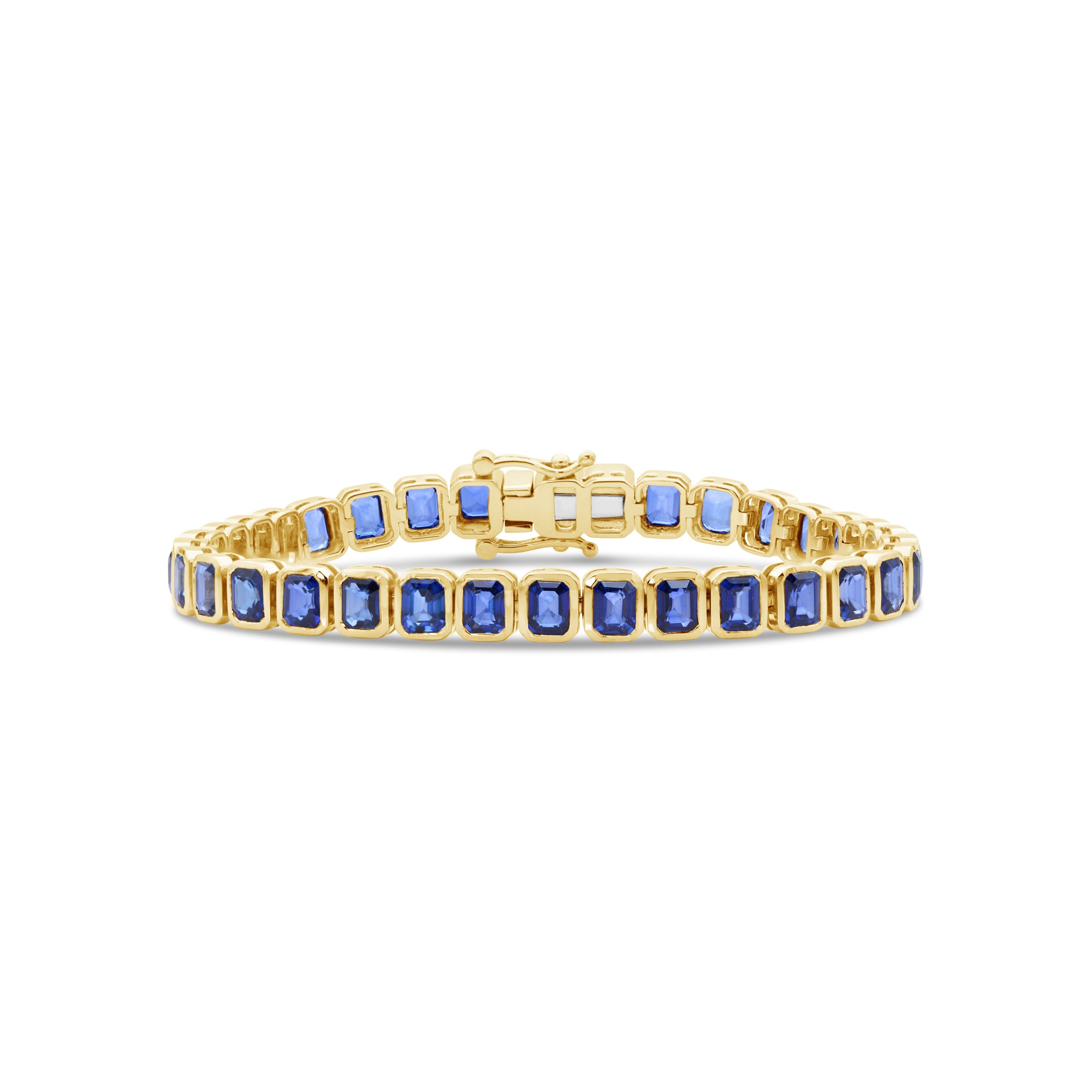 Expertly crafted with shimmering emerald cut sapphires, this tennis bracelet is a timeless and elegant addition to any jewelry collection. A classic design with modern sophistication, this bracelet is sure to elevate any outfit for any occasion.