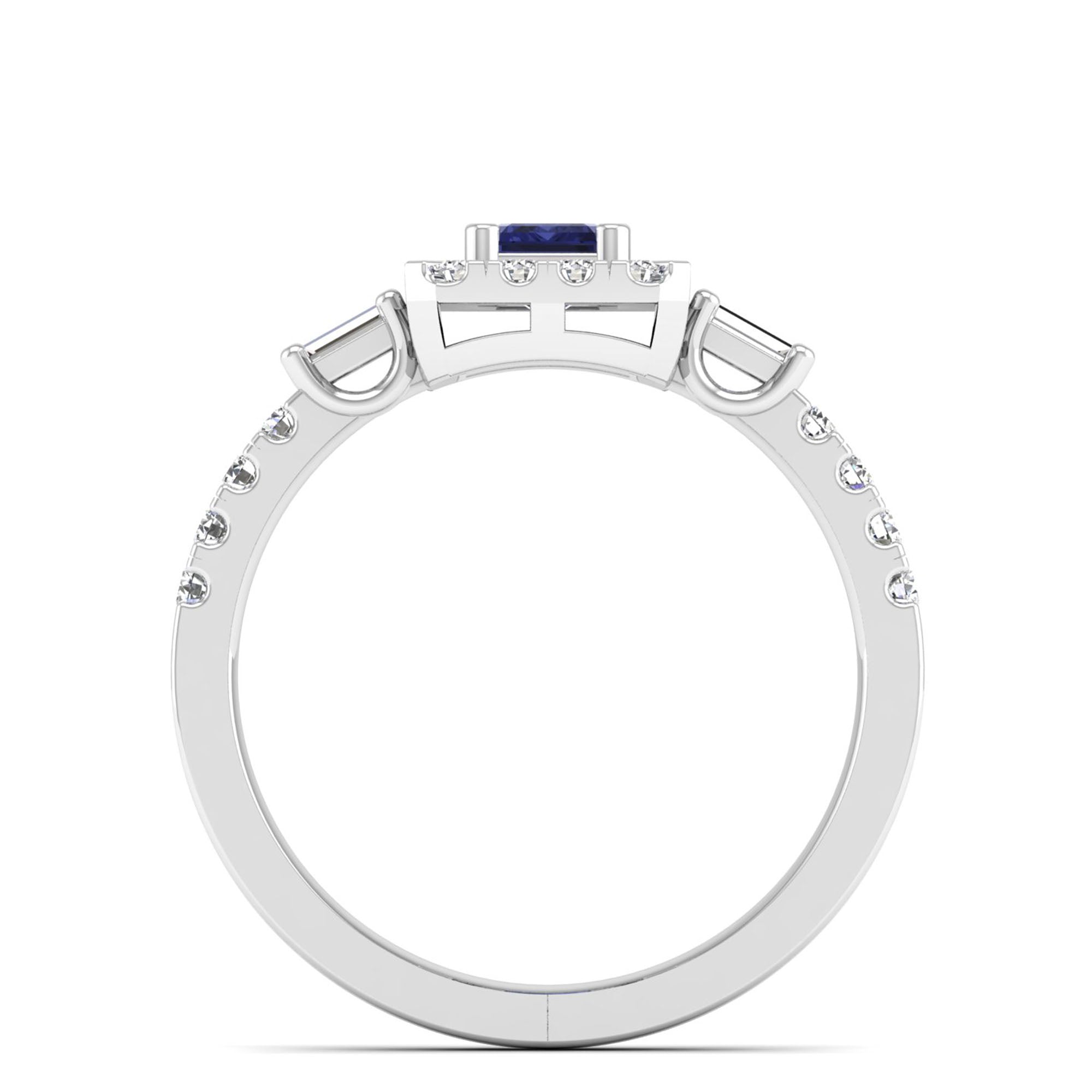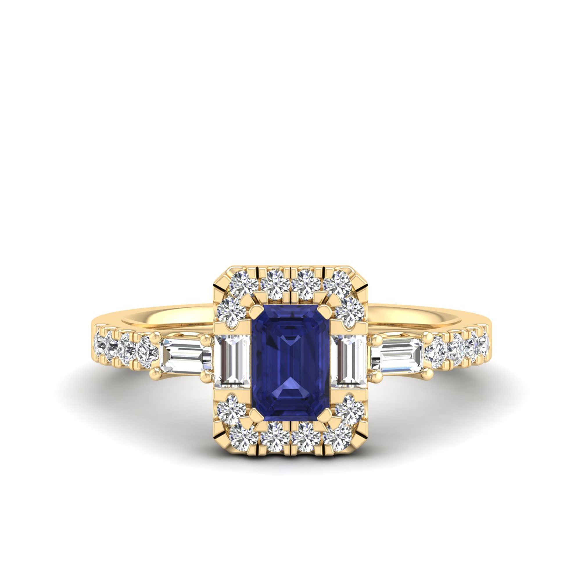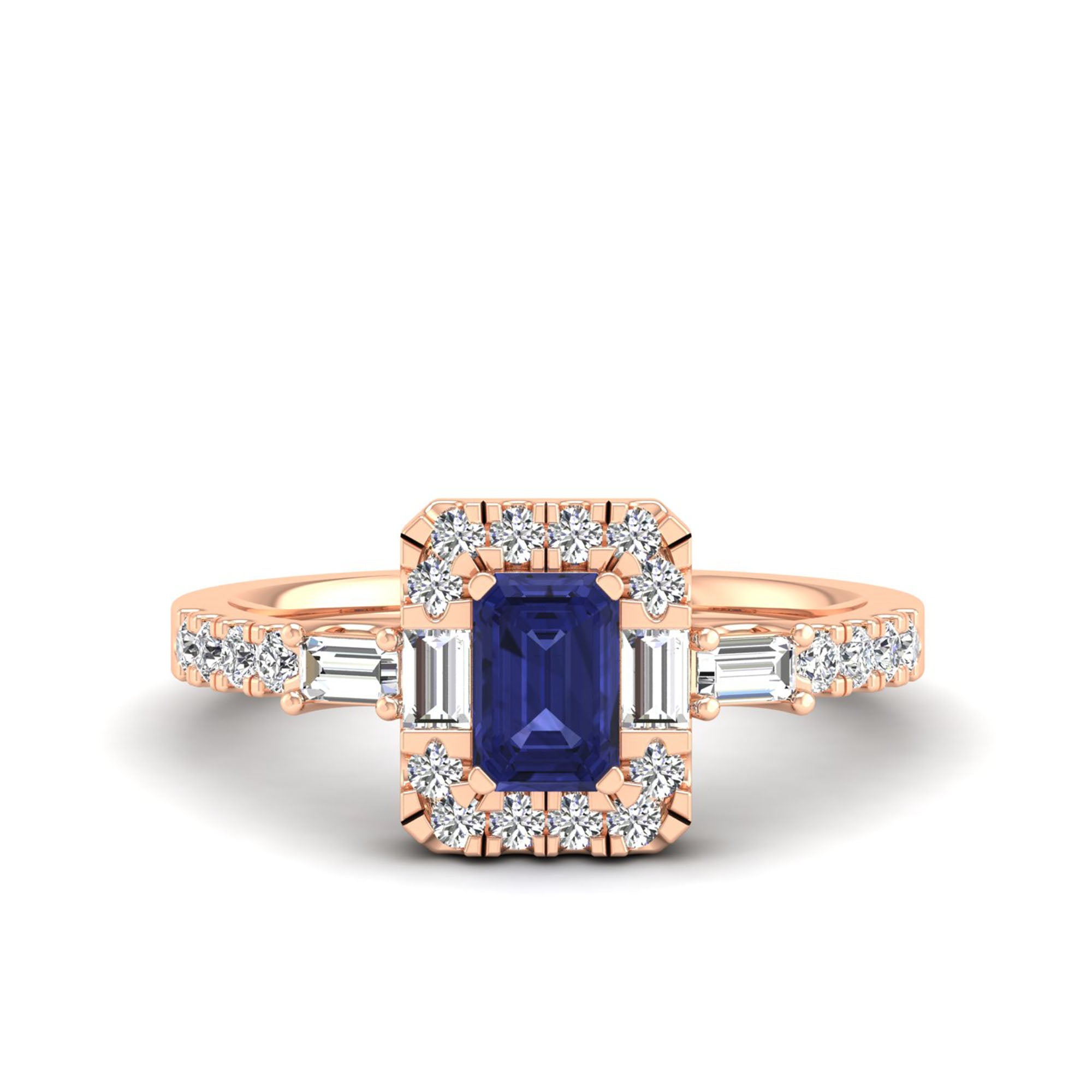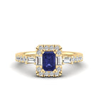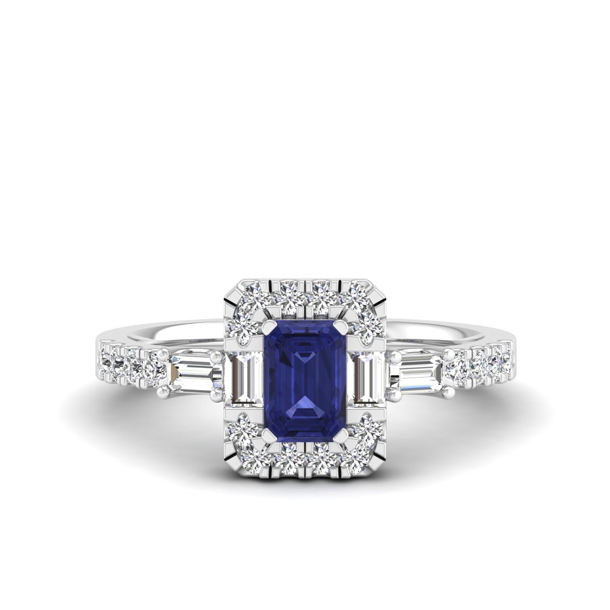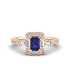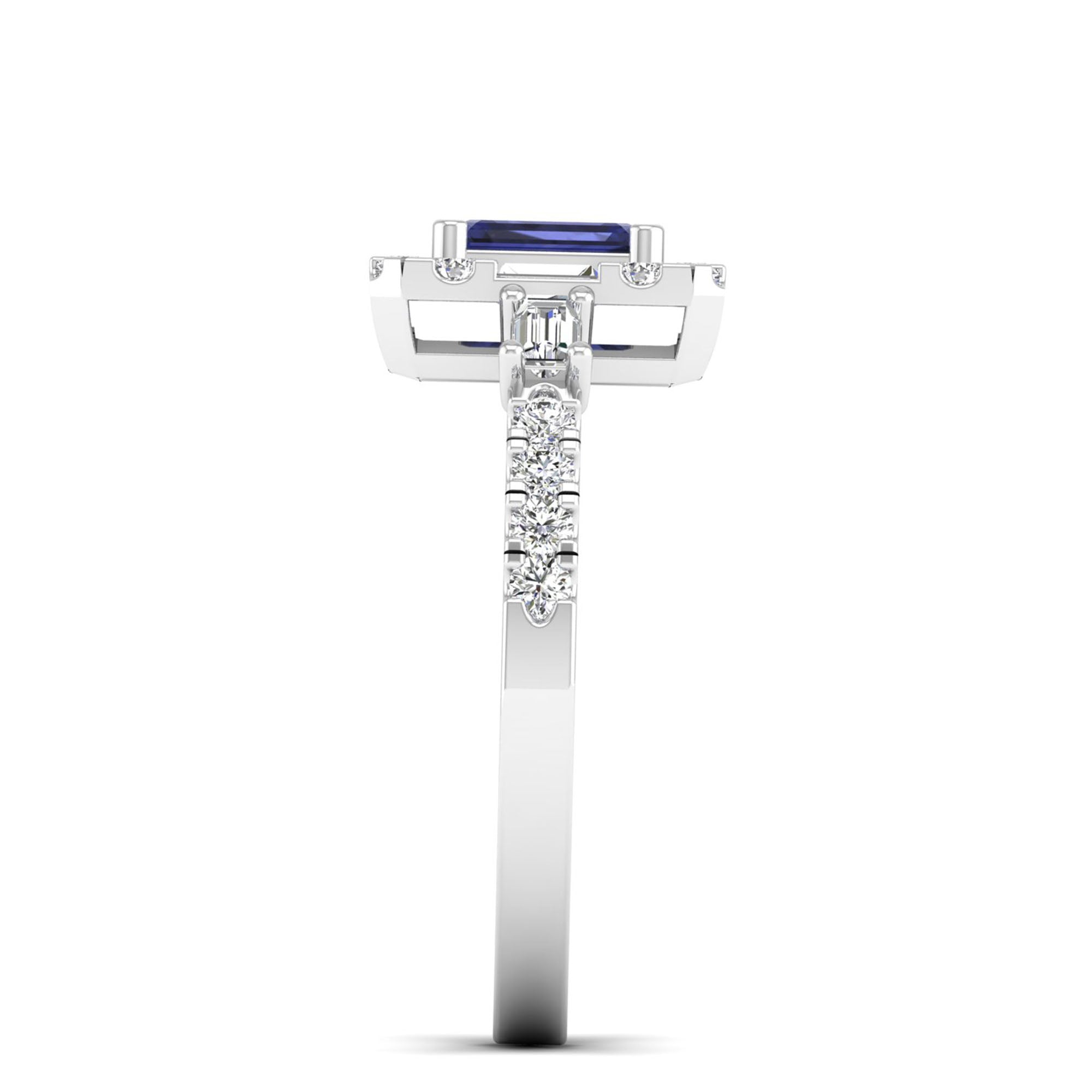 Emerald Cut Tanzanite with Round and Baguette Diamond Ring