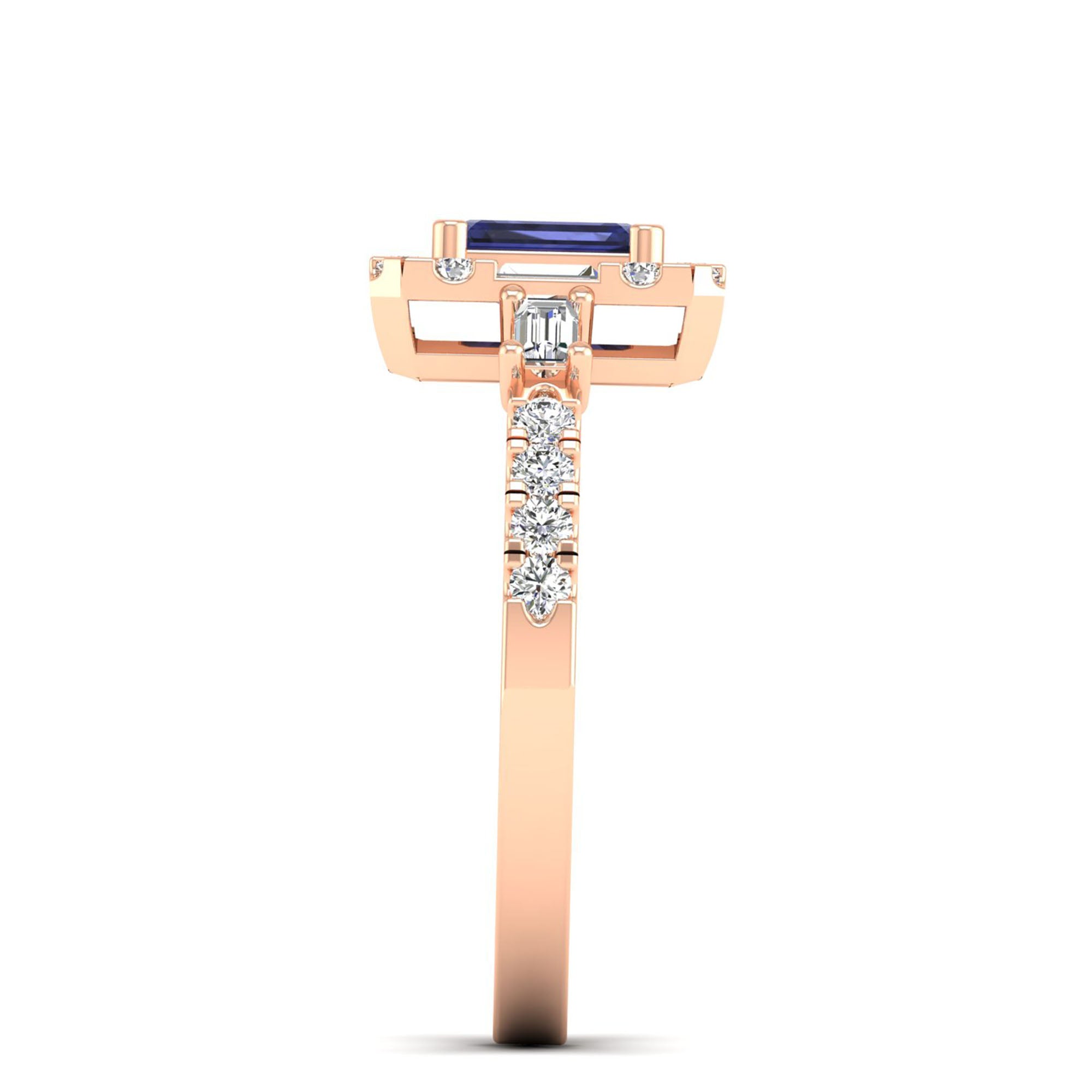 Discover the stunning beauty of this Emerald Cut Tanzanite ring, adorned with intricate Round and Baguette Diamonds. Made with the highest quality craftsmanship and materials, this ring exudes elegance and sophistication.