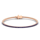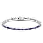 Expertly crafted with four prongs, this sapphire tennis bracelet showcases the stunning beauty of the gemstones while ensuring secure and comfortable wear. Made with top-quality materials, this bracelet is a timeless and elegant choice for any occasion.