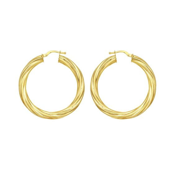 14KT Yellow Gold Polished Twisted Round Hoop Earring with Hinged Clasp