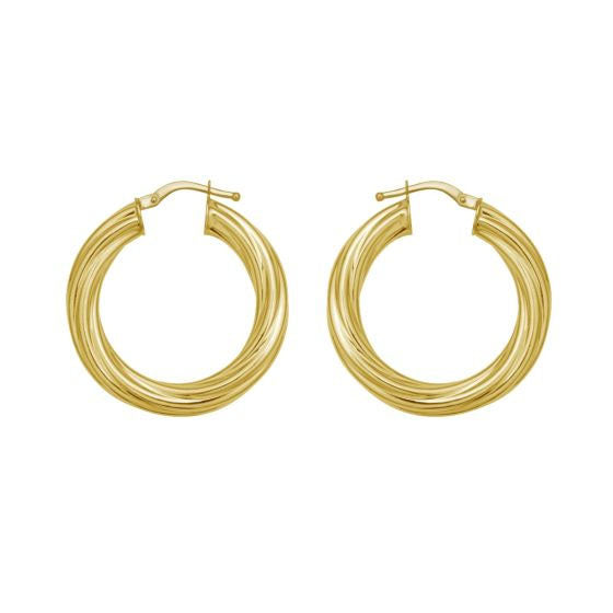 14KT Yellow Gold Polished Twisted Round Hoop Earring with Hinged Clasp