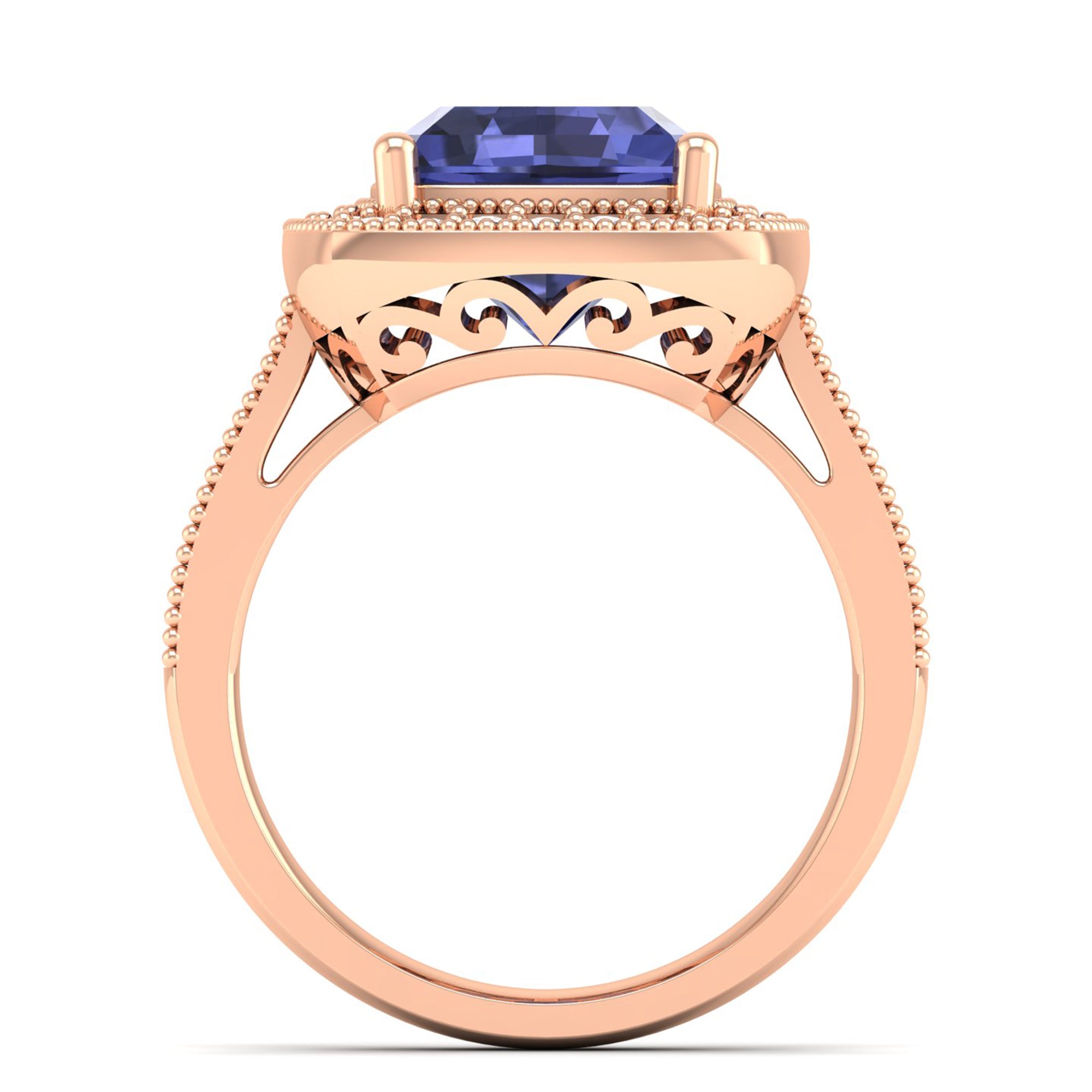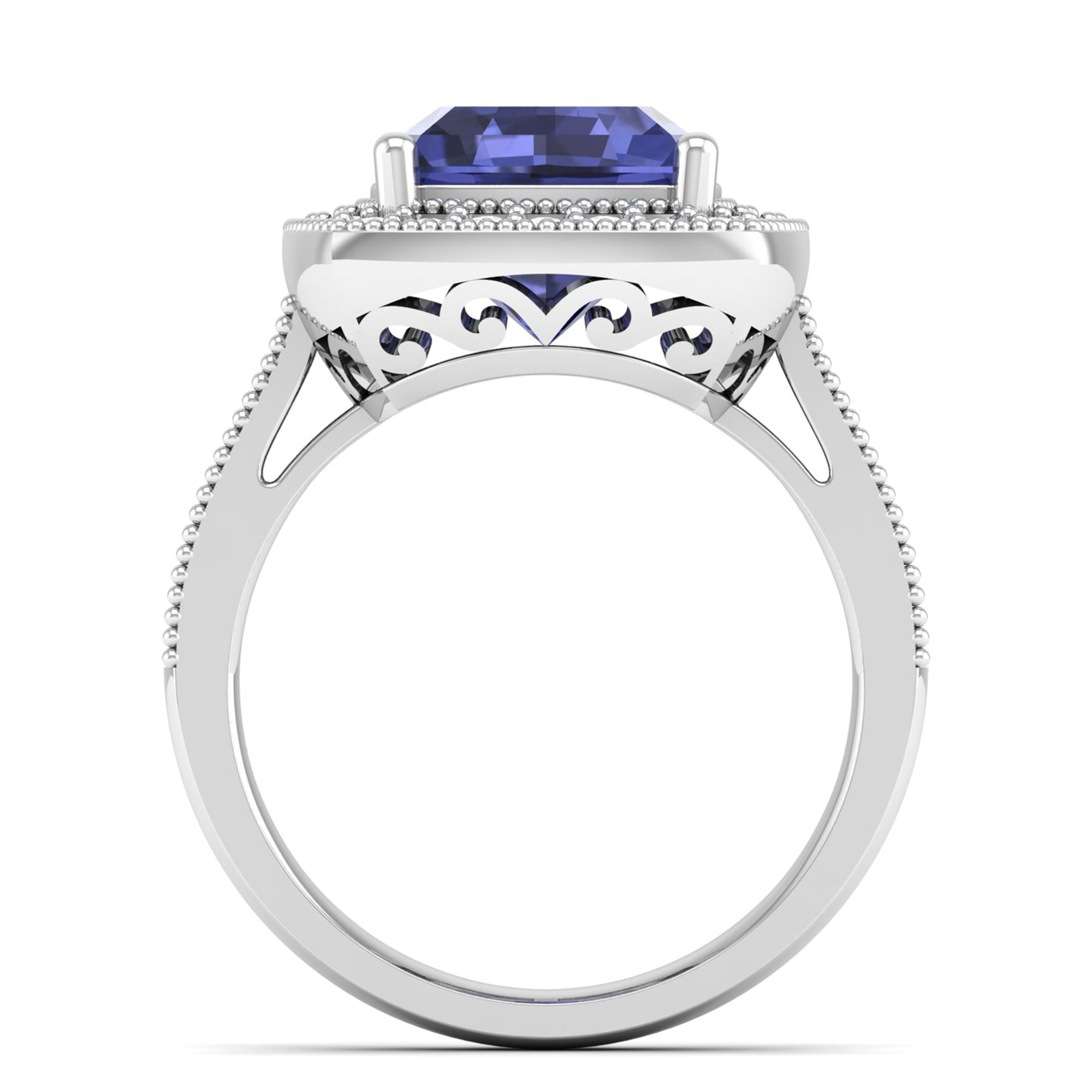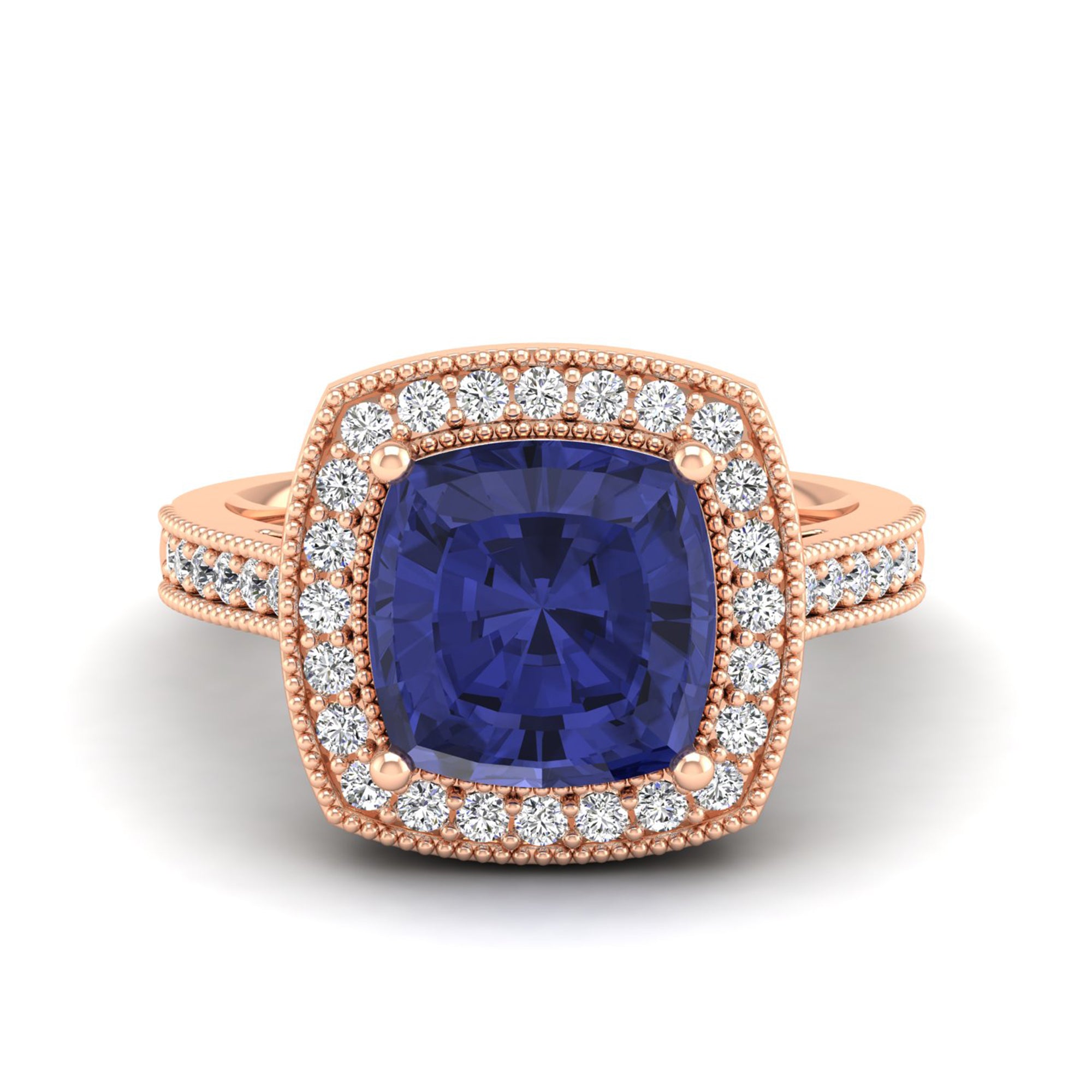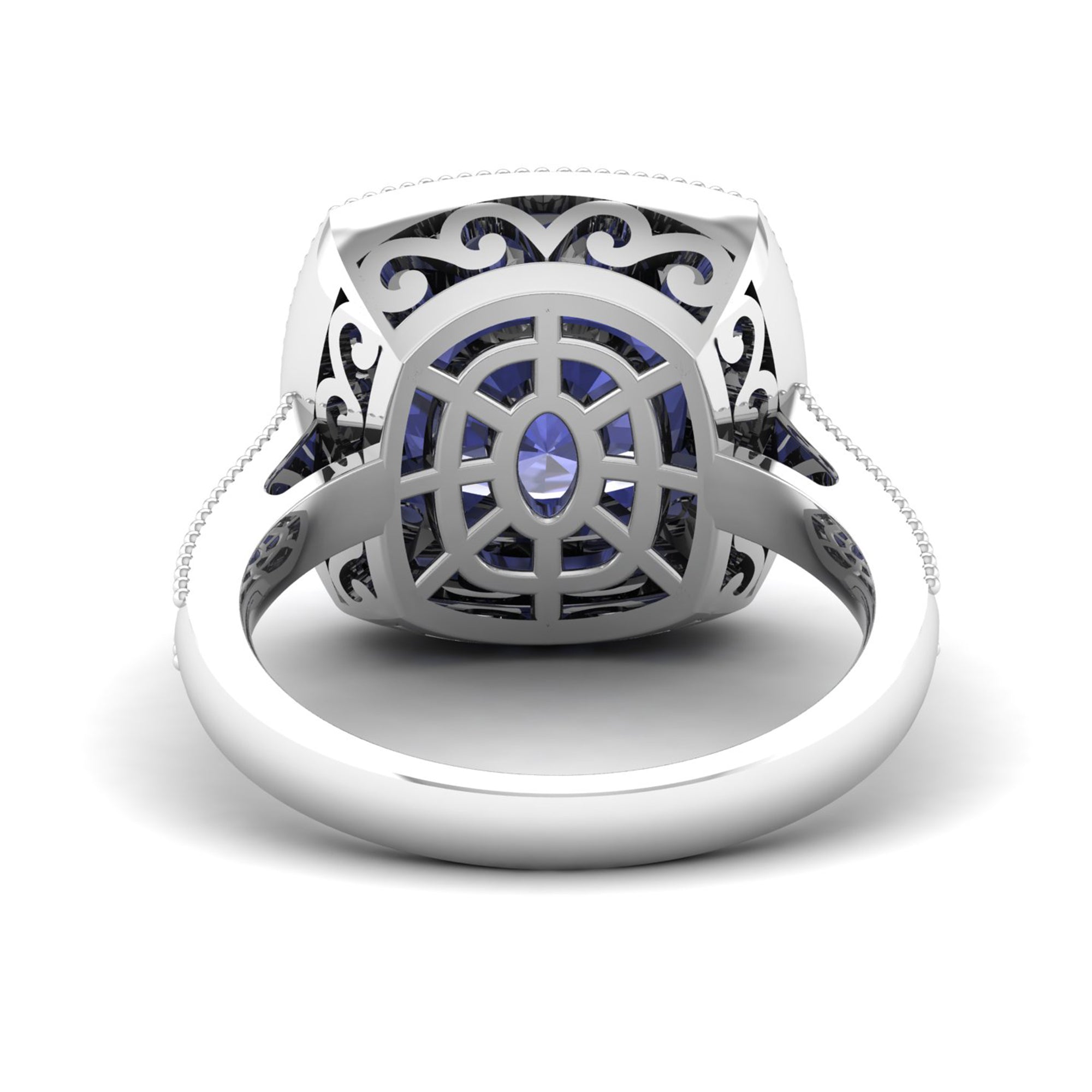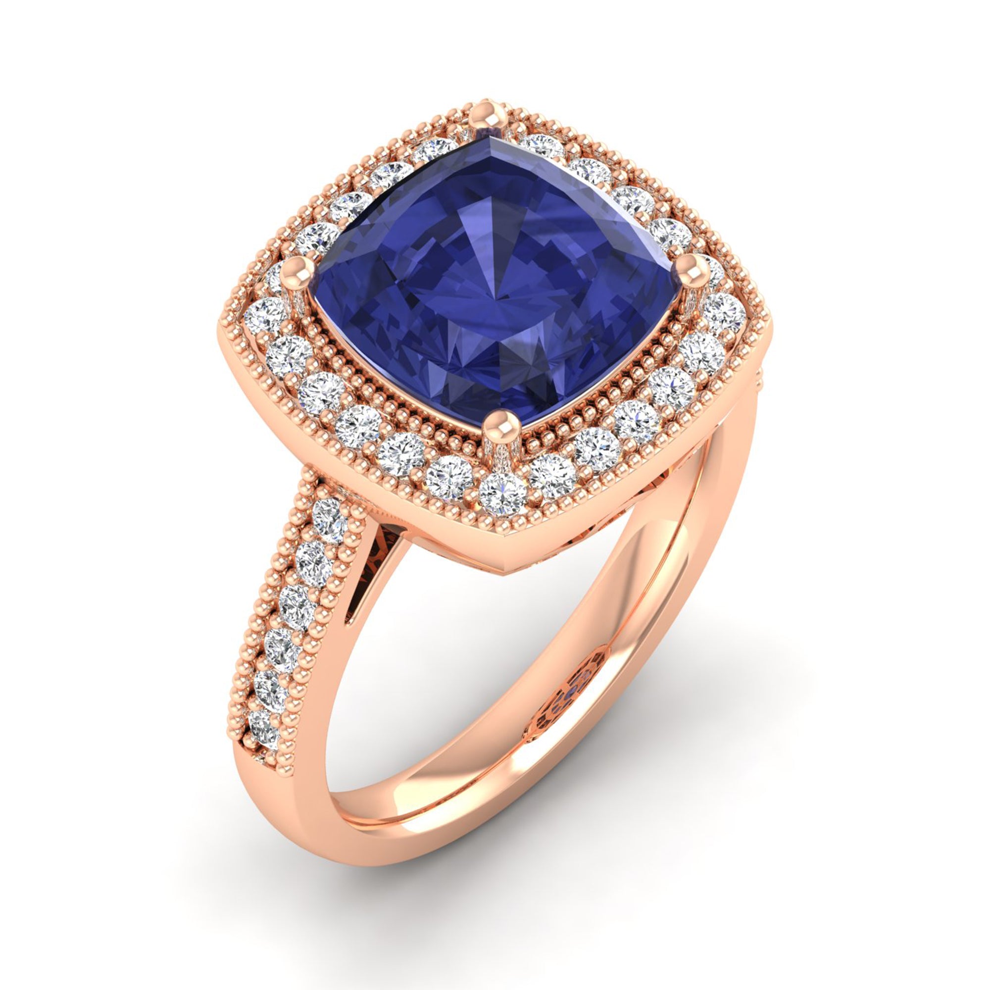Halo Cushion Cut Tanzanite and Diamond Ring