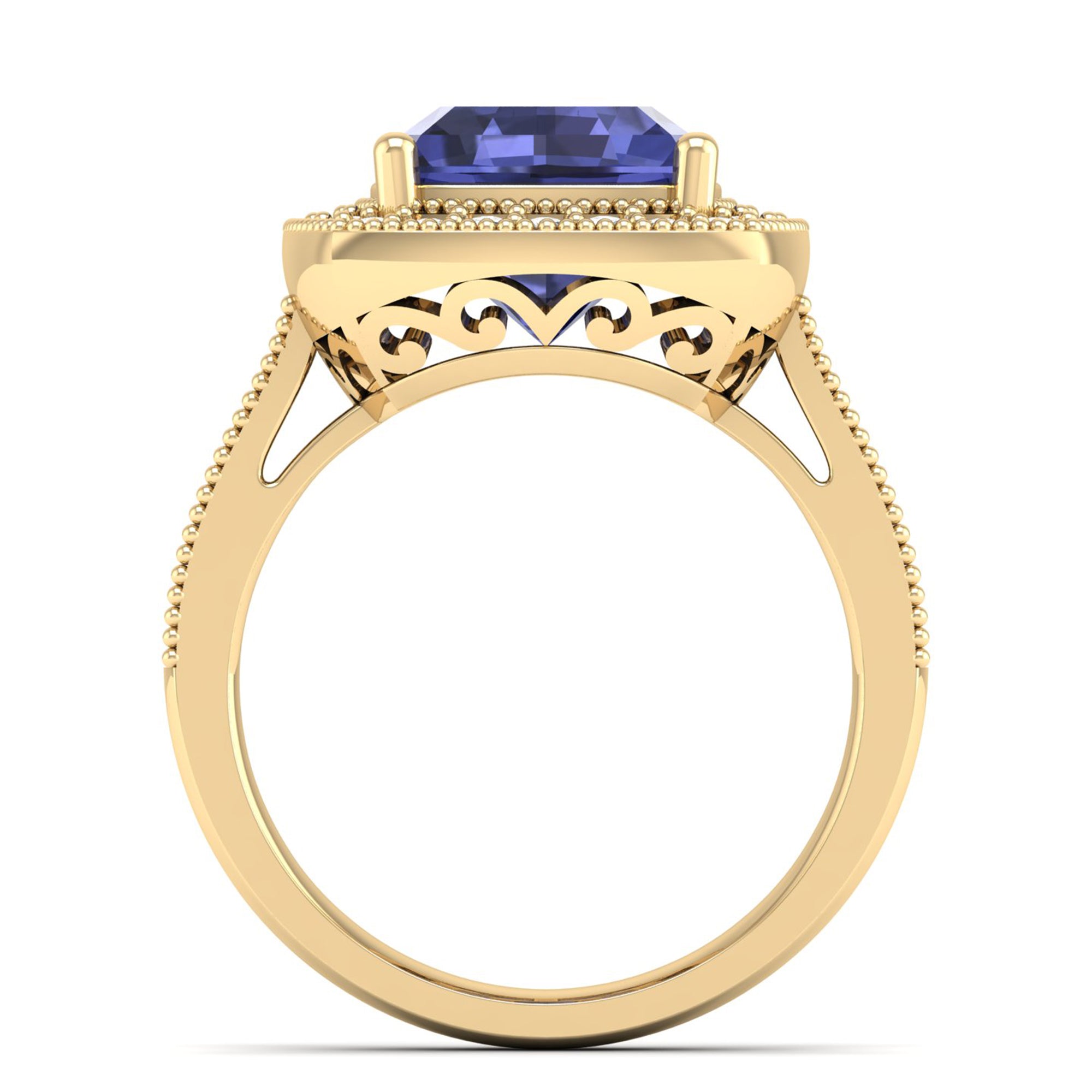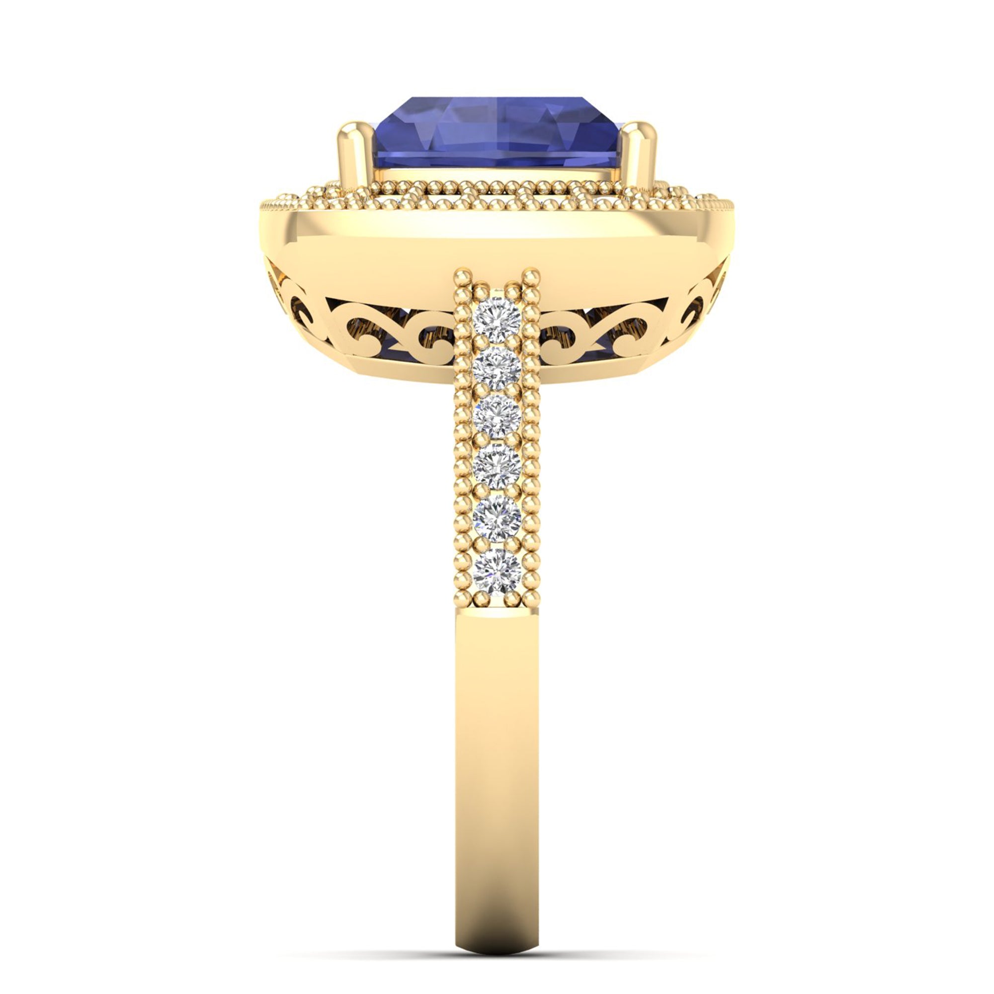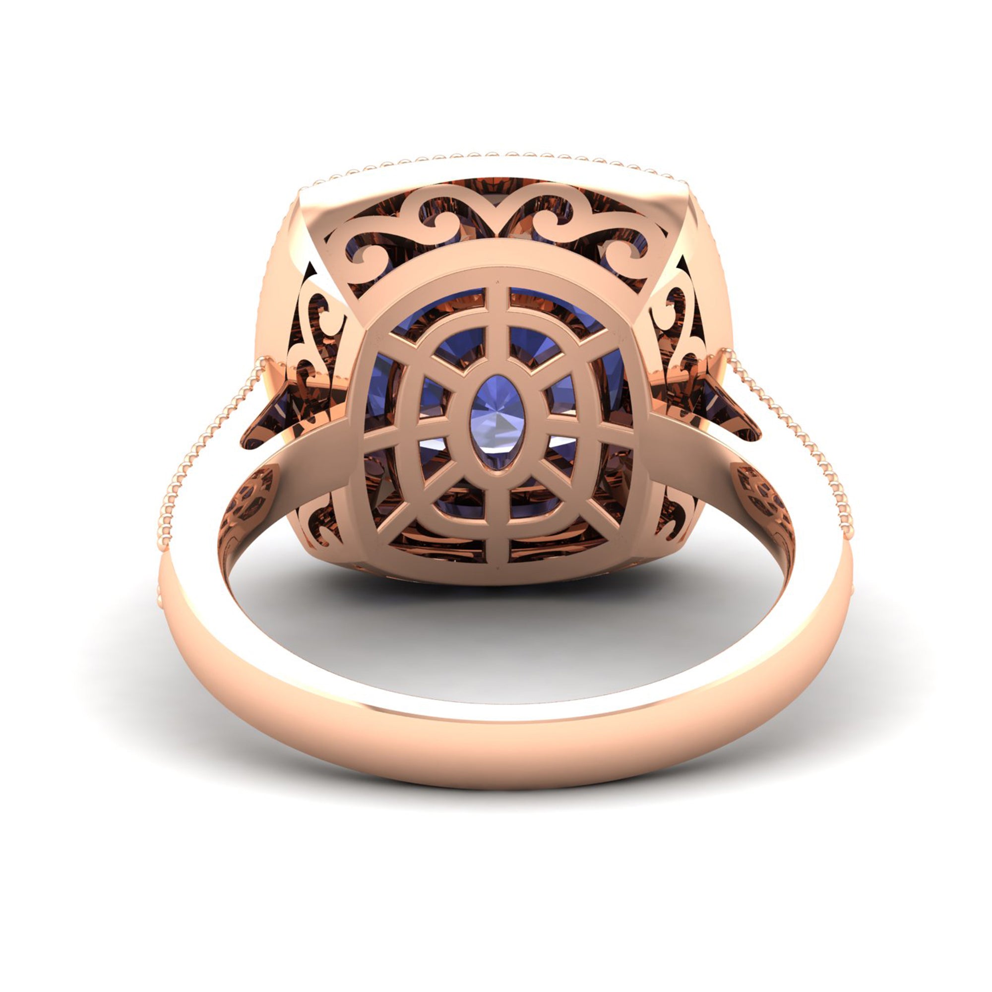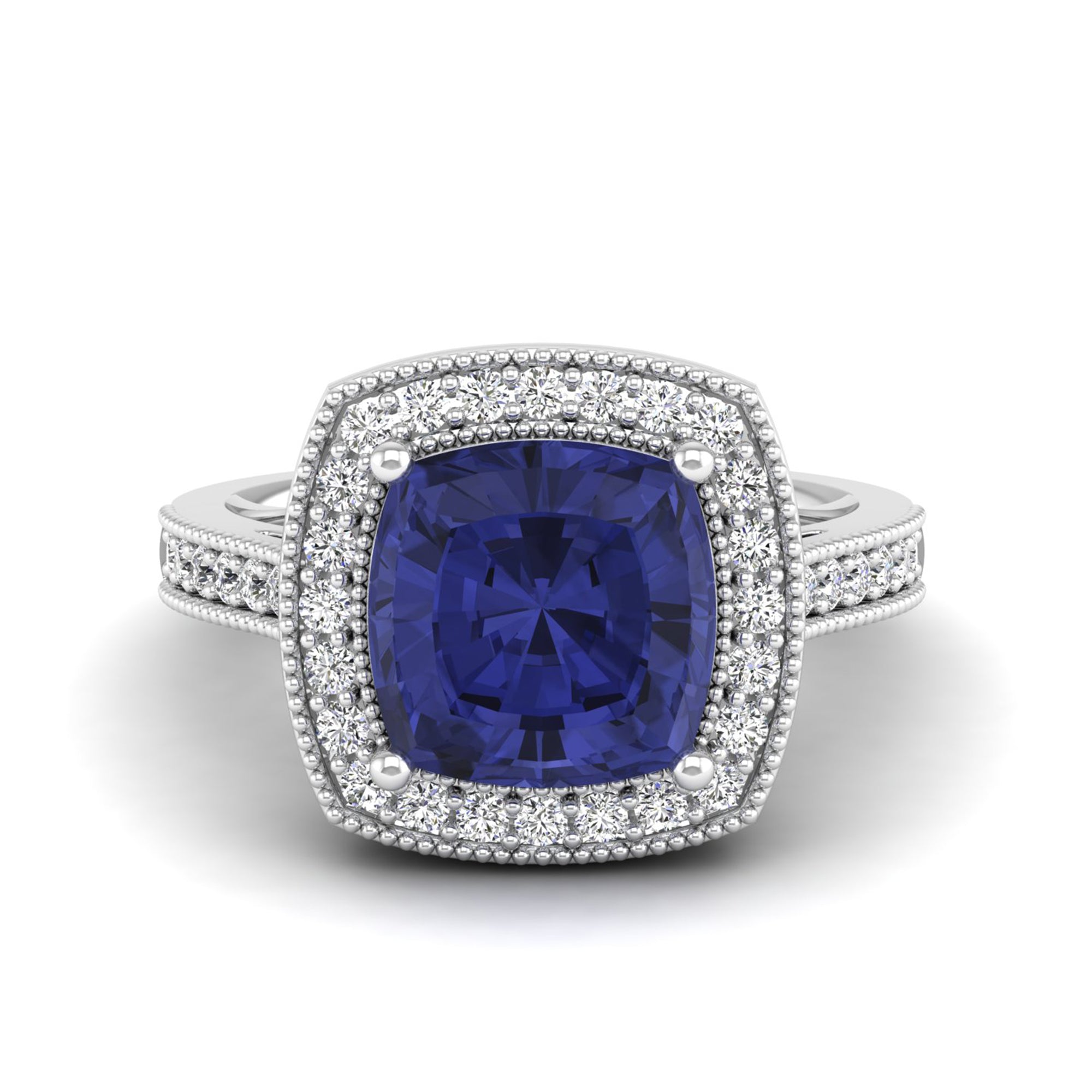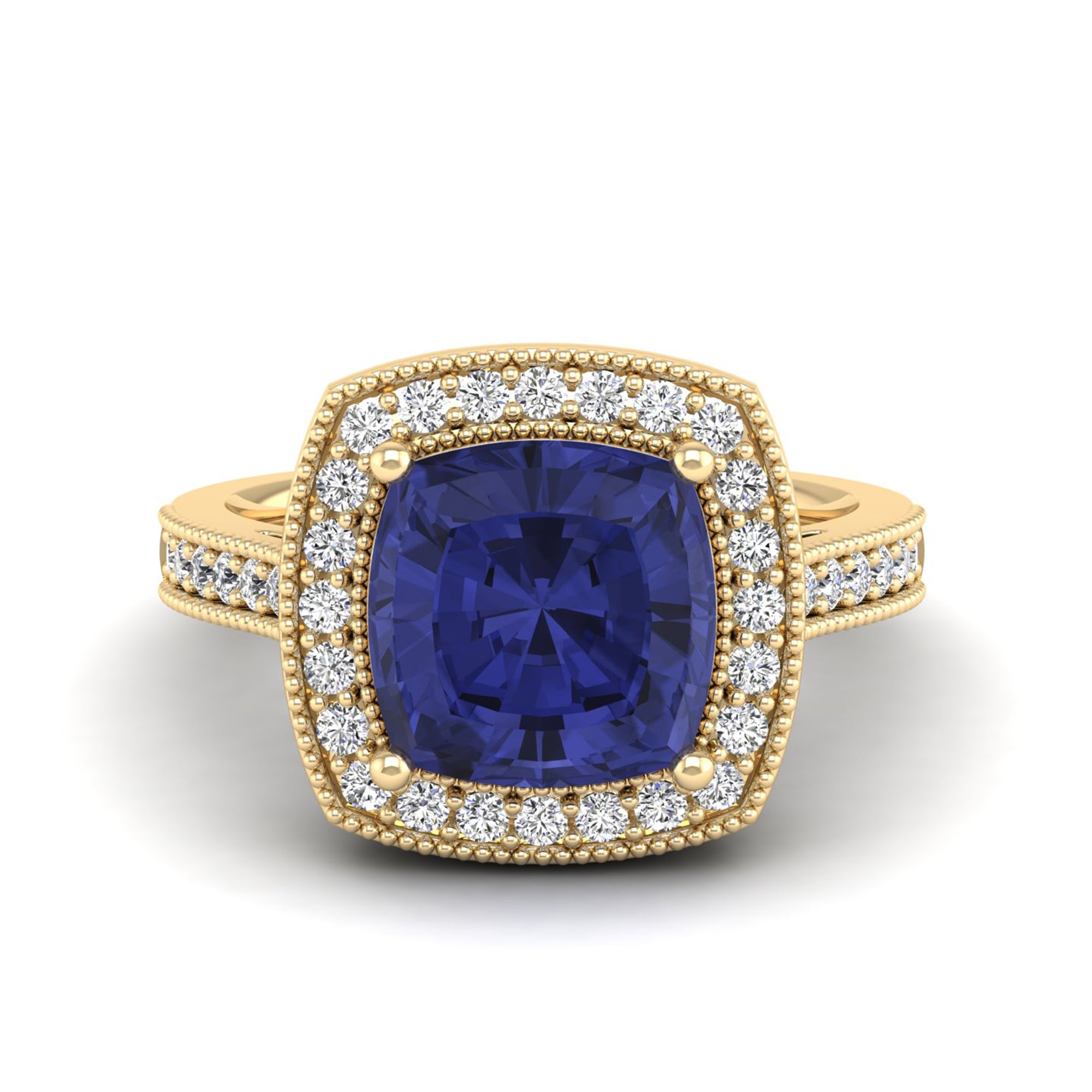 Halo Cushion Cut Tanzanite and Diamond Ring