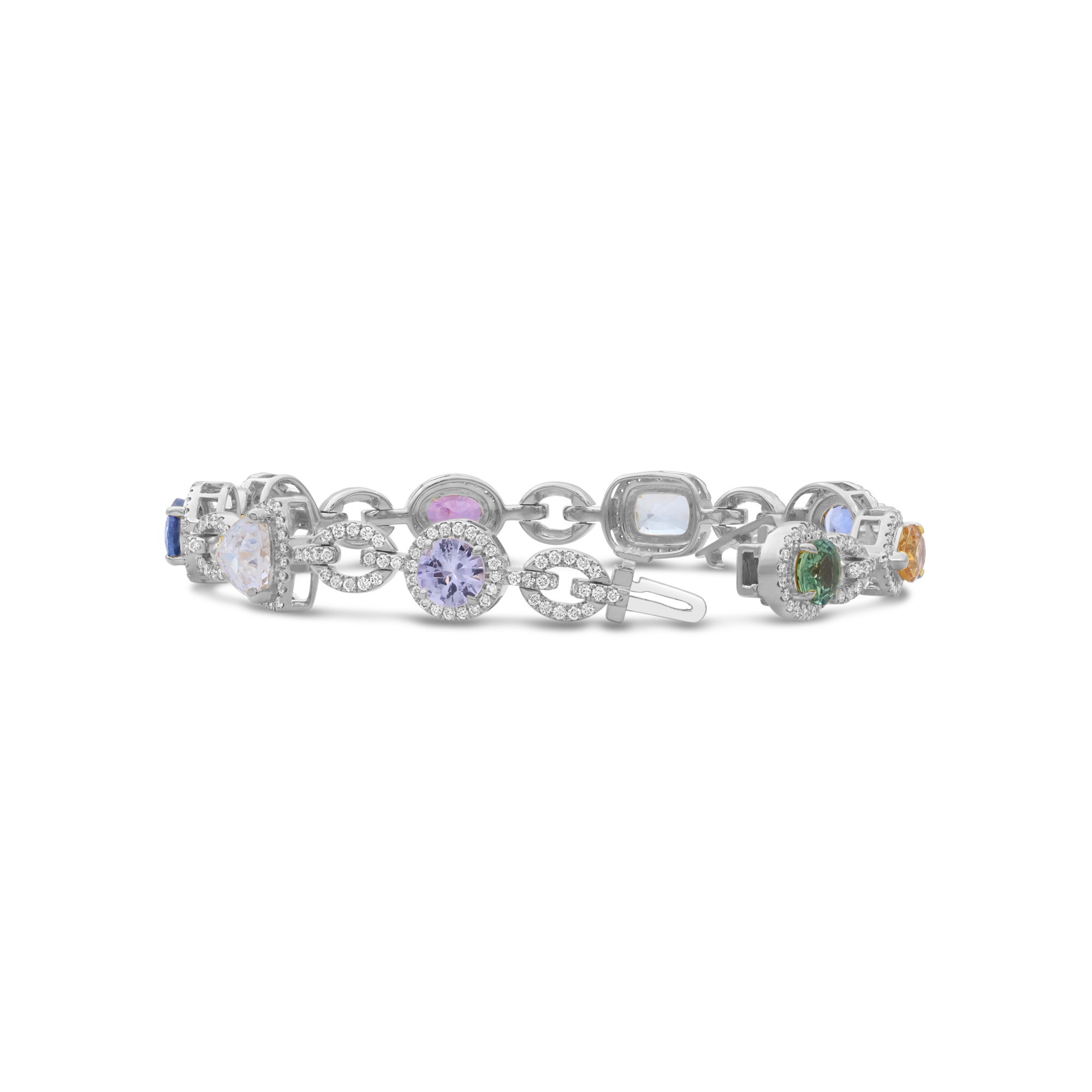 Halo Multi-Shaped Rainbow Sapphire Diamond Bracelet