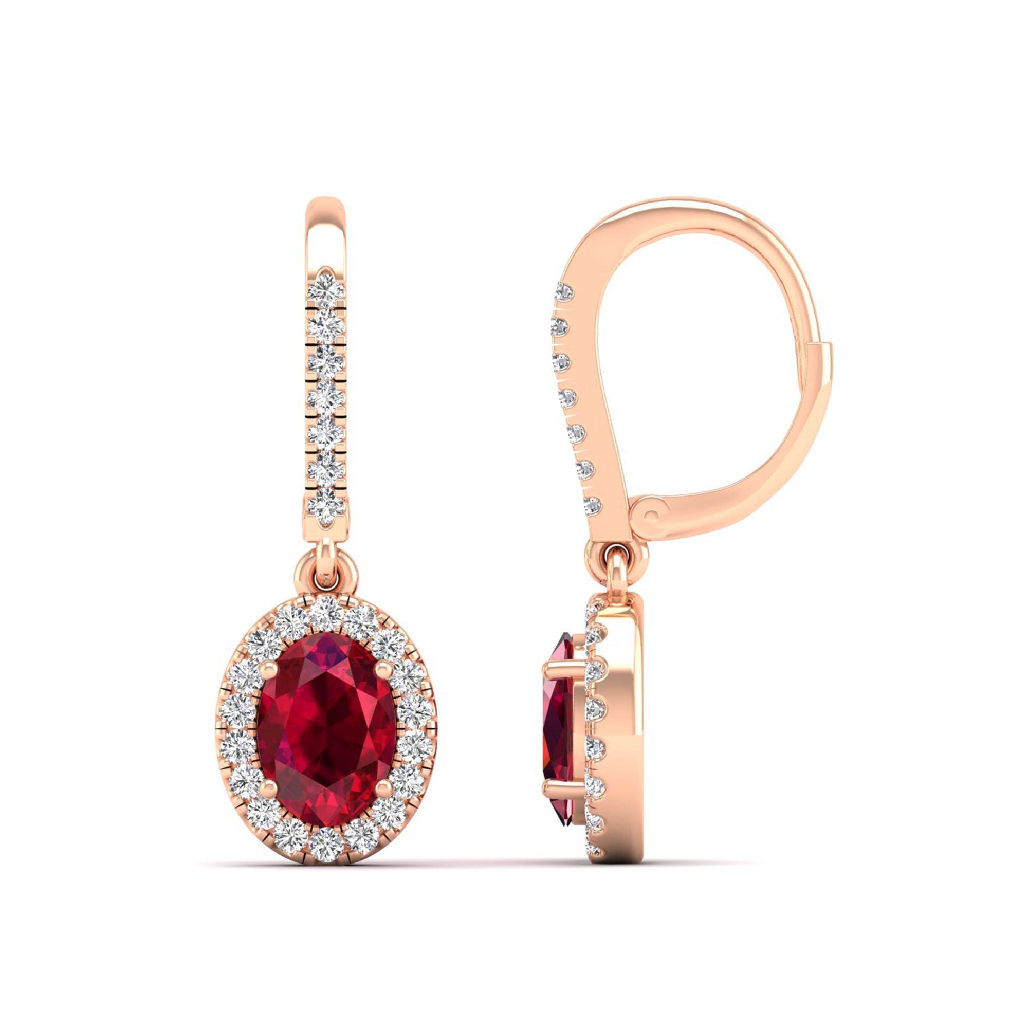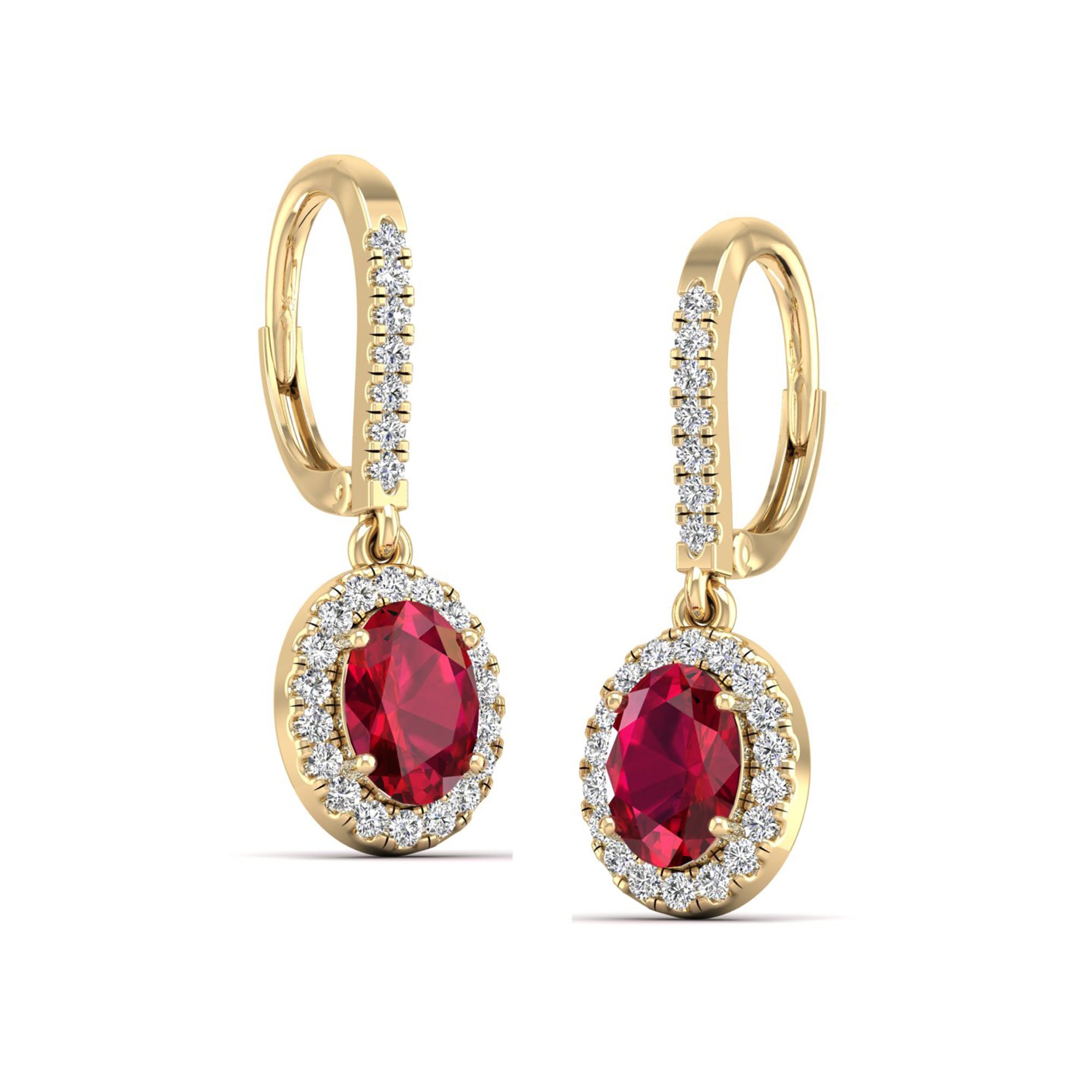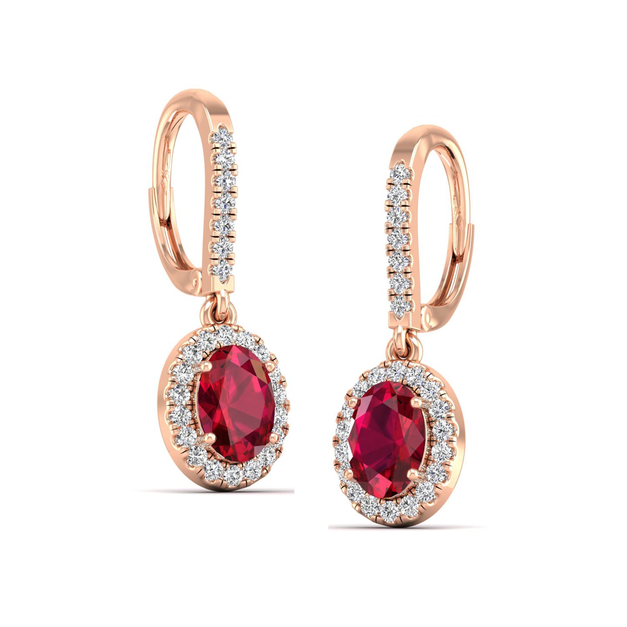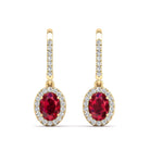 Halo Oval Ruby and Diamond Dangle Earrings